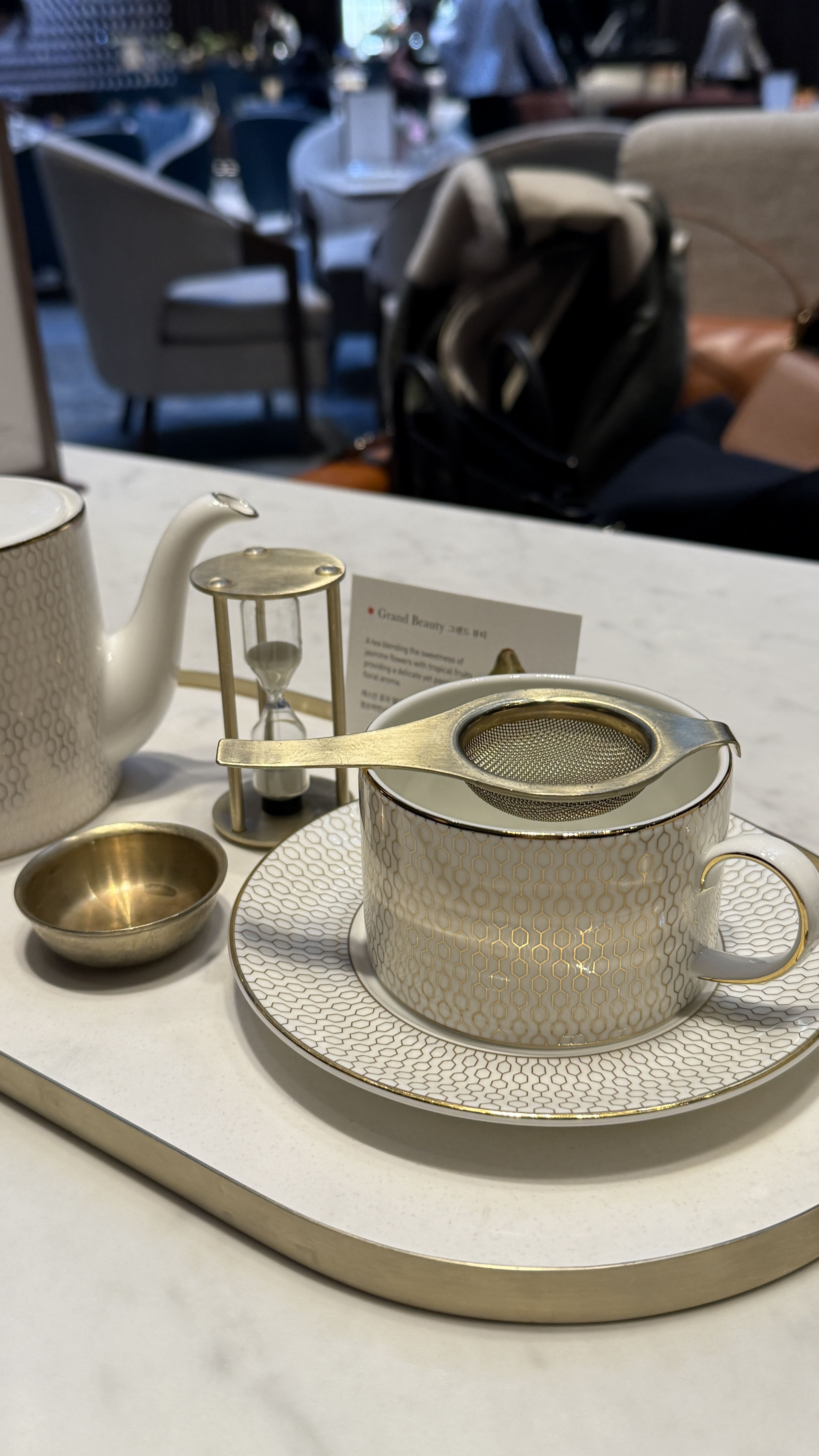 친구는 시그니처 티 Grand Beauty (그랜드 뷰티)를 선택했어요. 직원분께 여쭤보니 과일과 꽃향이 강한 블렌딩 티라고 하시더라고요. 저희는 개인적으로 과일 향이 강한 차를 좋아해서 이걸로 골랐는데, 예상대로 굉장히 향긋하고 달콤한 맛이어서 디저트와도 잘 어울렸어요.