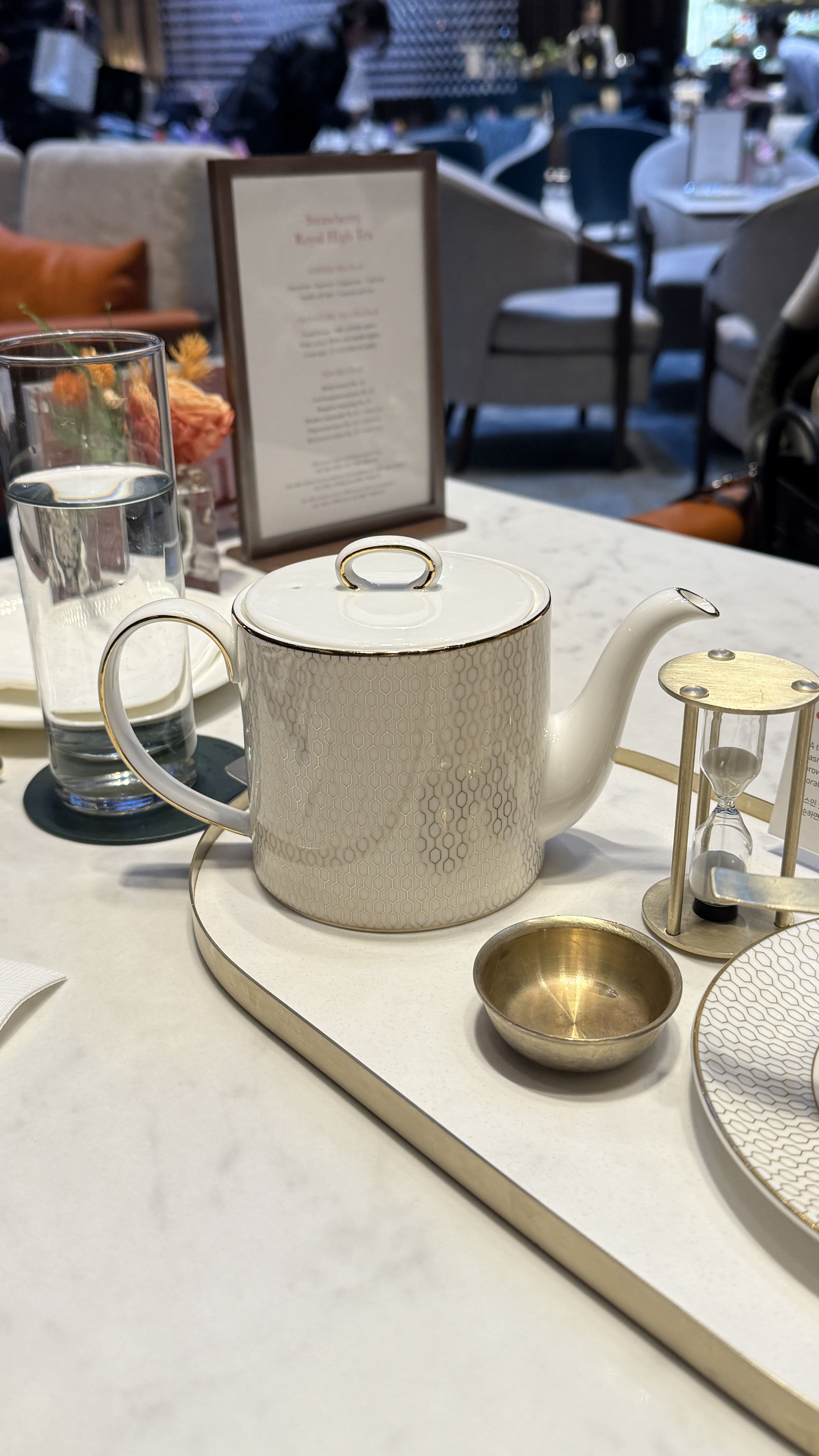 저는 토요일 3시로 예약을 했는데, 사람이 많지 않고 조용한 분위기에서 티타임을 즐길 수 있었어요. 애프터눈티 자체가 럭셔리한 분위기를 연출해 줘서 기분 좋은 시간이었어요. 테이블 간 간격도 넓어서 프라이빗한 분위기였습니다. 디저트와 티의 조합이 훌륭해서 시간 가는 줄 모르고 여유롭게 즐길 수 있었답니다.