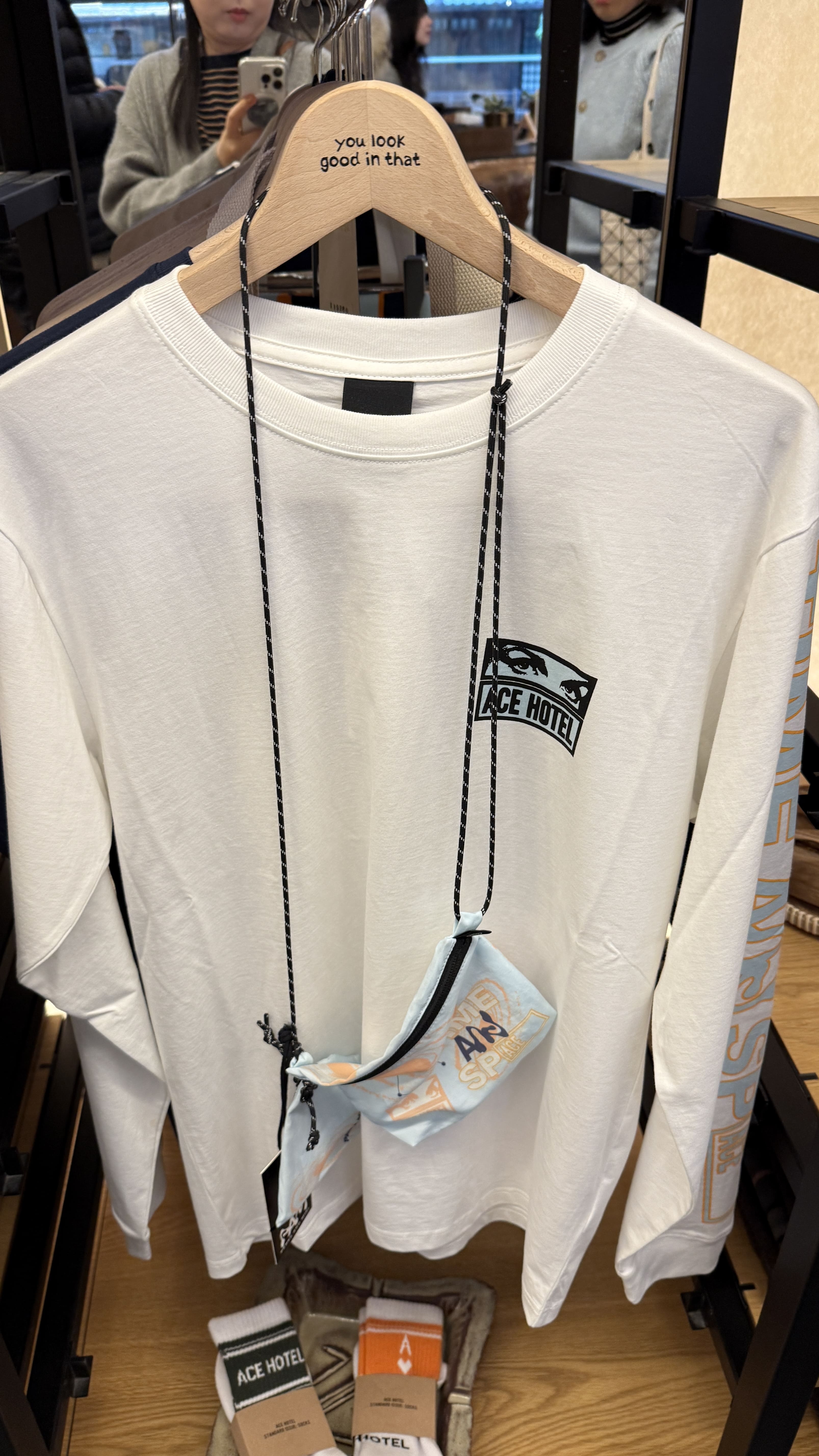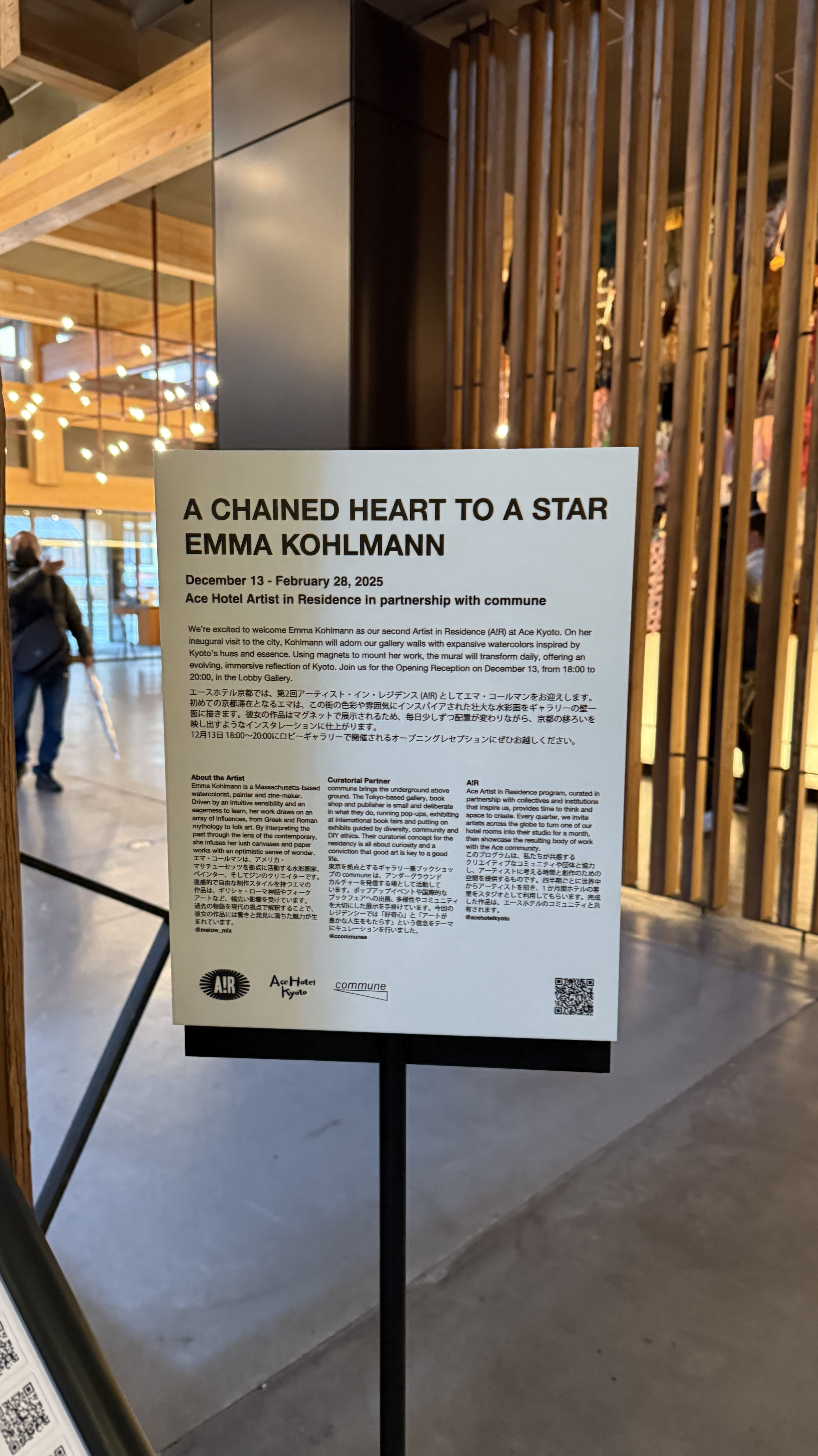 신푸칸 건물 한가운데 자리한 곳이 바로 에이스 호텔 교토(Ace Hotel Kyoto)입니다. 뉴욕, 포틀랜드 등지에서 유명한 호텔이 신부칸에도 위치하고 있어서 구경 갔었습니다. 투숙객이 아니더라도 1층 로비 공간, 북 스토어, 카페, 갤러리 등이 모두 개방되어 있어서 자유롭게 들러볼 수 있었고, 곳곳에 감성적인 포토존이 많아 사진 찍는 분들도 많았습니다. 제가 방문한 날에는 로비 한편에 전시 중인 작은 아트워크와 세라믹 제품 팝업도 있었는데, 작은 디테일까지 정성스럽게 꾸며져 있었습니다.