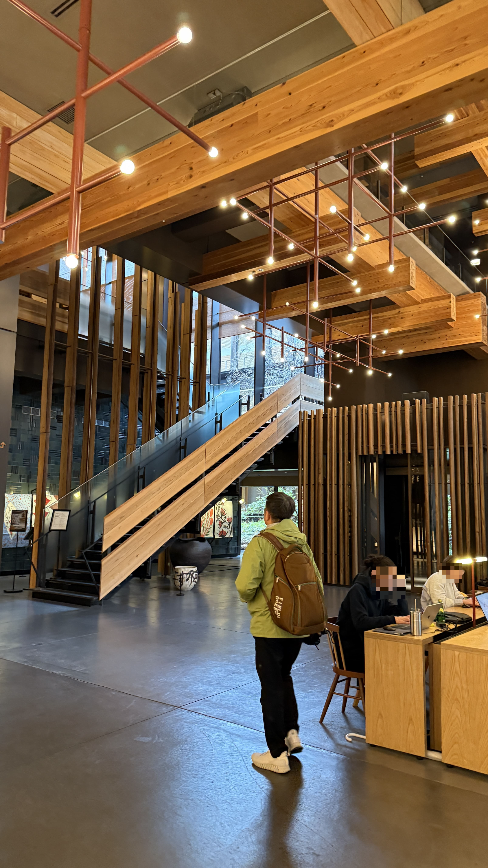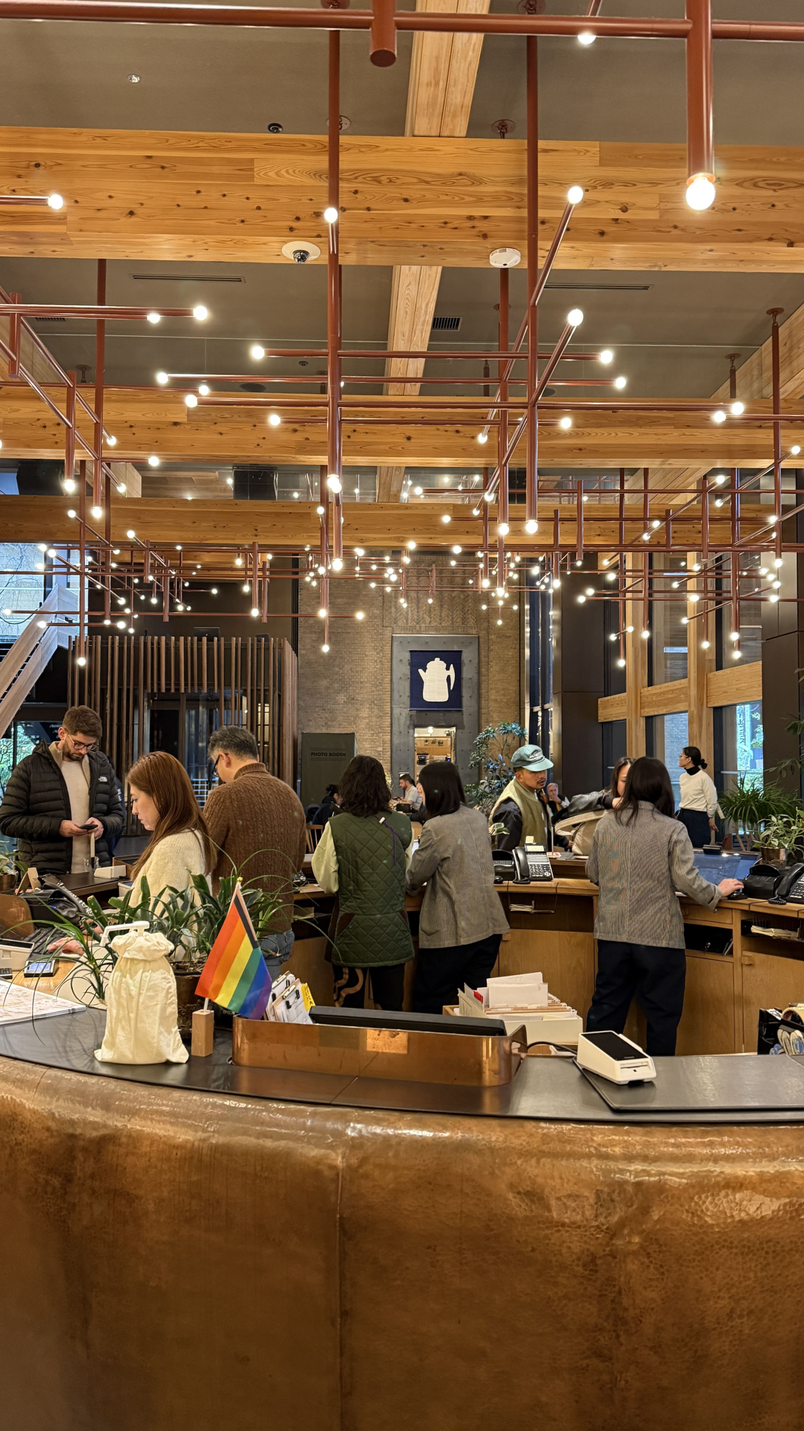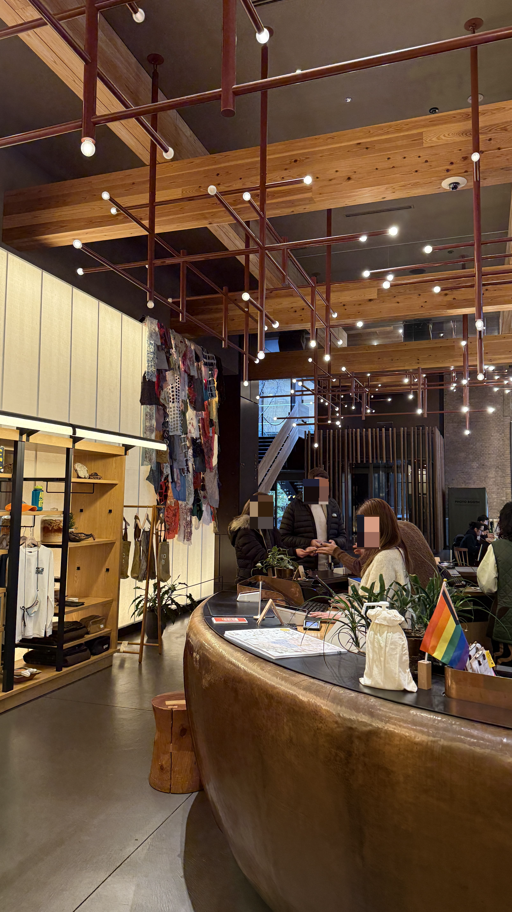 신푸칸 한가운데에는 야외 중정 테라스가 있어서 날씨 좋은 날에는 햇살 아래 커피 한잔 즐기기 딱 좋았습니다. 특히 에이스 호텔 내부의 Stumptown Coffee Roasters는 미국 포틀랜드에서 시작한 스페셜티 커피 브랜드인데, 교토에서는 이곳에서만 만나볼 수 있었습니다.