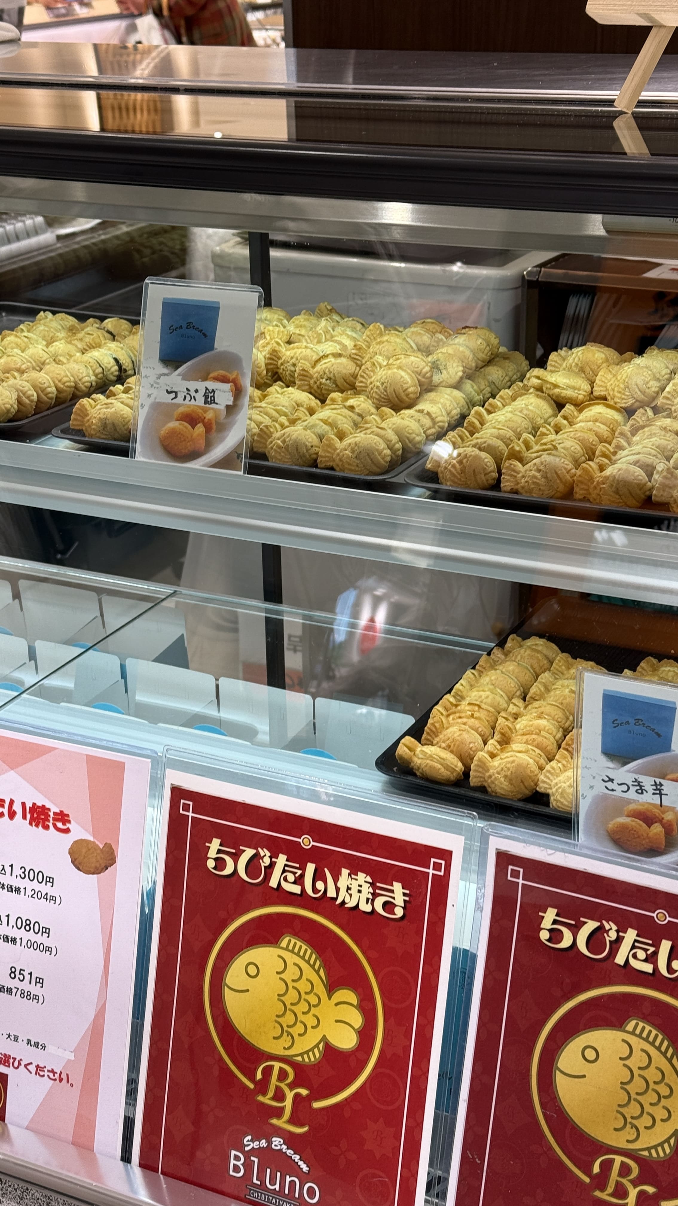 다이마루 백화점 교토점의 지하 식품관에 들어서자마자 눈을 사로잡는 건 역시 다양한 디저트 진열대입니다. 일본의 유명 제과 브랜드들이 입점해 있어 말차를 활용한 스위츠, 화과자, 푸딩, 슈크림, 롤케이크, 미니 케이크 등 너무 예쁘고 정갈하게 포장된 디저트들이 줄지어 서 있었습니다. 저는 개인적으로 요지야(Yojiya)의 말차 스위츠 세트를 선물용으로 구매했는데, 교토에서만 구매할 수 있는 한정 패키지라 더욱 만족스러웠어요. 또, 작은 사이즈의 미니 붕어빵(타이야키)도 너무 귀여워서 그냥 지나칠 수 없었습니다. 붕어빵 속은 팥뿐 아니라 커스터드, 말차, 초코, 벚꽃크림까지 다양해서 여행 중 간식으로 딱 좋았습니다.