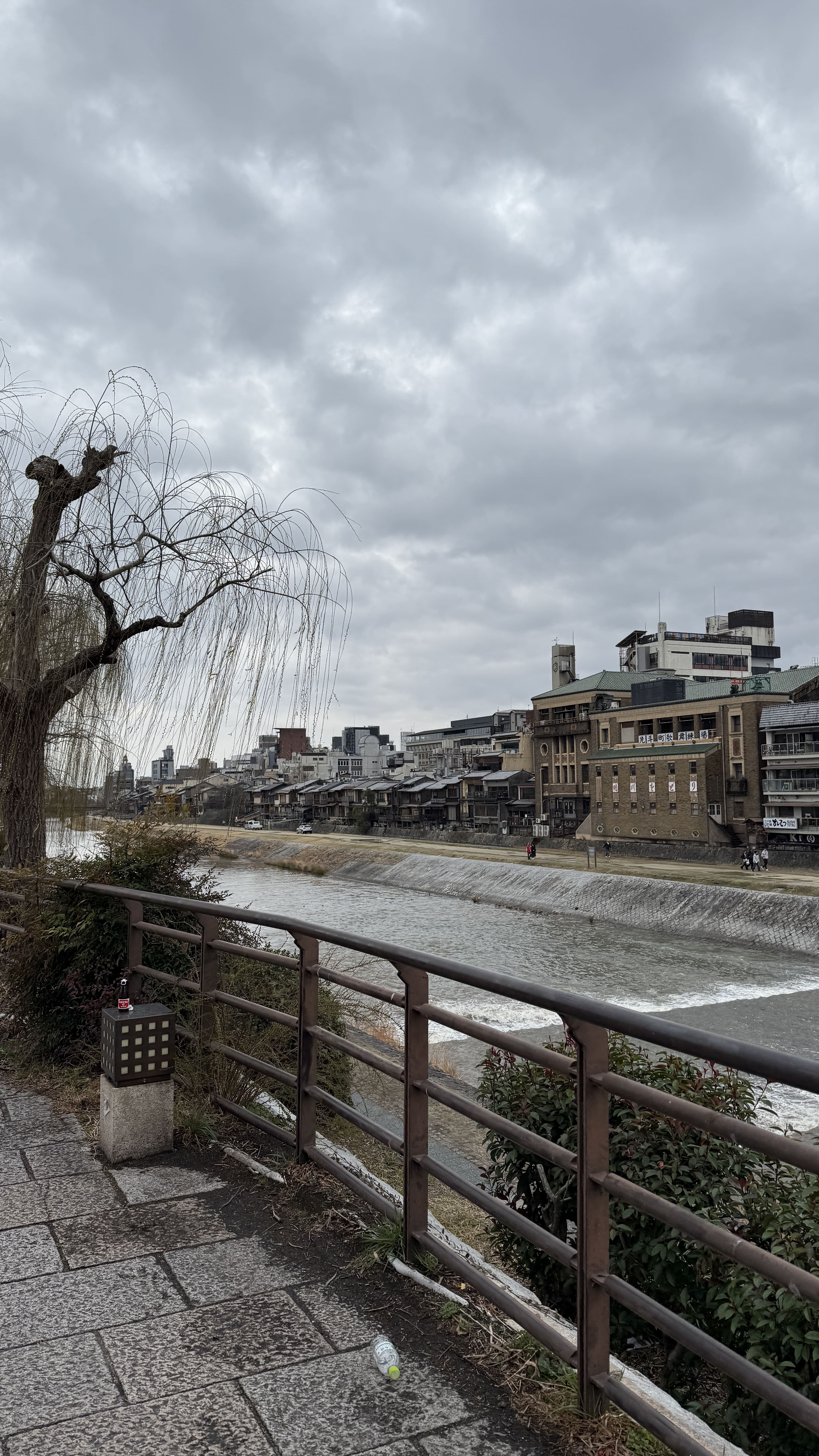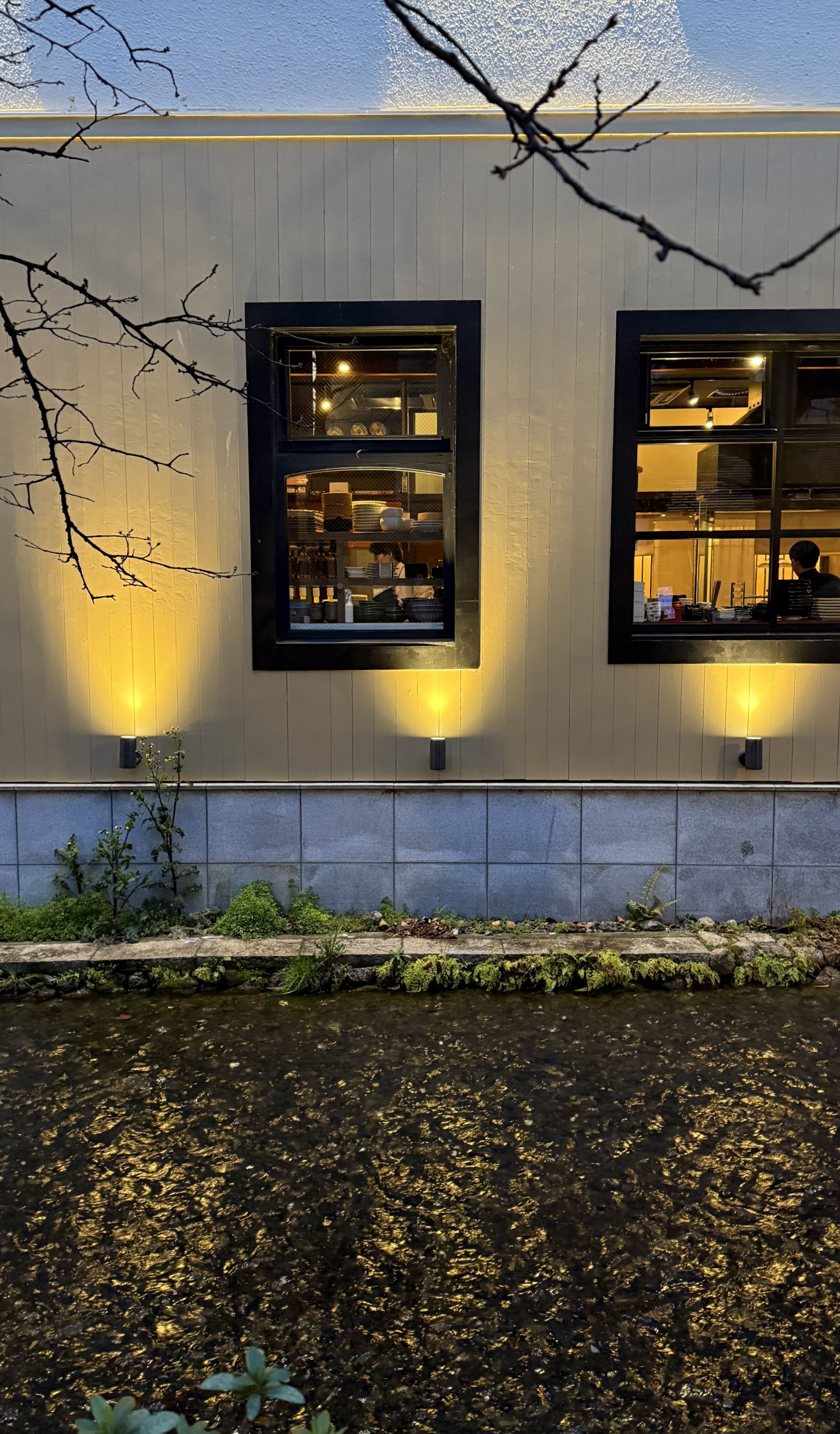 골목 양옆으로는 고급 가이세키 요리점, 전통 이자카야, 바, 일본식 찻집, 라이브 재즈 바 등이 즐비하며, 겉보기에는 작고 조용해 보이지만 문을 열면 안쪽으로 깊고 고풍스러운 구조를 갖춘 가게들이 대부분입니다. 특히 봄부터 가을까지는 가모강을 따라 ‘가와도코’라 불리는 야외 테라스 좌석이 설치되어, 고요한 강바람을 맞으며 교토의 야경과 함께 식사를 즐길 수 있습니다. 이 시기의 폰토초는 로맨틱하고 낭만적인 분위기로 현지 연인이나 관광객들에게 큰 인기라고 합니다. 저희가 간 약간의 비가 오는 3월도 적당히 춥고 좋았습니다.