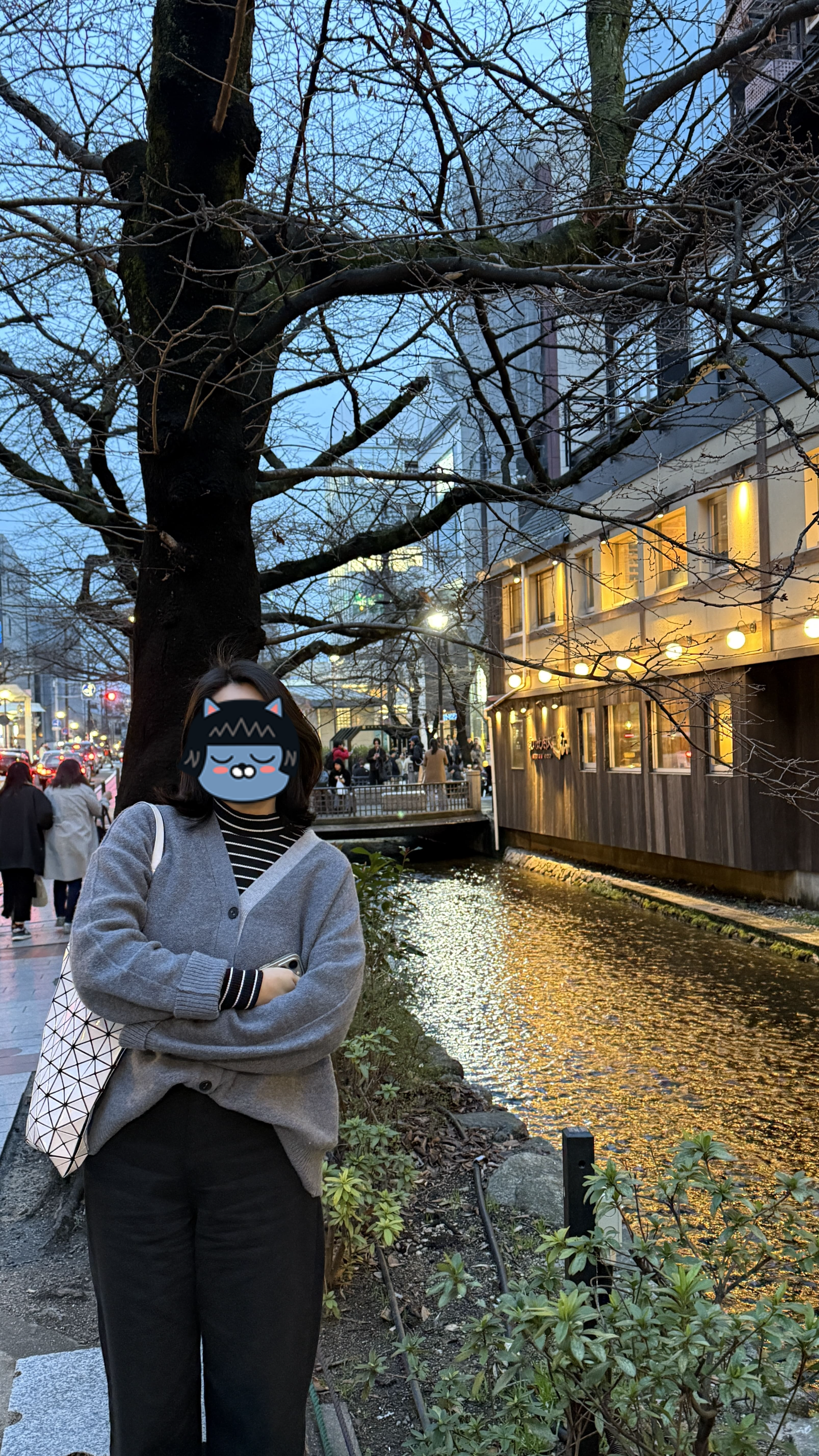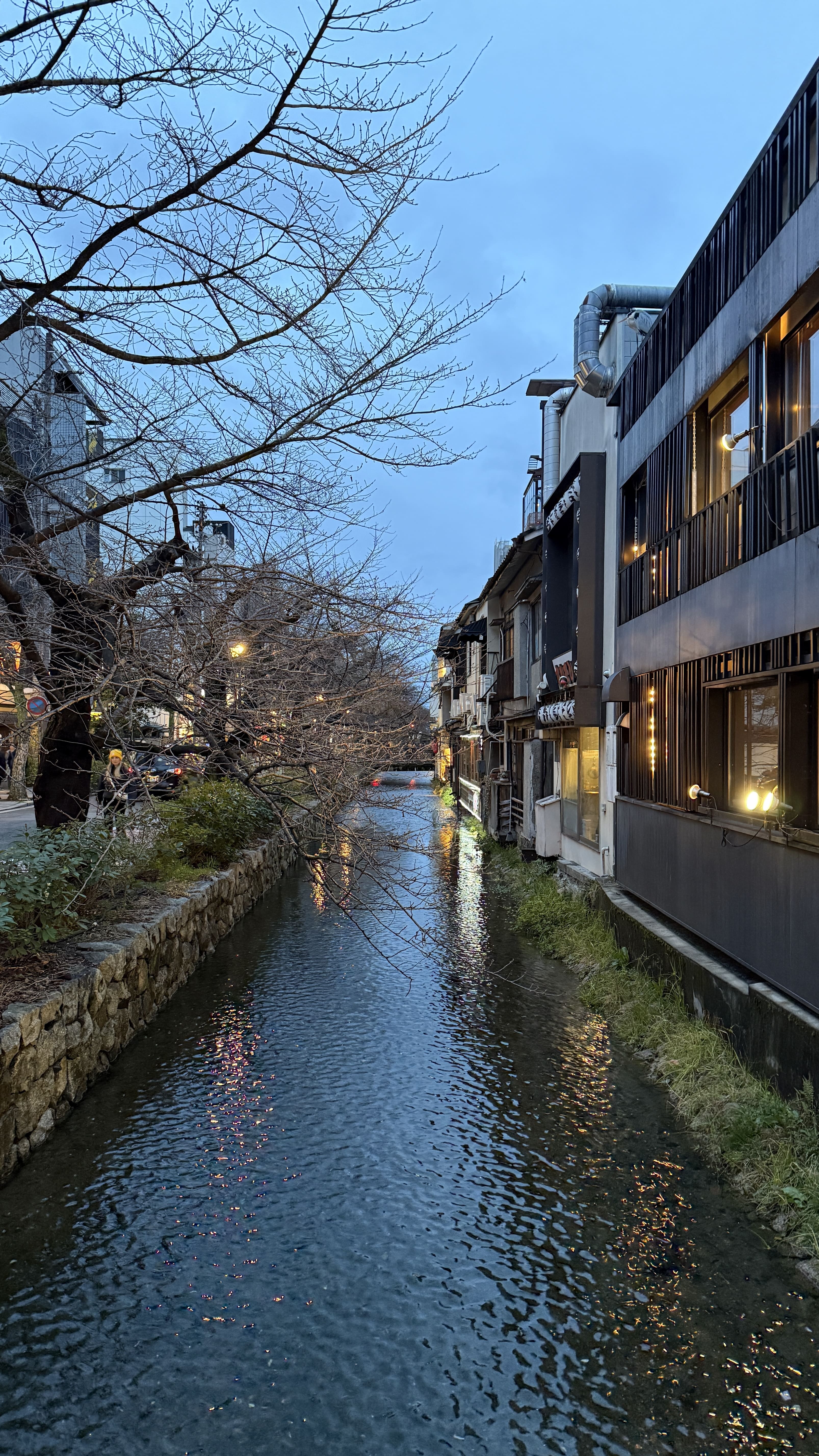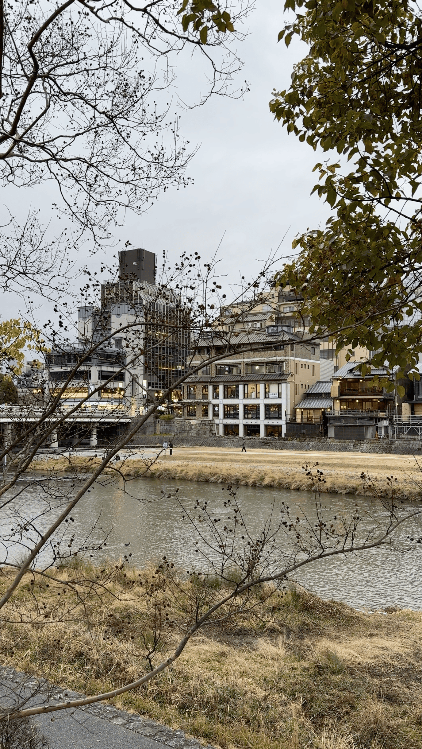 저녁이 되면 분위기가 180도 바뀝니다. 개인적으로 저녁에 방문하시는 걸 추천합니다! 맞은편 폰토초 거리에서 불빛이 하나둘 켜지기 시작하면, 가모강은 마치 한 폭의 동양화처럼 변합니다. 특히 해 질 무렵, 금빛 햇살이 강물에 부서지는 풍경은 교토에서만 만날 수 있는 장면이라 꼭 추천드리고 싶습니다.