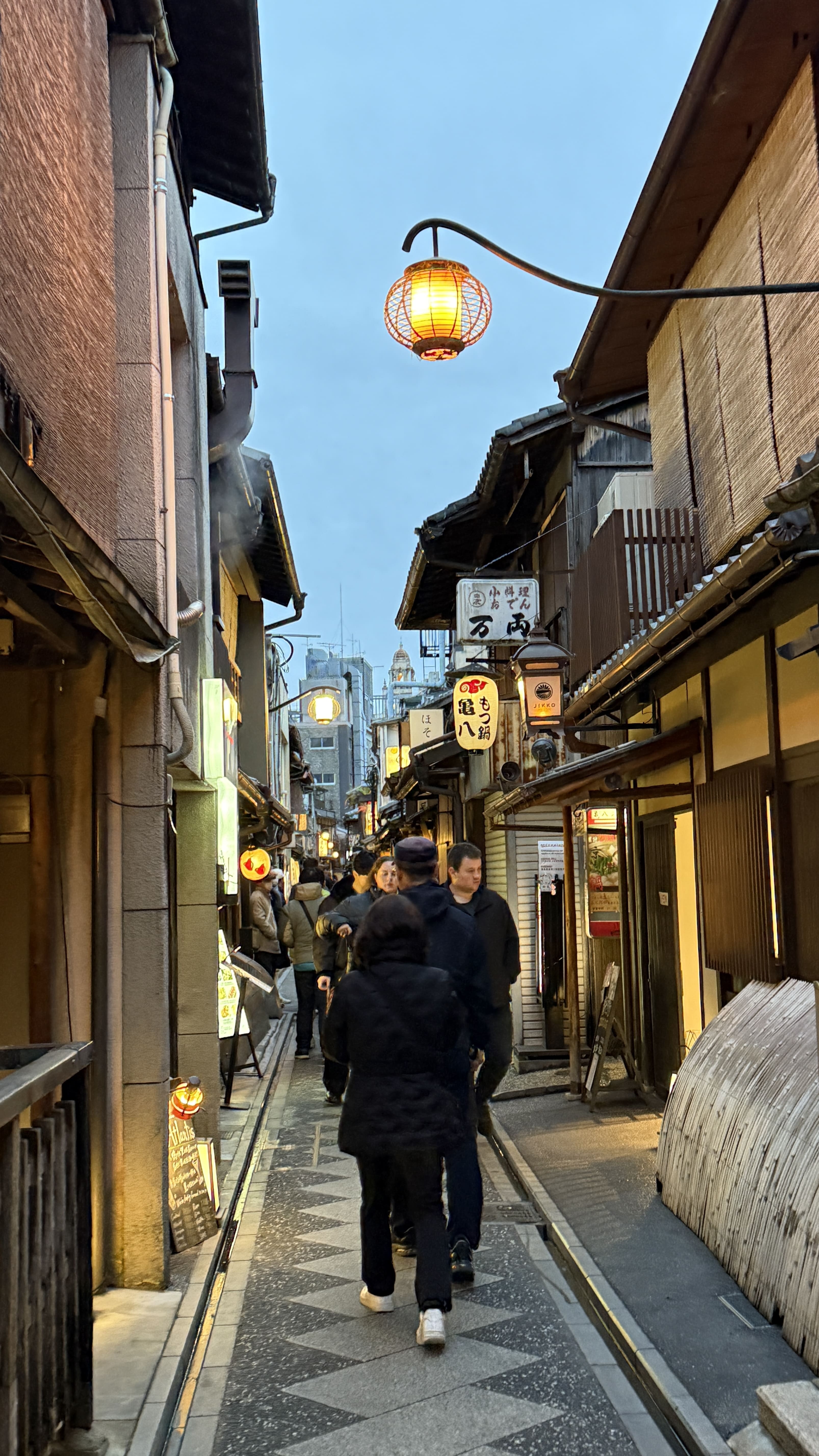 폰토초는 기온 거리 건너편, 가모강과 가와라마치 사이에 위치한 좁고 긴 골목길로, 교토의 정취를 가장 진하게 느낄 수 있는 거리 중 하나입니다. 에도 시대(17세기경)부터 유흥과 예술의 중심지로 발달해 왔으며, 지금도 게이샤와 마이코가 실제로 활동하는 지역으로 유명하다고 합니다! 저희도 게이샤는 한번 보았습니다.