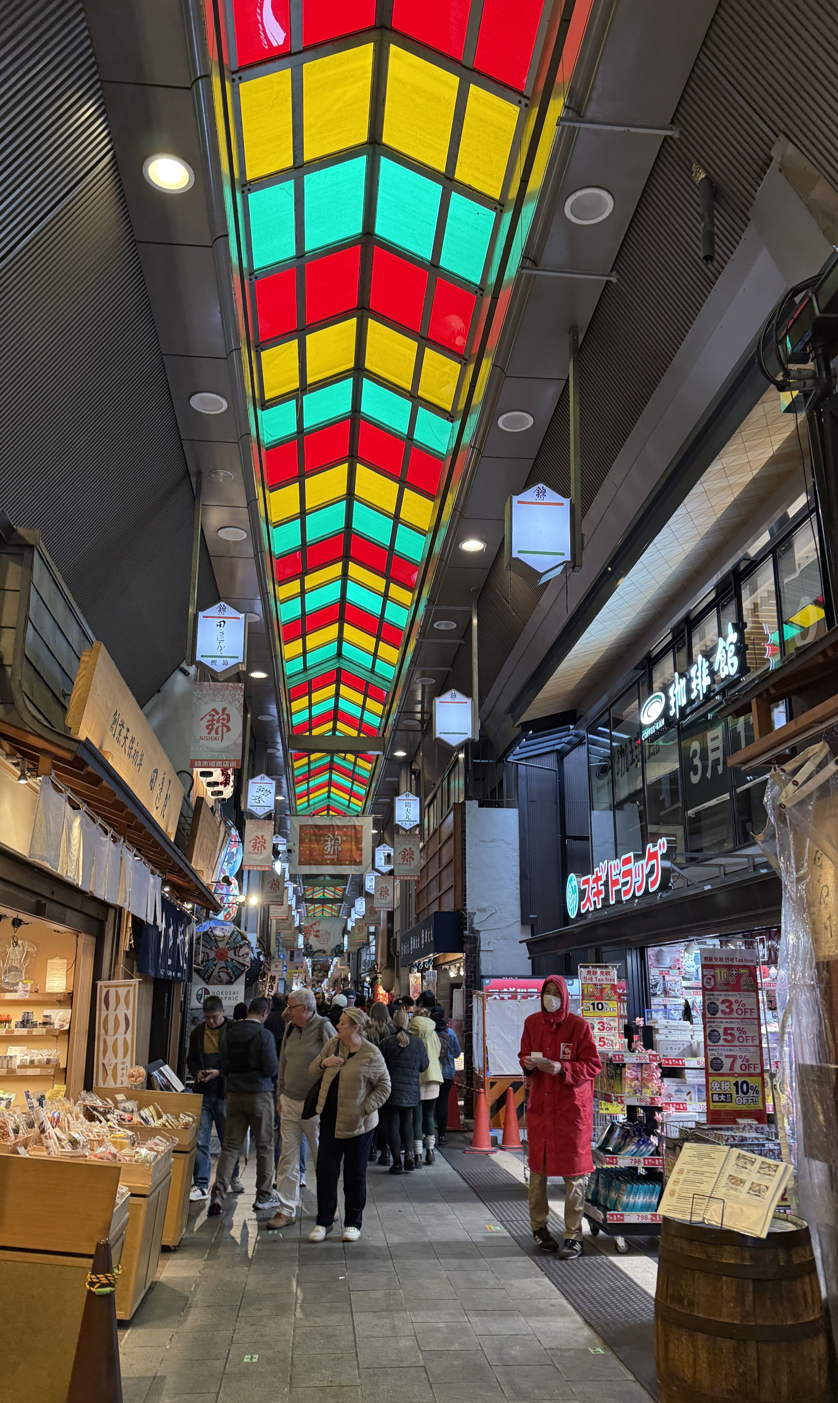 ‘교토의 부엌’으로 불리는 니시키 시장은 교토 여행 중 꼭 들러야 할 대표적인 전통시장입니다. 저희도 구경 겸 가보았습니다. 이곳은 단순한 식재료 시장이 아닌, 다양한 길거리 음식과 디저트, 지역 특산물을 맛볼 수 있는 핫플레이스였습니다. 제가 방문했을 때는 평일 오후이었는데도 관광객과 현지인들로 가득 찼습니다.