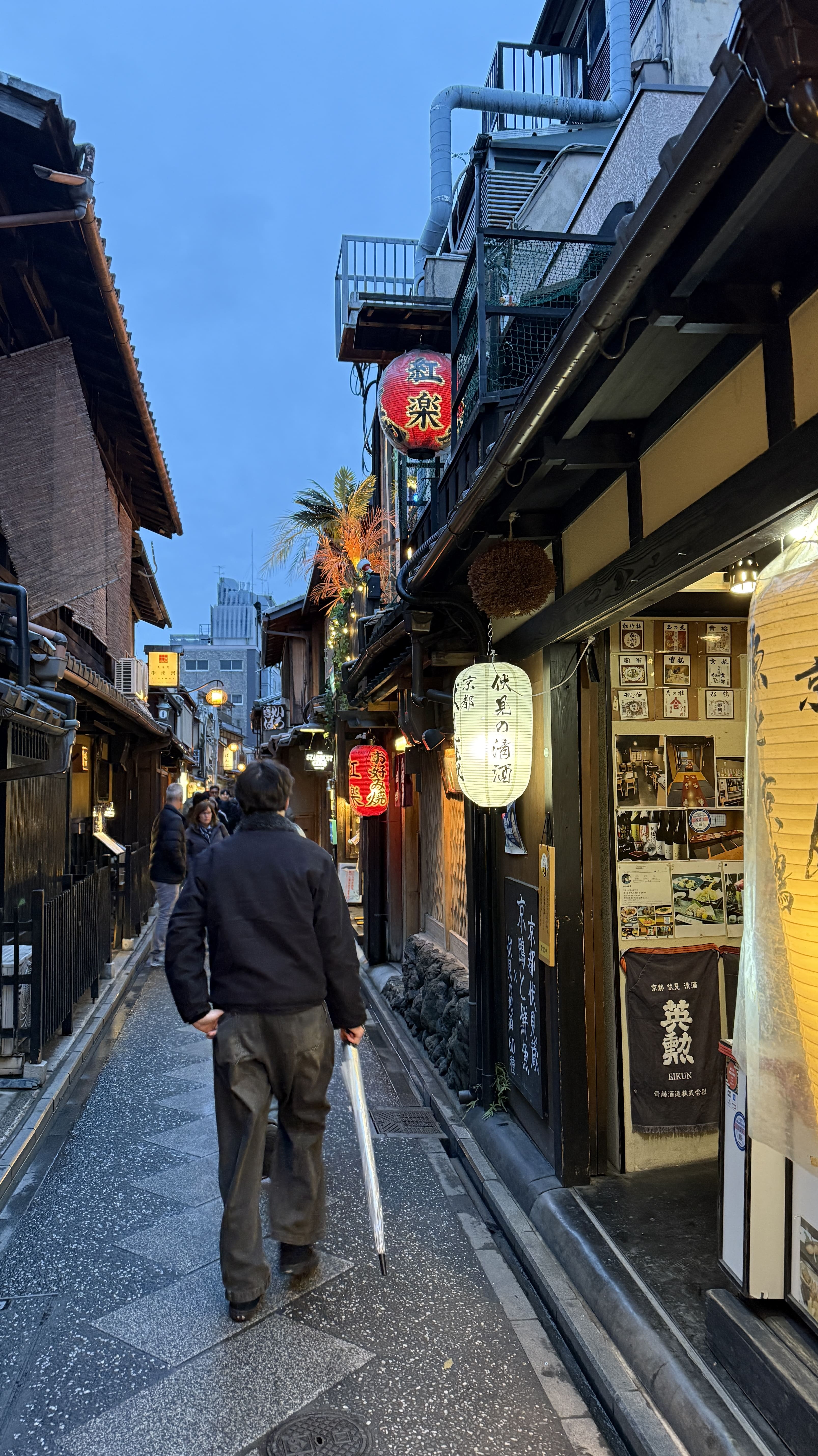 폰토초는 교토 가모강 바로 옆에 위치한 좁고 긴 골목으로, 낮보다 밤이 더 아름다운 곳이었습니다. 이 거리에는 일본 전통 다다미 음식점부터 고급 스시집, 작은 바, 이자카야까지 다양한 가게들이 줄지어 있었습니다. 골목이 매우 좁고 석등이나 나무 간판들이 조명처럼 빛나기 때문에, 밤에 걸으면 정말 감성 분위기를 자아냅니다. 식사를 마치고 골목 끝까지 걷다 보면 자연스럽게 기온 거리로 이어져 야경 산책 코스로도 완벽했습니다.