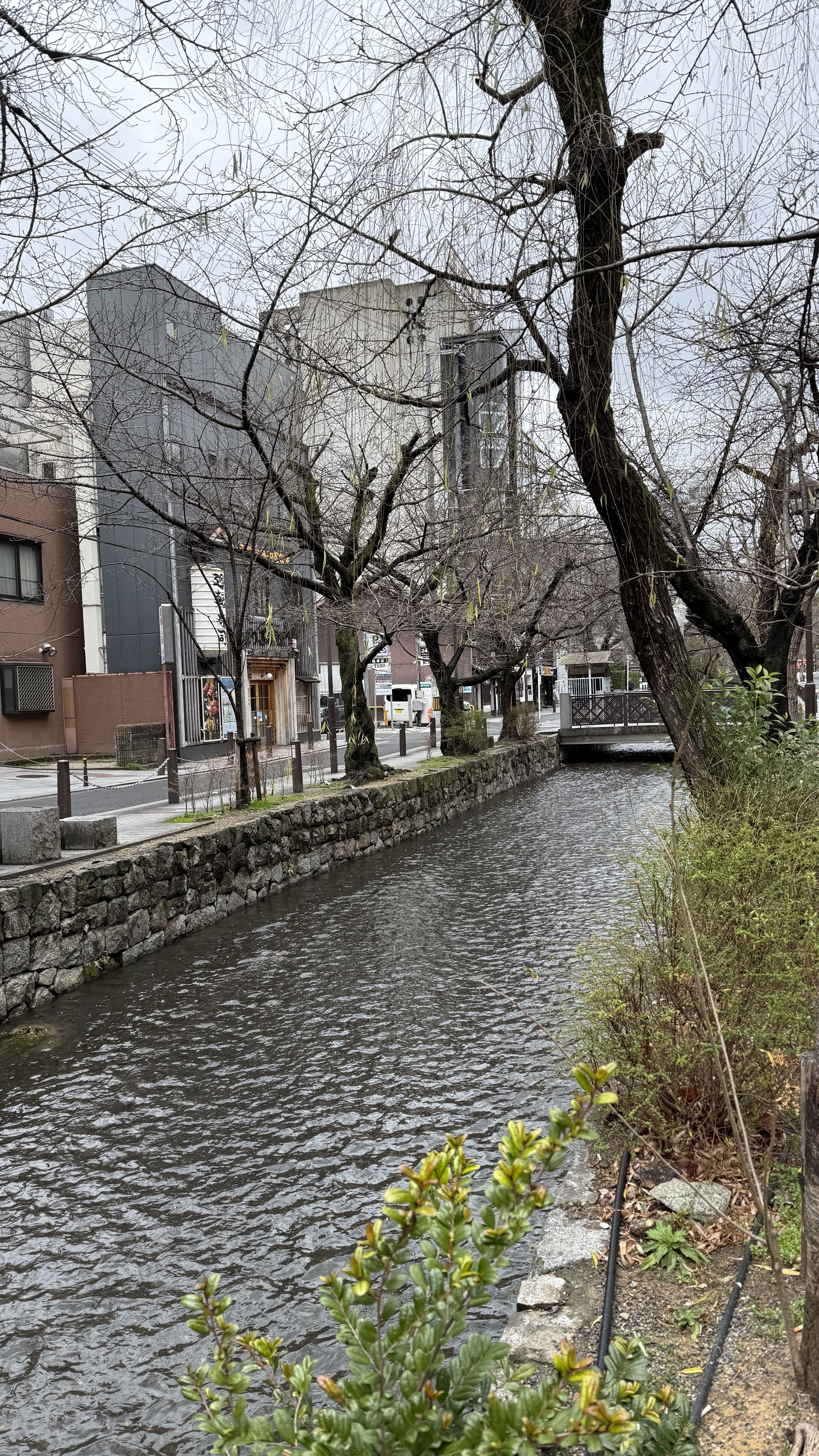 골목 양옆으로는 고급 가이세키 요리점, 전통 이자카야, 바, 일본식 찻집, 라이브 재즈 바 등이 즐비하며, 겉보기에는 작고 조용해 보이지만 문을 열면 안쪽으로 깊고 고풍스러운 구조를 갖춘 가게들이 대부분입니다. 특히 봄부터 가을까지는 가모강을 따라 ‘가와도코’라 불리는 야외 테라스 좌석이 설치되어, 고요한 강바람을 맞으며 교토의 야경과 함께 식사를 즐길 수 있습니다. 이 시기의 폰토초는 로맨틱하고 낭만적인 분위기로 현지 연인이나 관광객들에게 큰 인기라고 합니다. 저희가 간 약간의 비가 오는 3월도 적당히 춥고 좋았습니다.