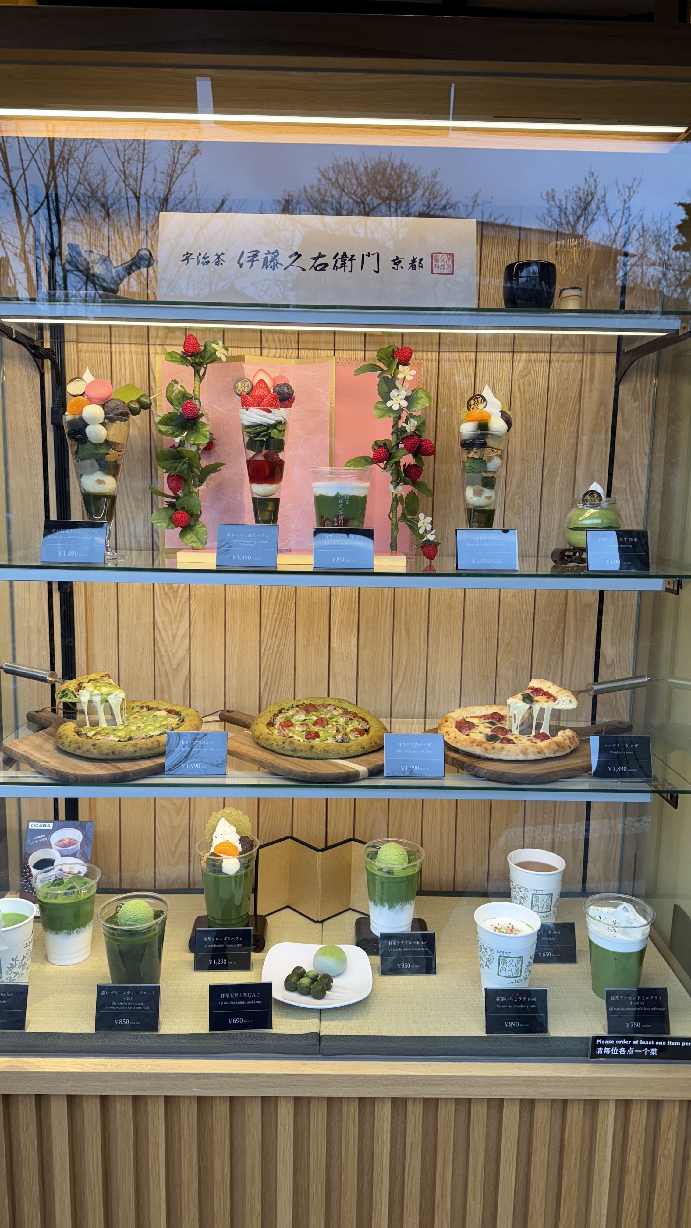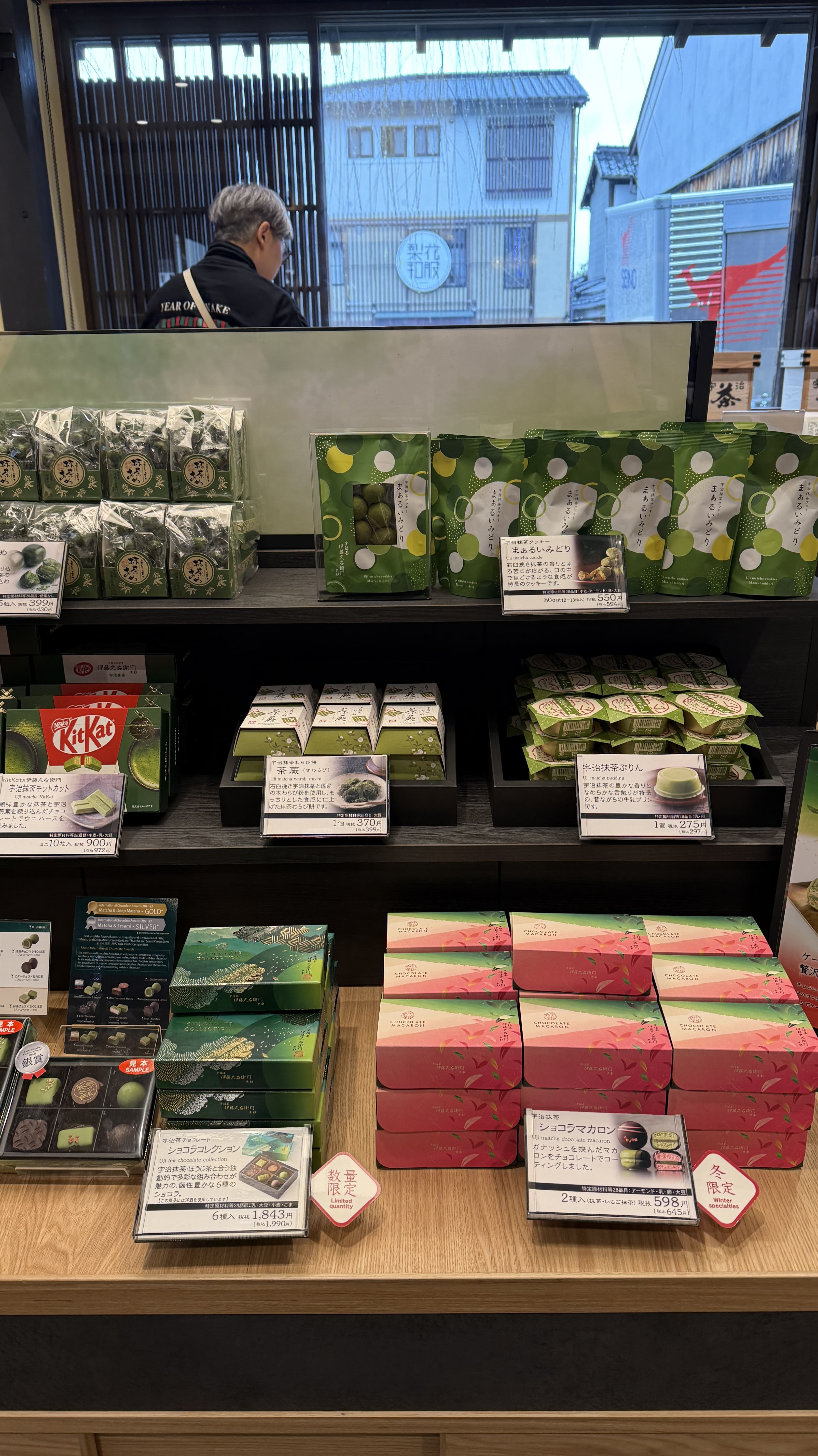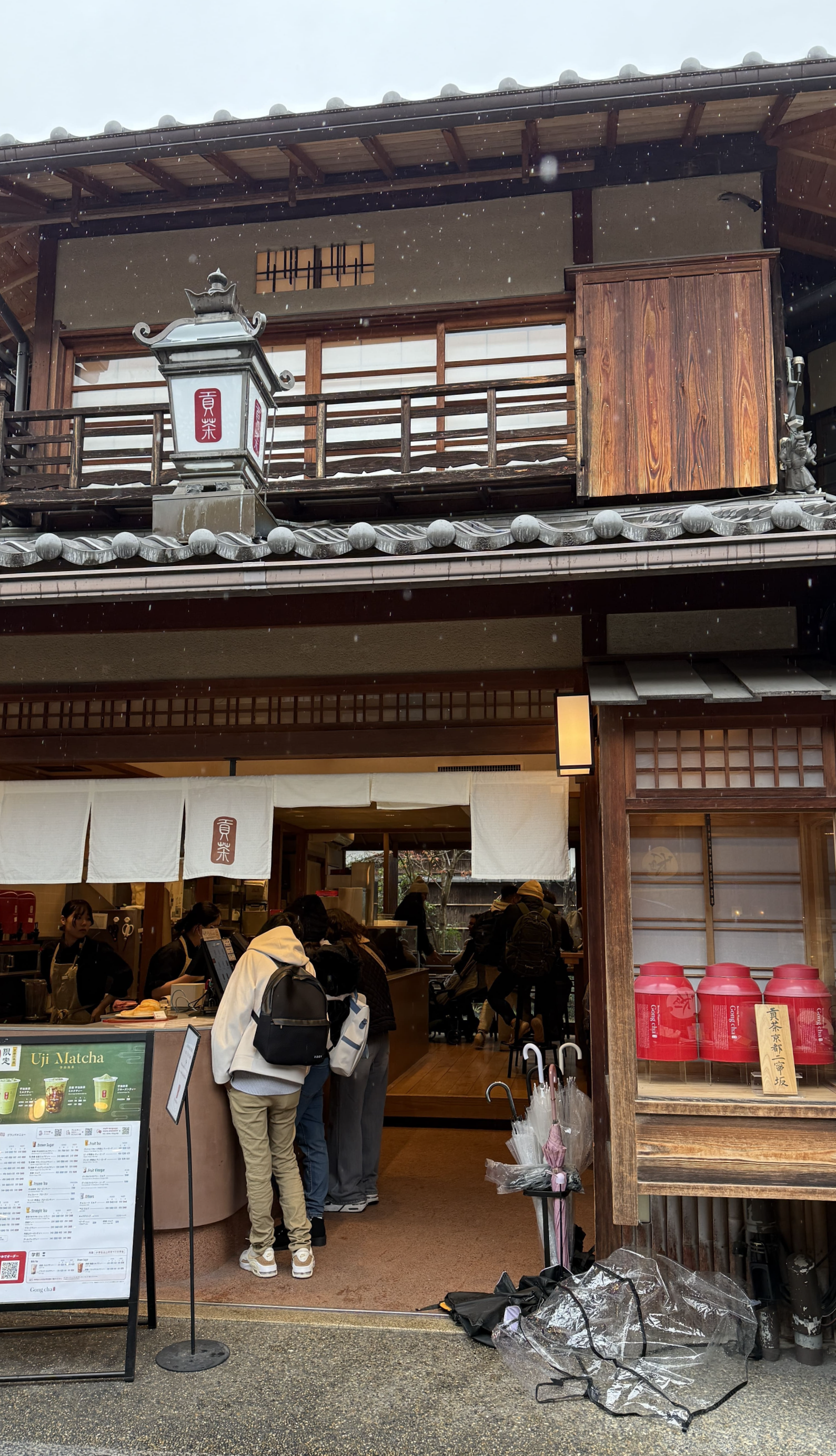 산넨자카가 끝나면 이어지는 닌넨자카는 좀 더 평탄한 길로, 기모노 체험샵, 전통 디저트 카페, 그리고 말차 전문점이 정말 많습니다. 교토에서만 맛볼 수 있는 말차 소프트 아이스크림, 말차 라테, 말차 와플 같은 디저트들이 가득해서, 도보 여행 중간에 잠시 쉬어가기 딱 좋은 곳이에요. 저는 말차하우스에서 말차 티라미수와 말차라테를 먹었는데, 진하고 맛있었습니다.