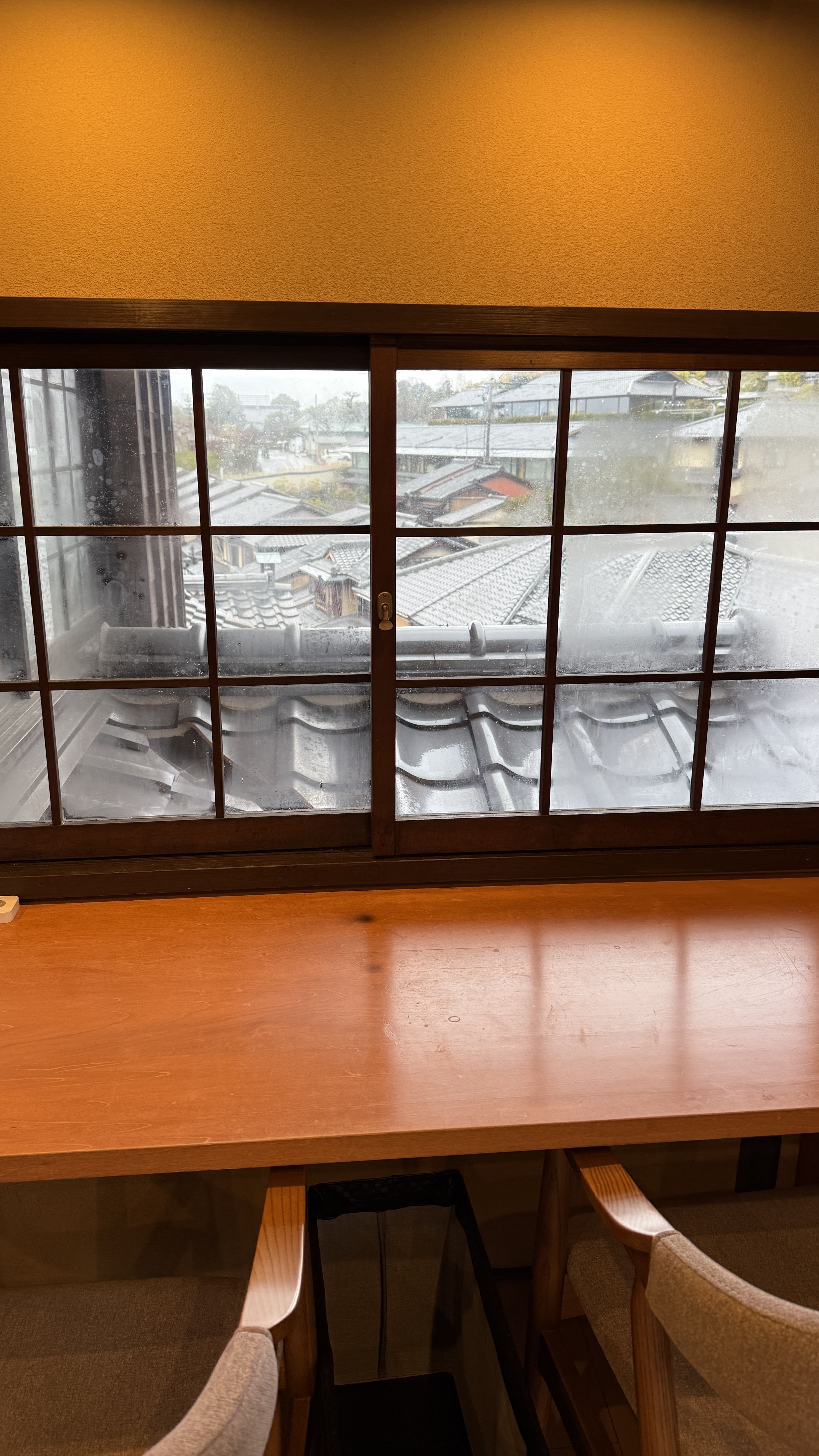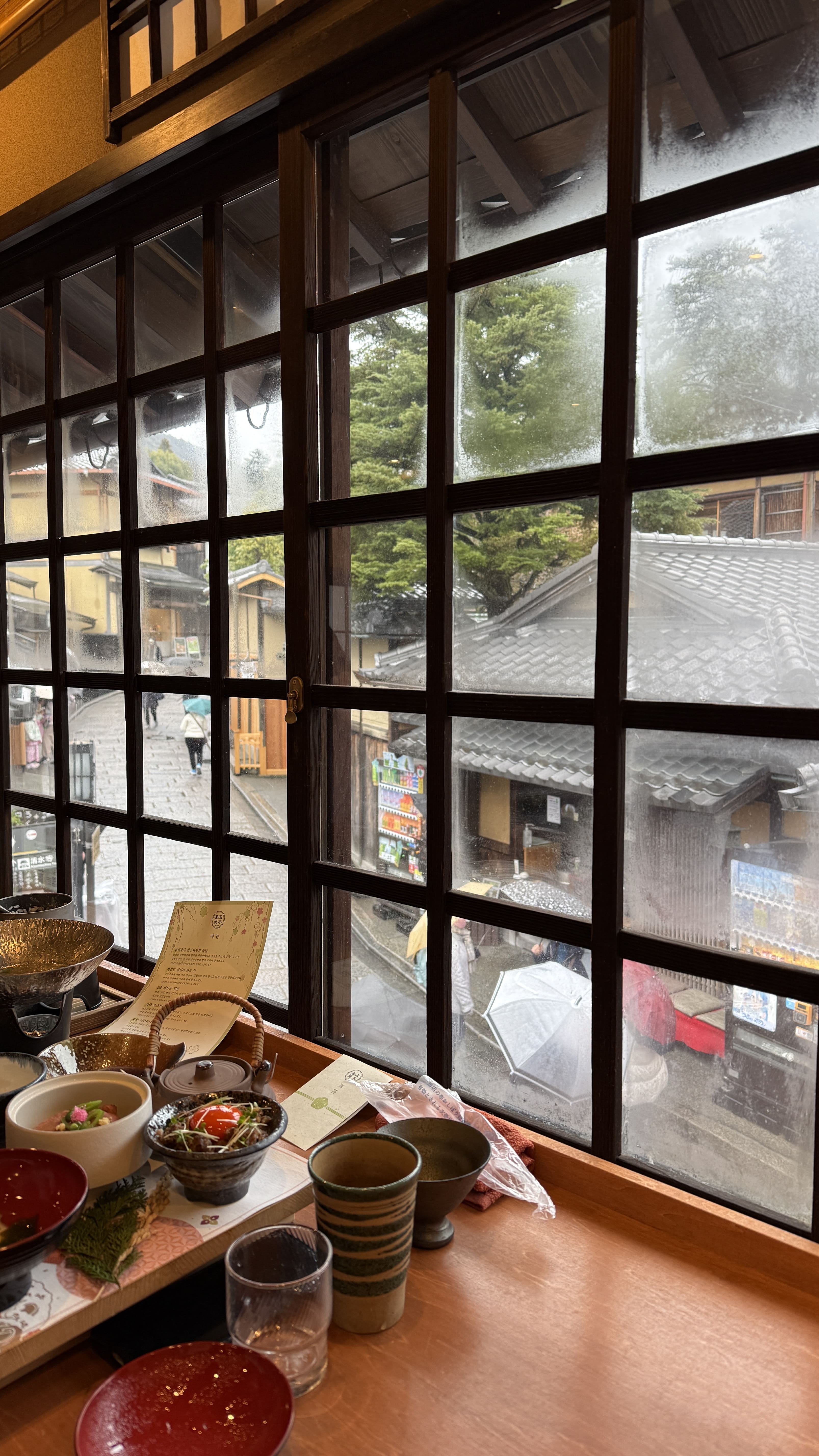 식사는 2층 창가 자리에 앉아 즐길 수 있었는데, 창문 너머로 보이는 교토의 거리 풍경이 마치 일본영화의 한 장면처럼 느껴졌습니다. 비가 부슬부슬 내리는 날이었지만 오히려 분위기가 더 운치 있었고, 조용한 공간에서 여유 있게 점심을 즐길 수 있었습니다.