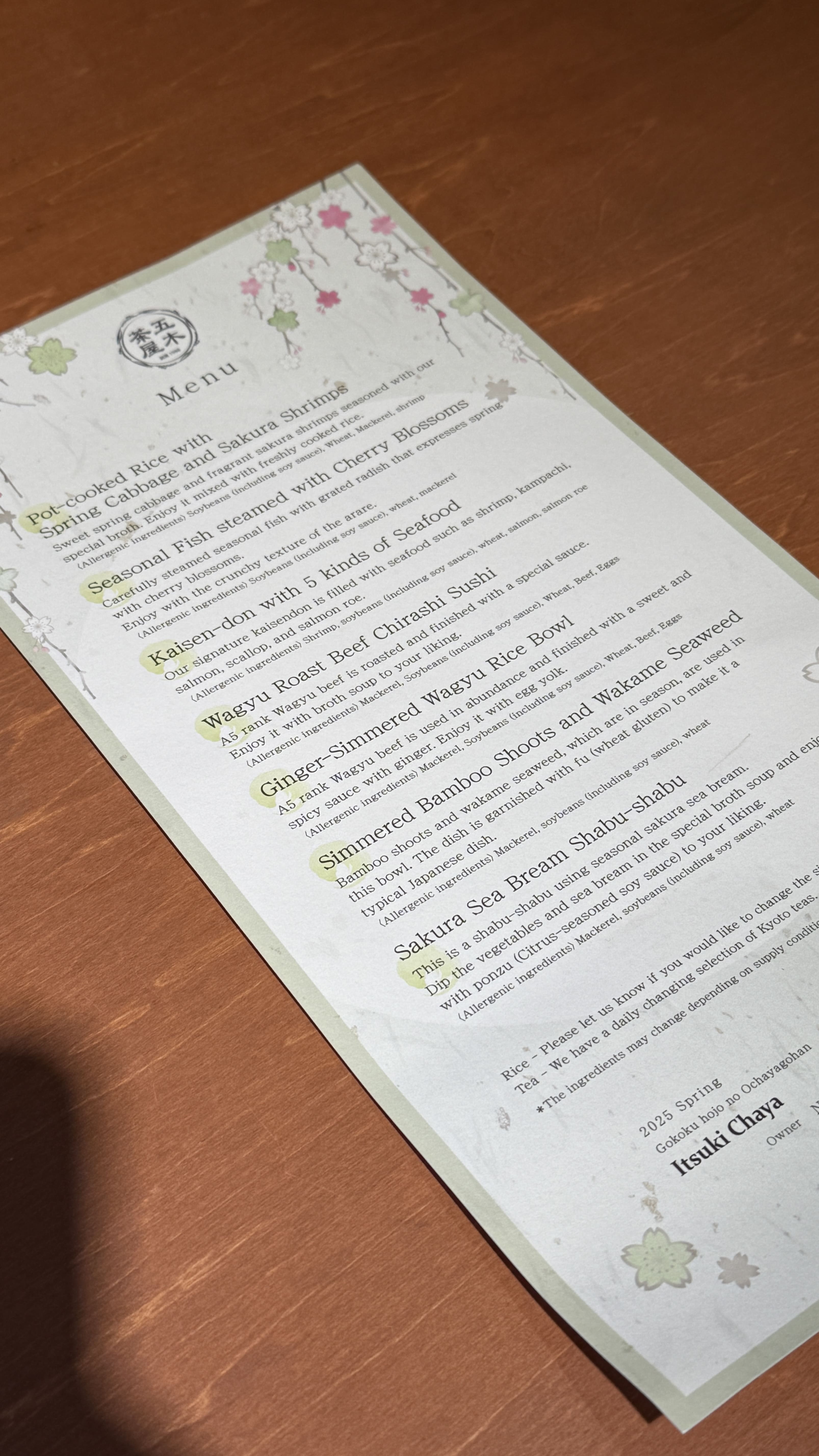 특히 이곳은 계절마다 바뀌는 테마 메뉴를 제공하고 있어, 봄에는 벚꽃 테마로 된 ‘Pot-cooked Rice with Spring Cabbage and Sakura Shrimps’, ‘Seasonal Fish steamed with Cherry Blossoms’ 같은 메뉴를 맛볼 수 있었습니다. 계절마다 음식이 바뀌니 미리 확인 꼭 해보세요!
