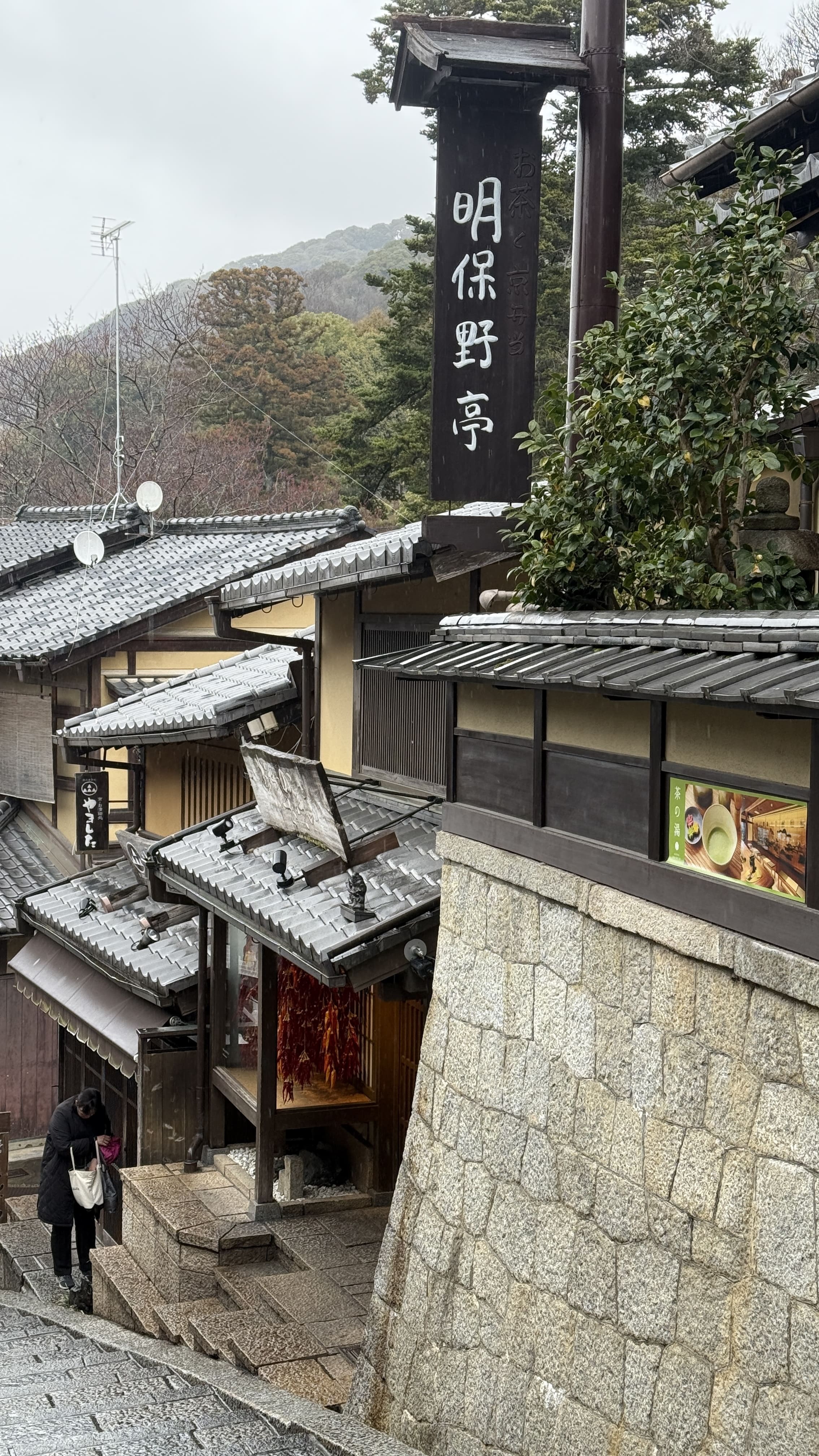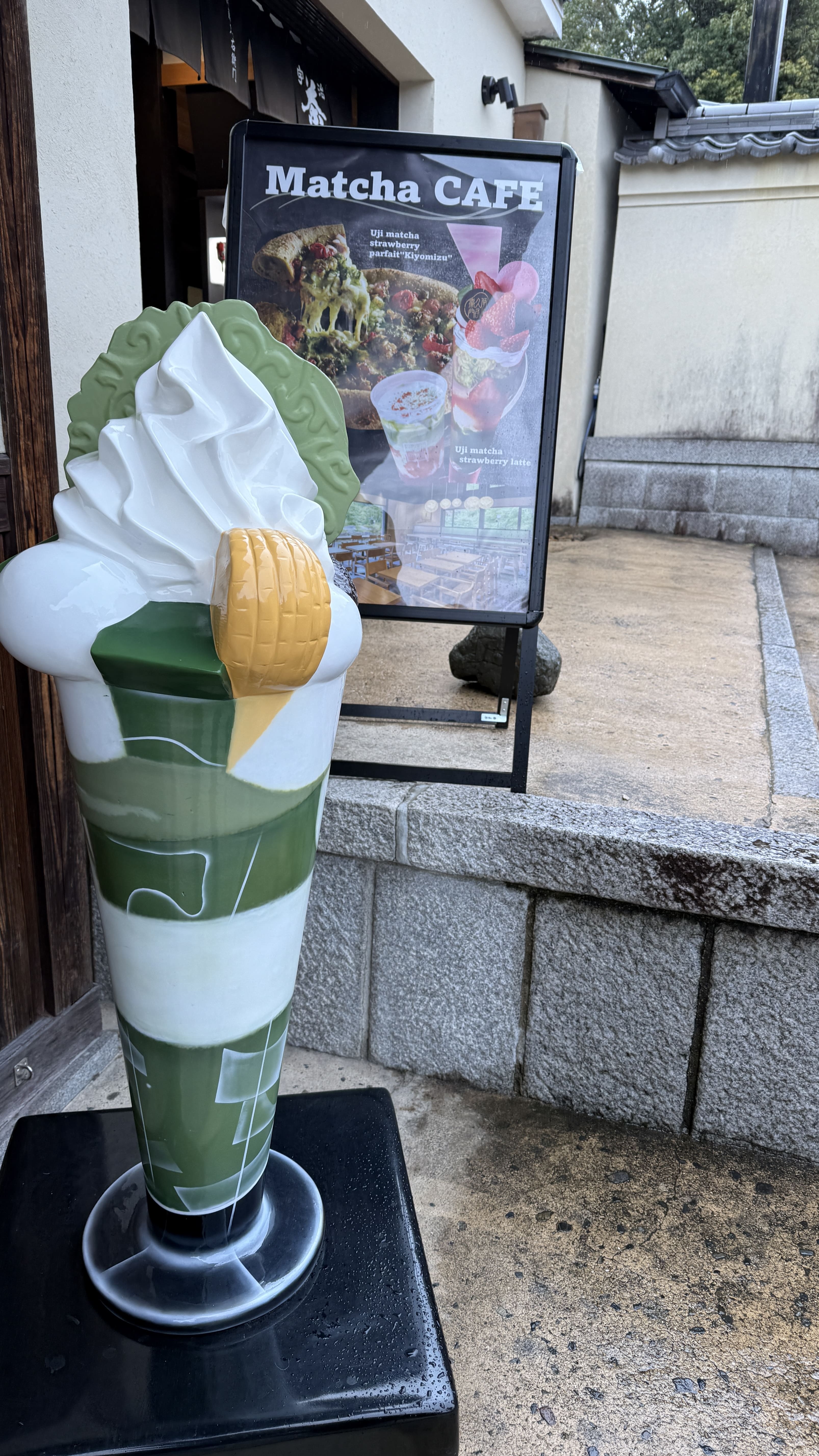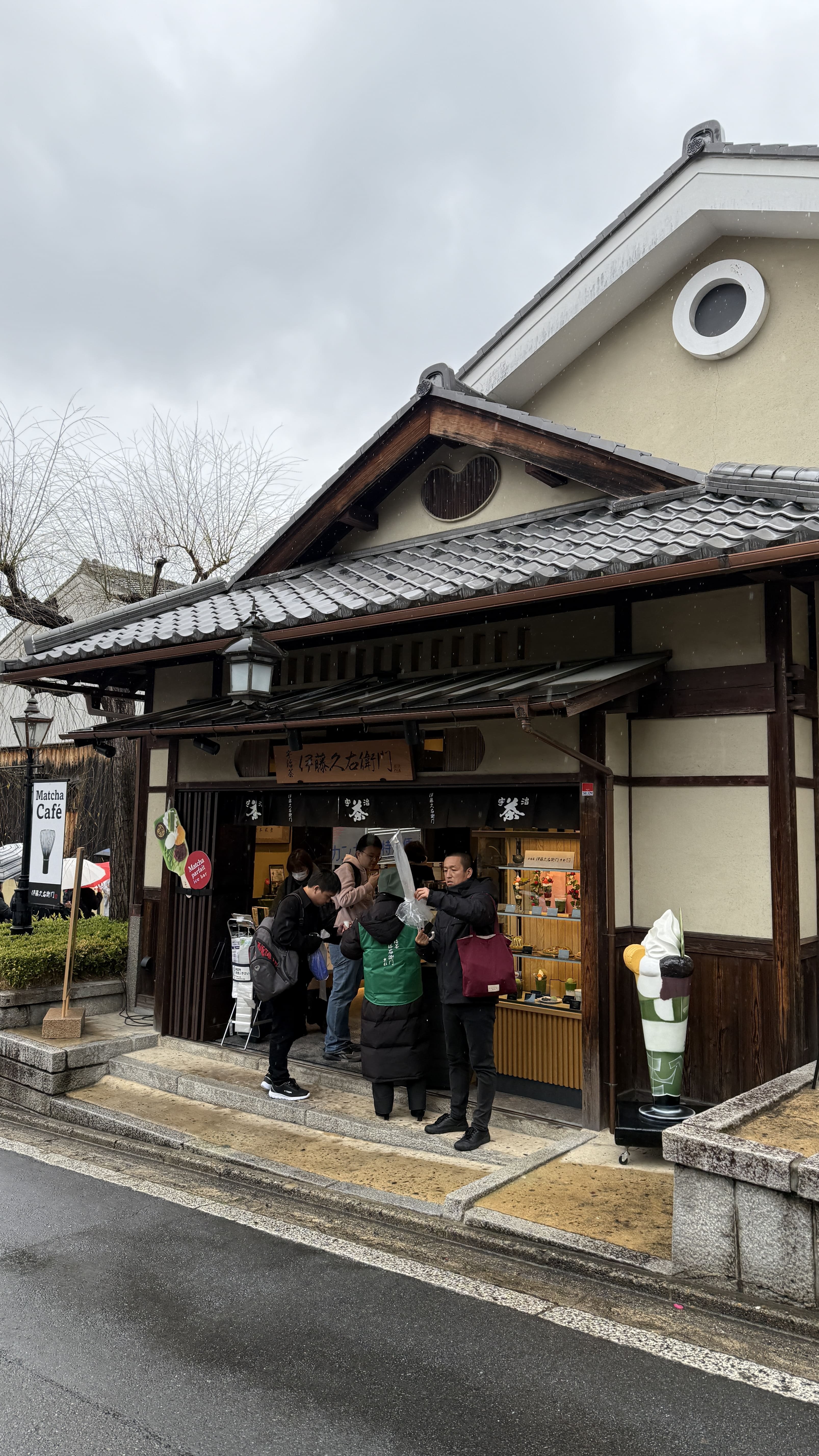 산넨자카가 끝나면 이어지는 닌넨자카는 좀 더 평탄한 길로, 기모노 체험샵, 전통 디저트 카페, 그리고 말차 전문점이 정말 많습니다. 교토에서만 맛볼 수 있는 말차 소프트 아이스크림, 말차 라테, 말차 와플 같은 디저트들이 가득해서, 도보 여행 중간에 잠시 쉬어가기 딱 좋은 곳이에요. 저는 말차하우스에서 말차 티라미수와 말차라테를 먹었는데, 진하고 맛있었습니다.