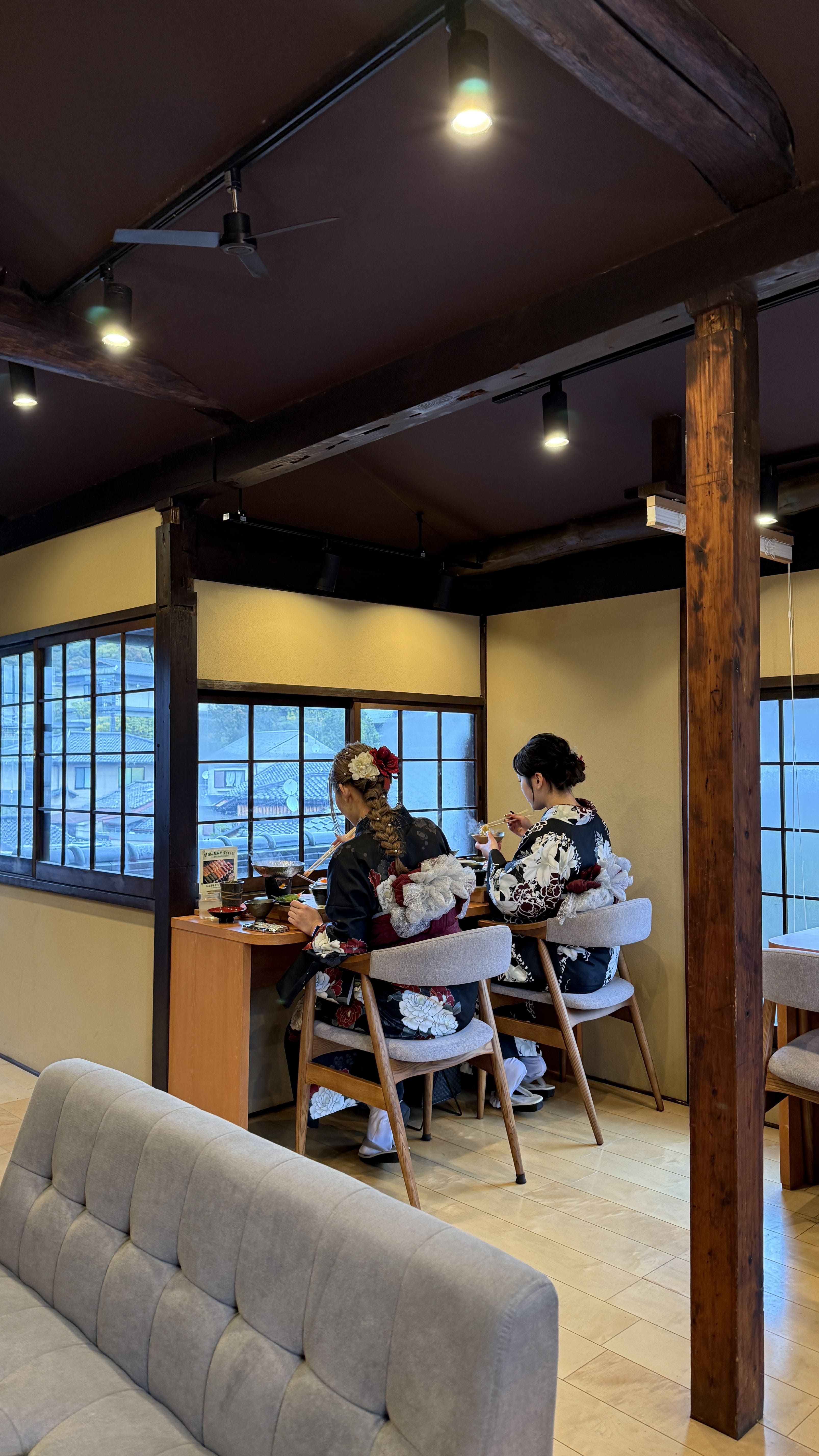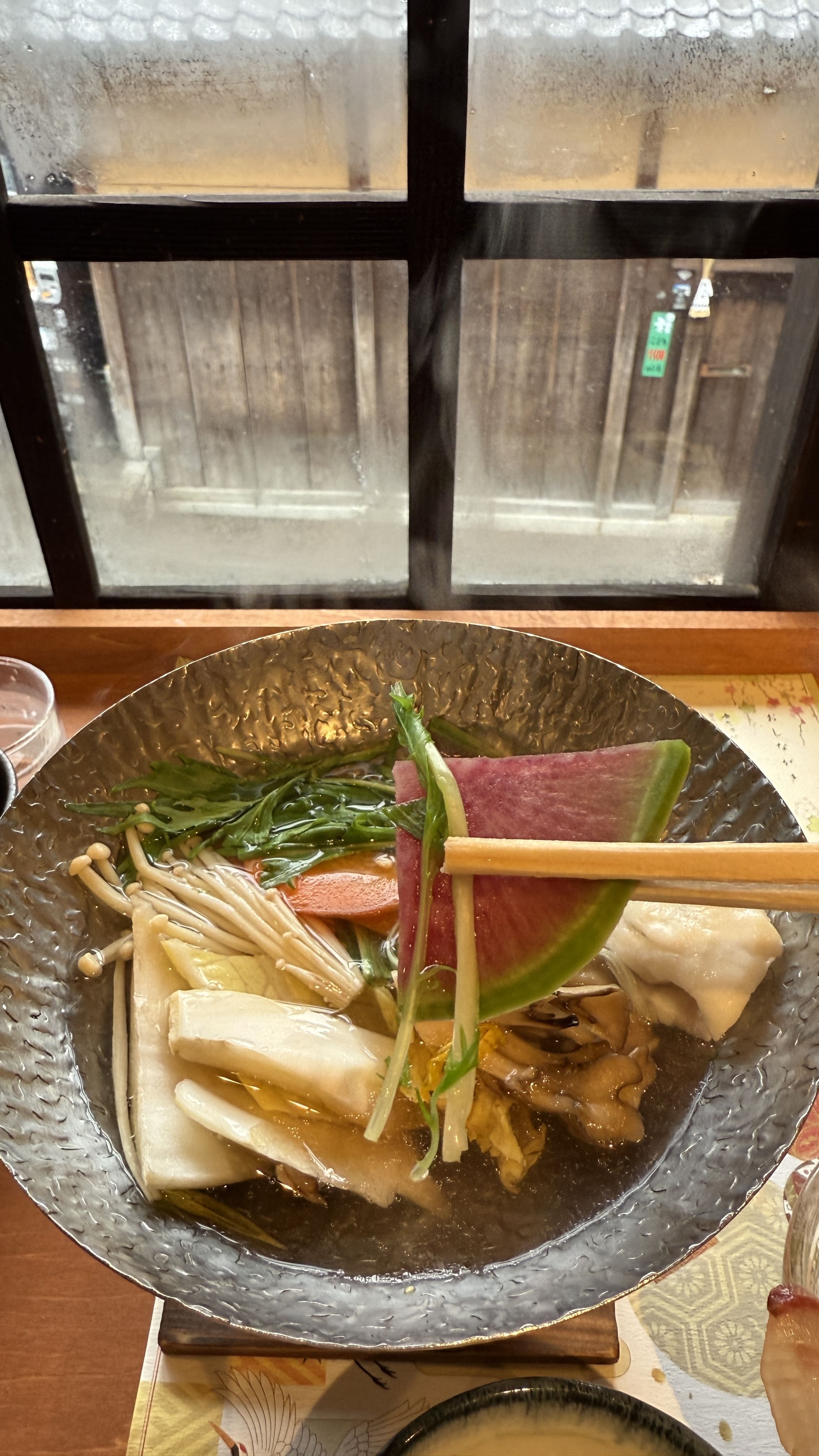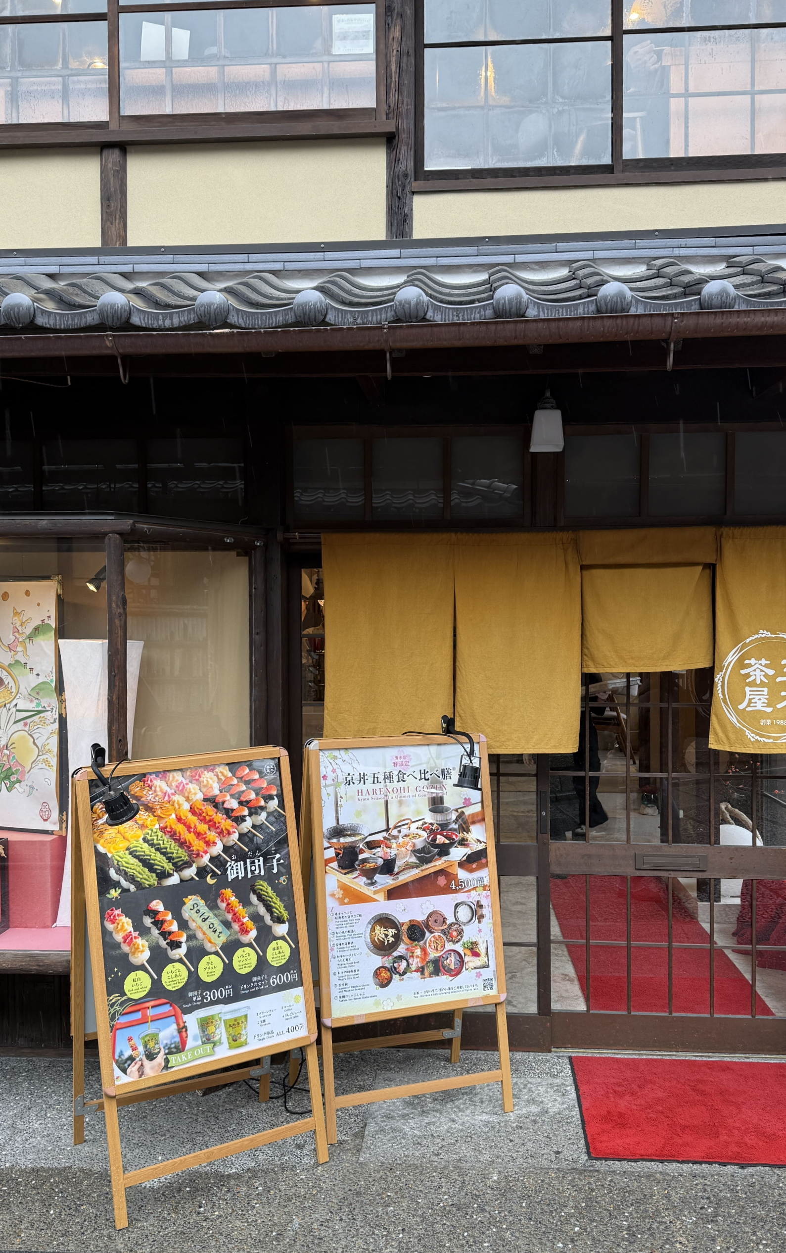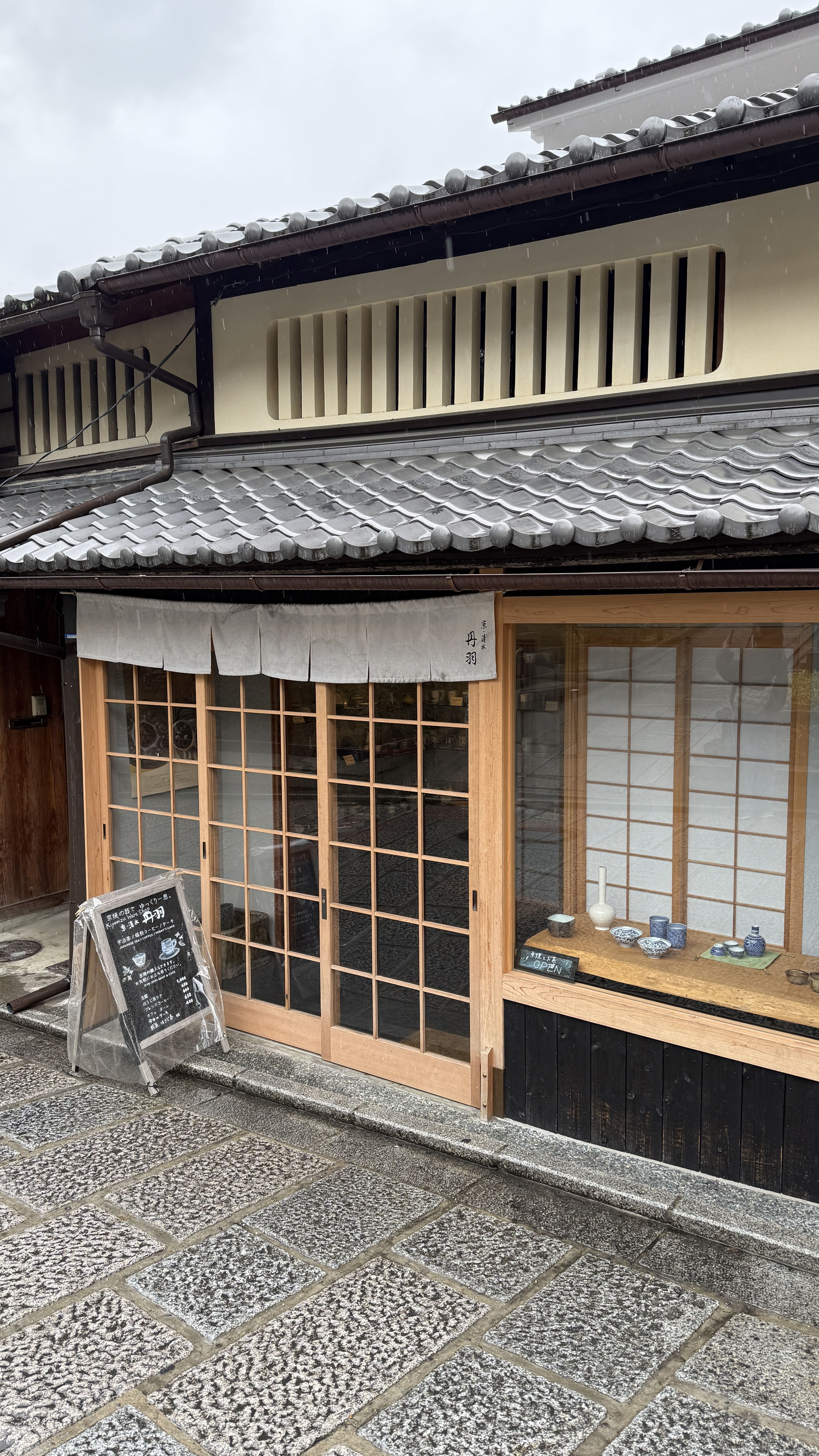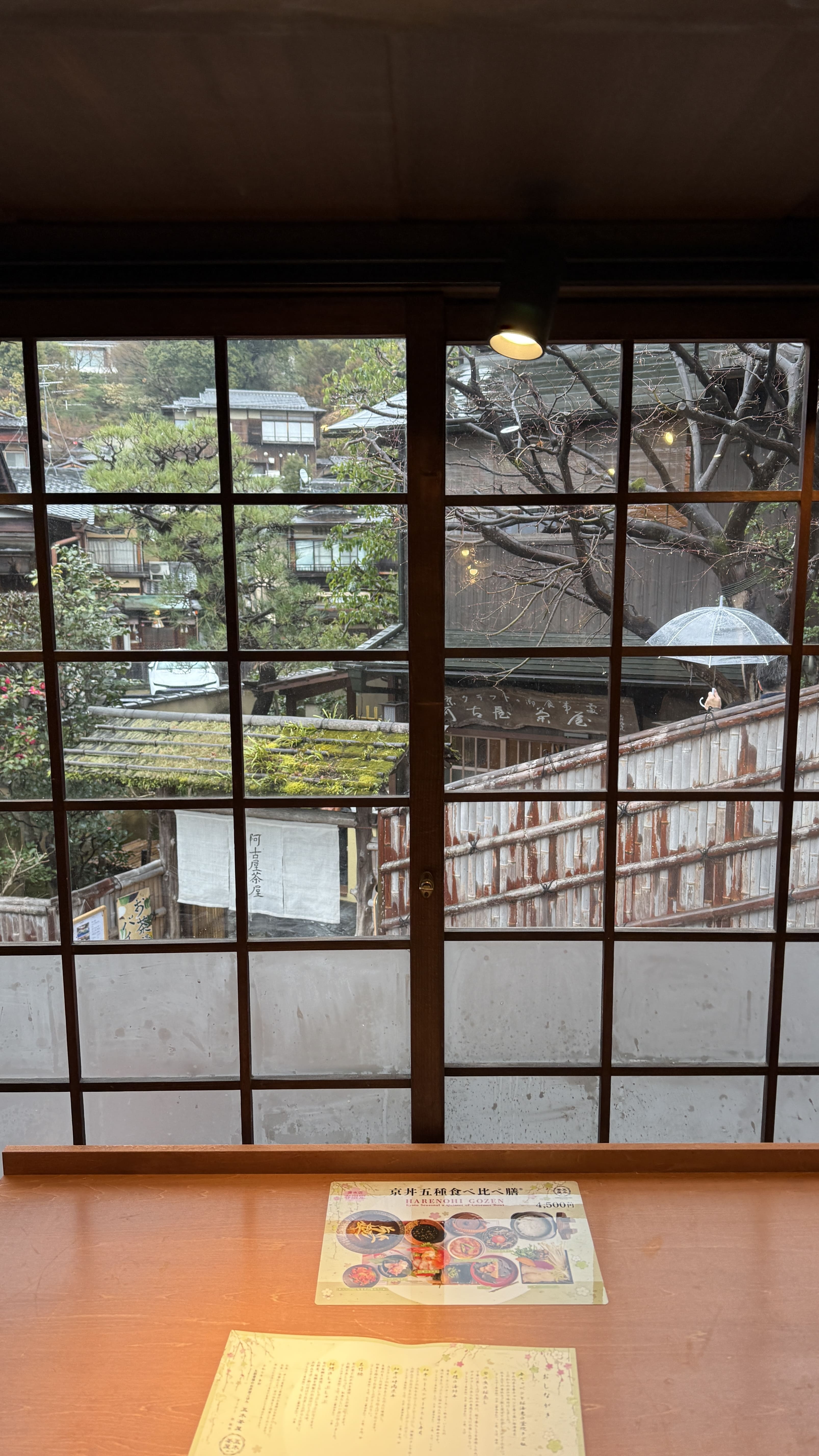 식사는 2층 창가 자리에 앉아 즐길 수 있었는데, 창문 너머로 보이는 교토의 거리 풍경이 마치 일본영화의 한 장면처럼 느껴졌습니다. 비가 부슬부슬 내리는 날이었지만 오히려 분위기가 더 운치 있었고, 조용한 공간에서 여유 있게 점심을 즐길 수 있었습니다.