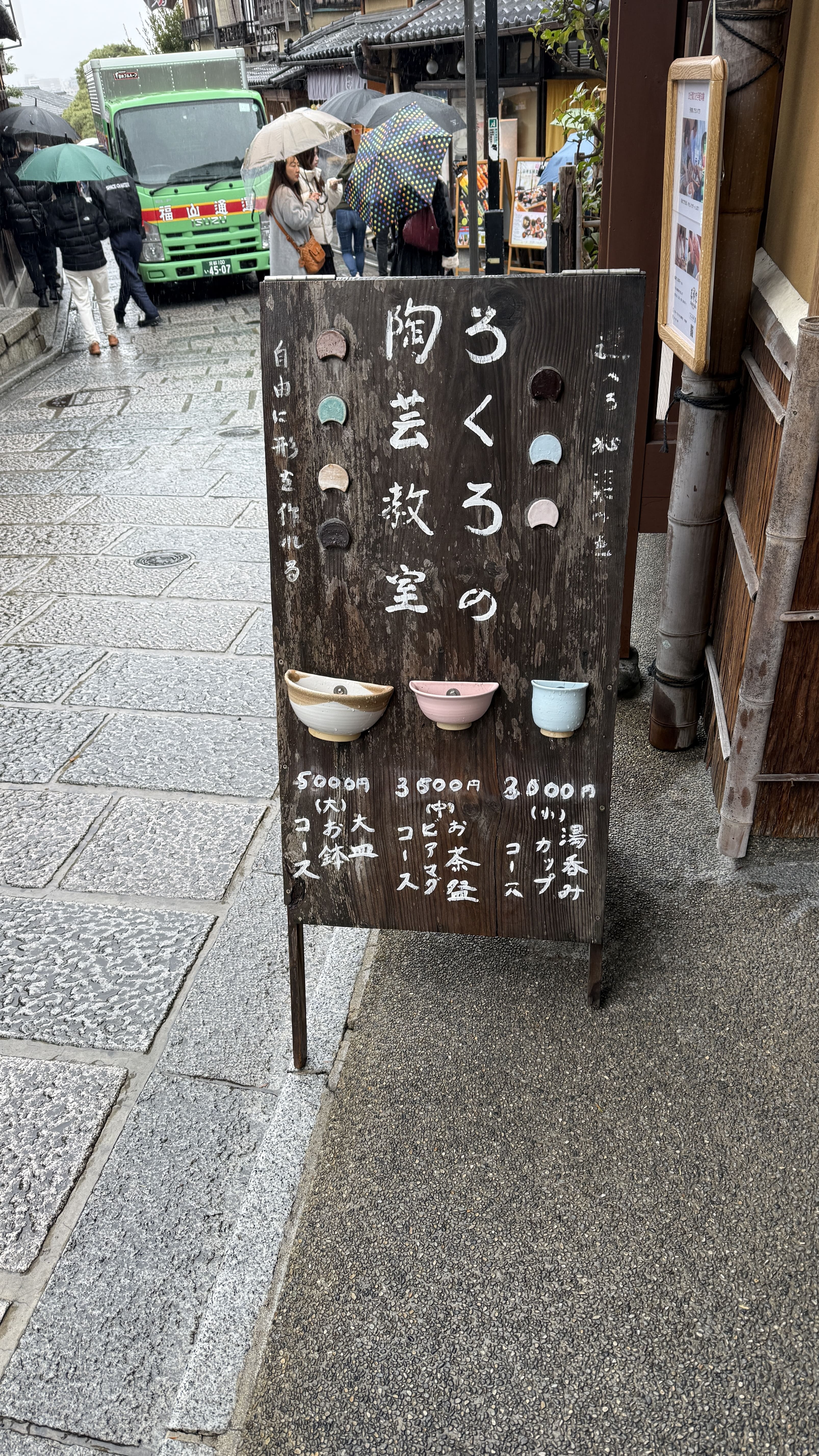 이 거리에는 특히 기요미즈야키라는 전통 도자기를 파는 상점이 많습니다. 손으로 빚어낸 찻잔, 접시, 작은 그릇들이 정갈하게 진열돼 있고, 가격대는 1,000엔대부터 수만 엔대까지 다양했습니다. 직접 접시를 만들 수 있는 클래스도 있었습니다. 기념품으로도 좋고, 전통적인 감성을 담은 소품을 찾는 분들께 추천드립니다!