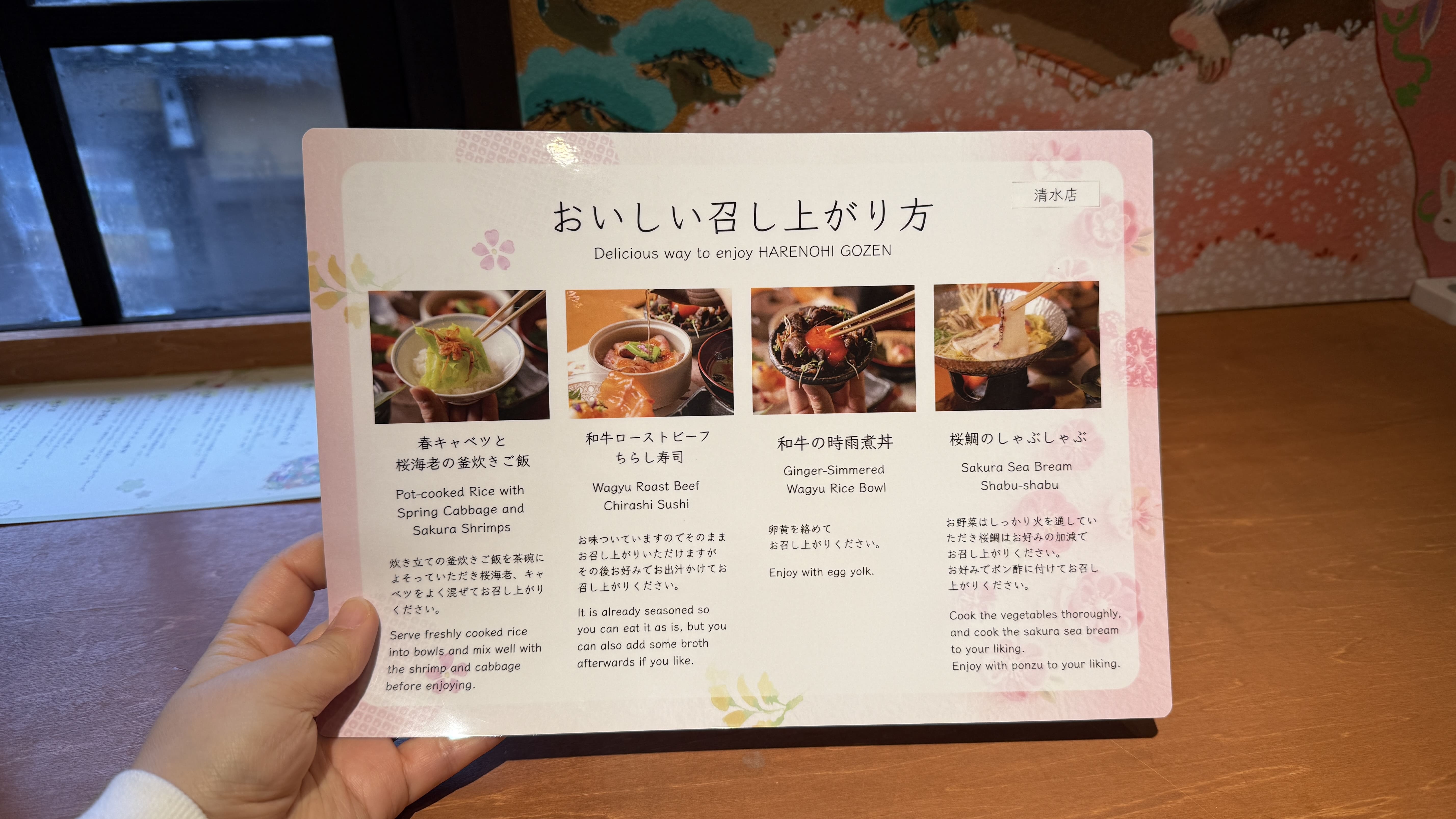 특히 이곳은 계절마다 바뀌는 테마 메뉴를 제공하고 있어, 봄에는 벚꽃 테마로 된 ‘Pot-cooked Rice with Spring Cabbage and Sakura Shrimps’, ‘Seasonal Fish steamed with Cherry Blossoms’ 같은 메뉴를 맛볼 수 있었습니다. 계절마다 음식이 바뀌니 미리 확인 꼭 해보세요!
