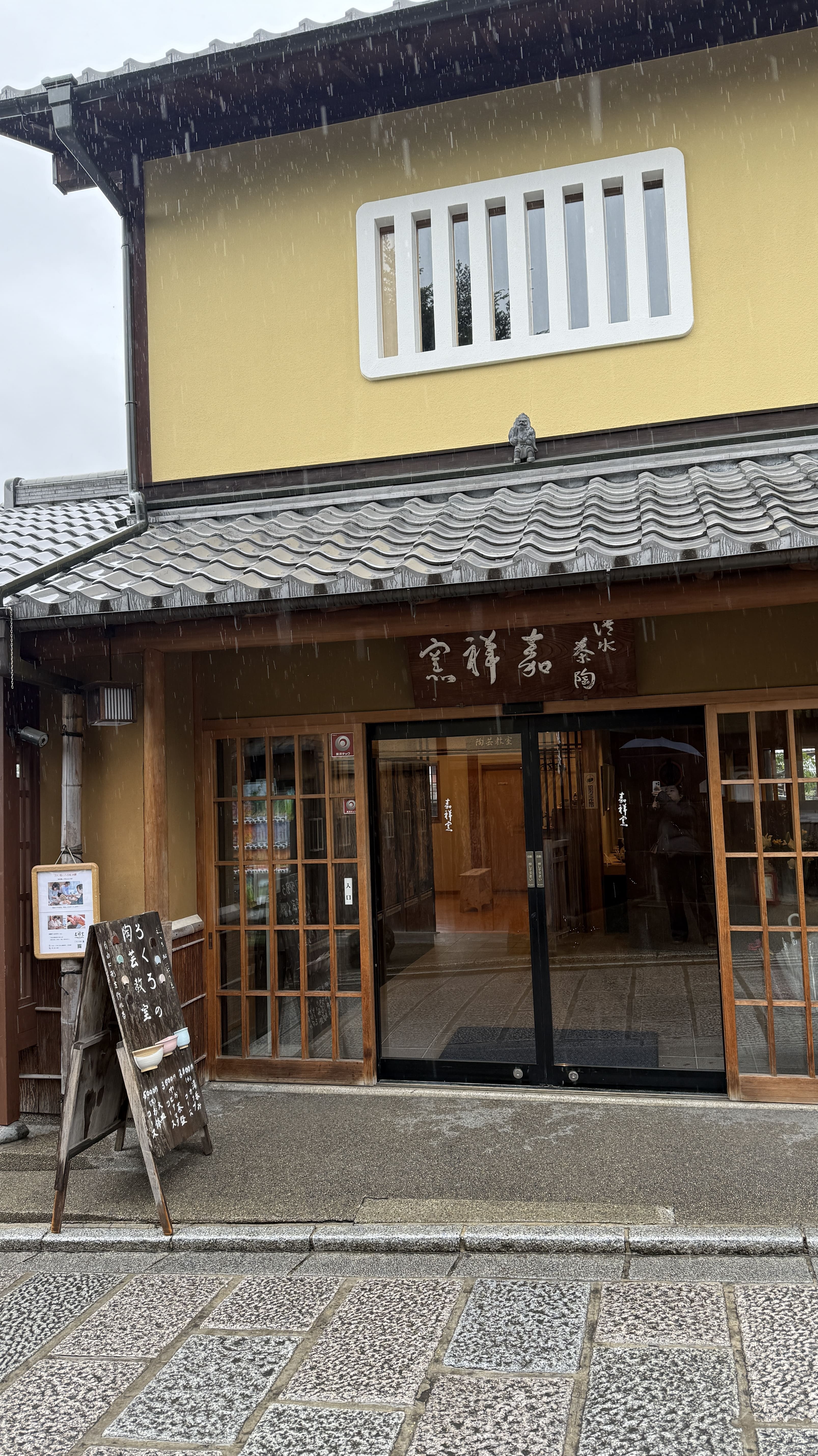 2. 전통 상점 내부 (기념품/도자기 가게 등): 상점 내부는 대부분 촬영 금지, 또는 촬영 전 허락 필요한 곳이 많습니다. 특히 기요미즈야키 도자기 상점들은 작품 보호와 저작권 문제로 촬영 불가인 경우가 많았습니다. 진열장에 (사츠에이 킨시, 촬영 금지)라는 표지가 붙어 있었습니다.