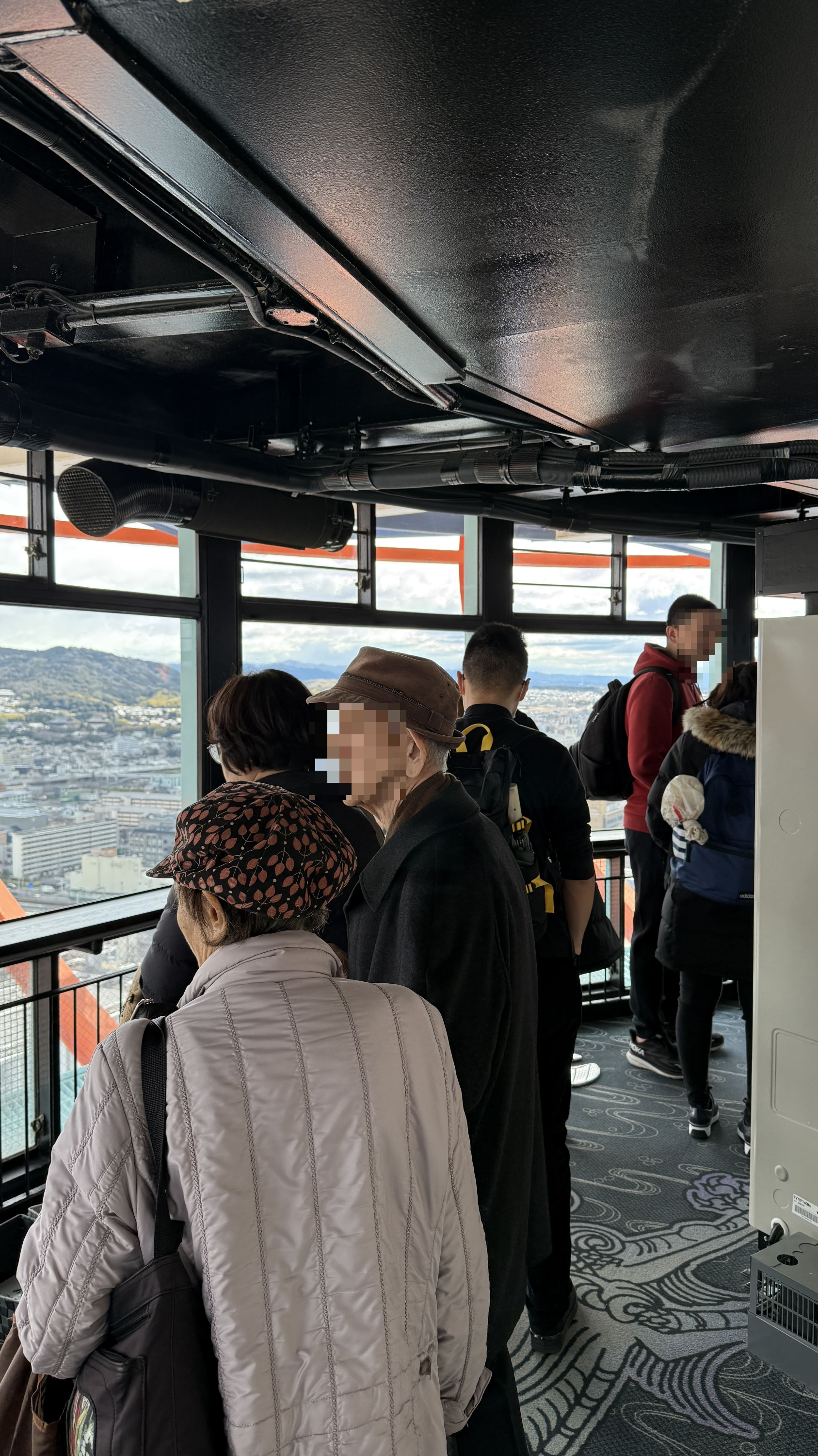 교토 타워는 높이 131m의 구조물로, 교토에서 가장 높은 전망대입니다. 전통적인 저층 건물이 많은 교토 시내에서 유일하게 스카이라인을 담당하는 구조물이죠. 저희는 한 오전 11시 30분쯤 입장했는데, 다행히 화창한 날씨 덕에 교토 시내의 기와지붕이 어우러진 풍경을 내려다보는 기분이 아주 특별했습니다. 특히 멀리 보이는 히에이잔 산, 교토역 주변의 역동적인 모습까지 한눈에 담기기 때문에, 처음 교토를 방문하신 분들께 꼭 추천드리고 싶습니다!