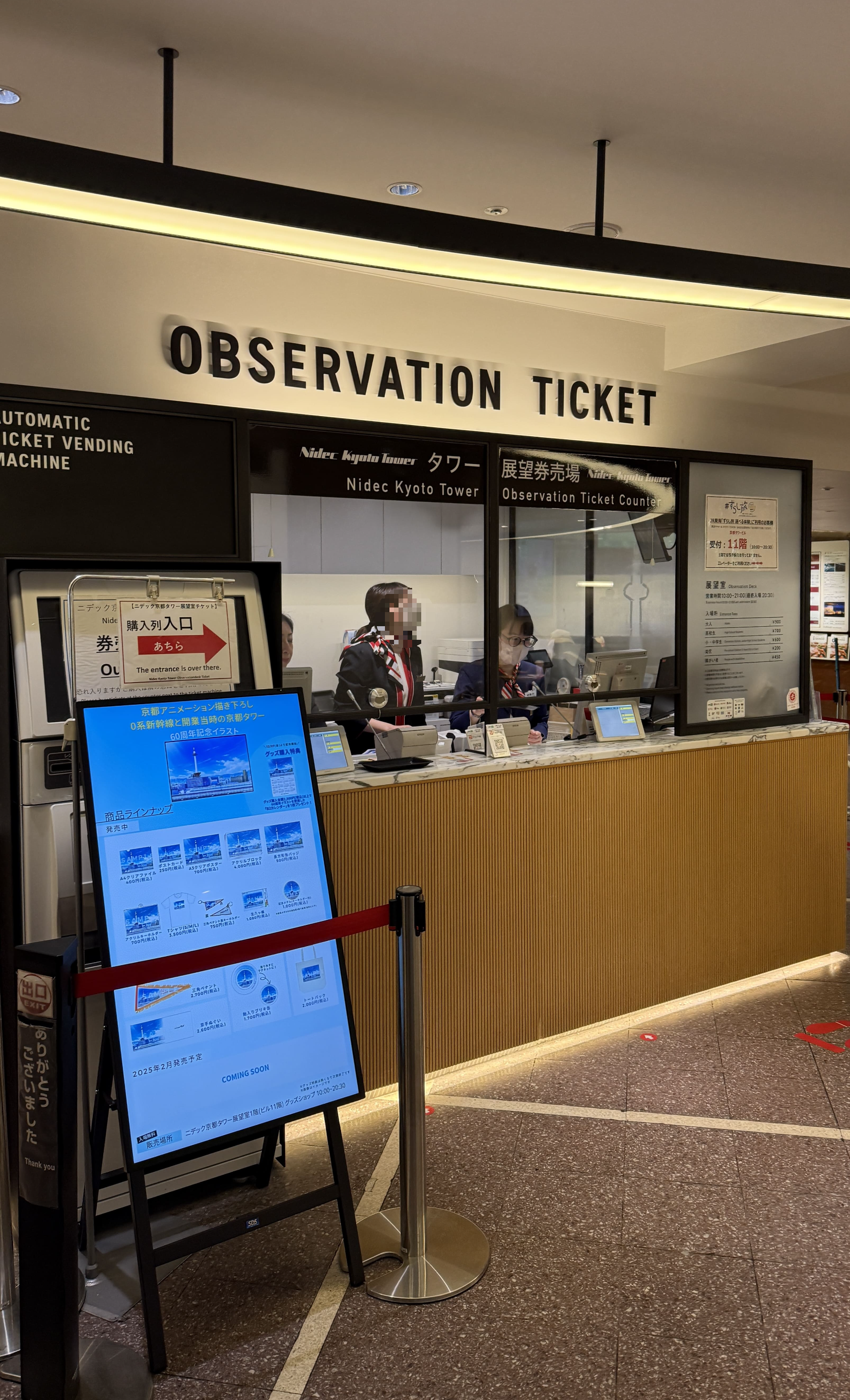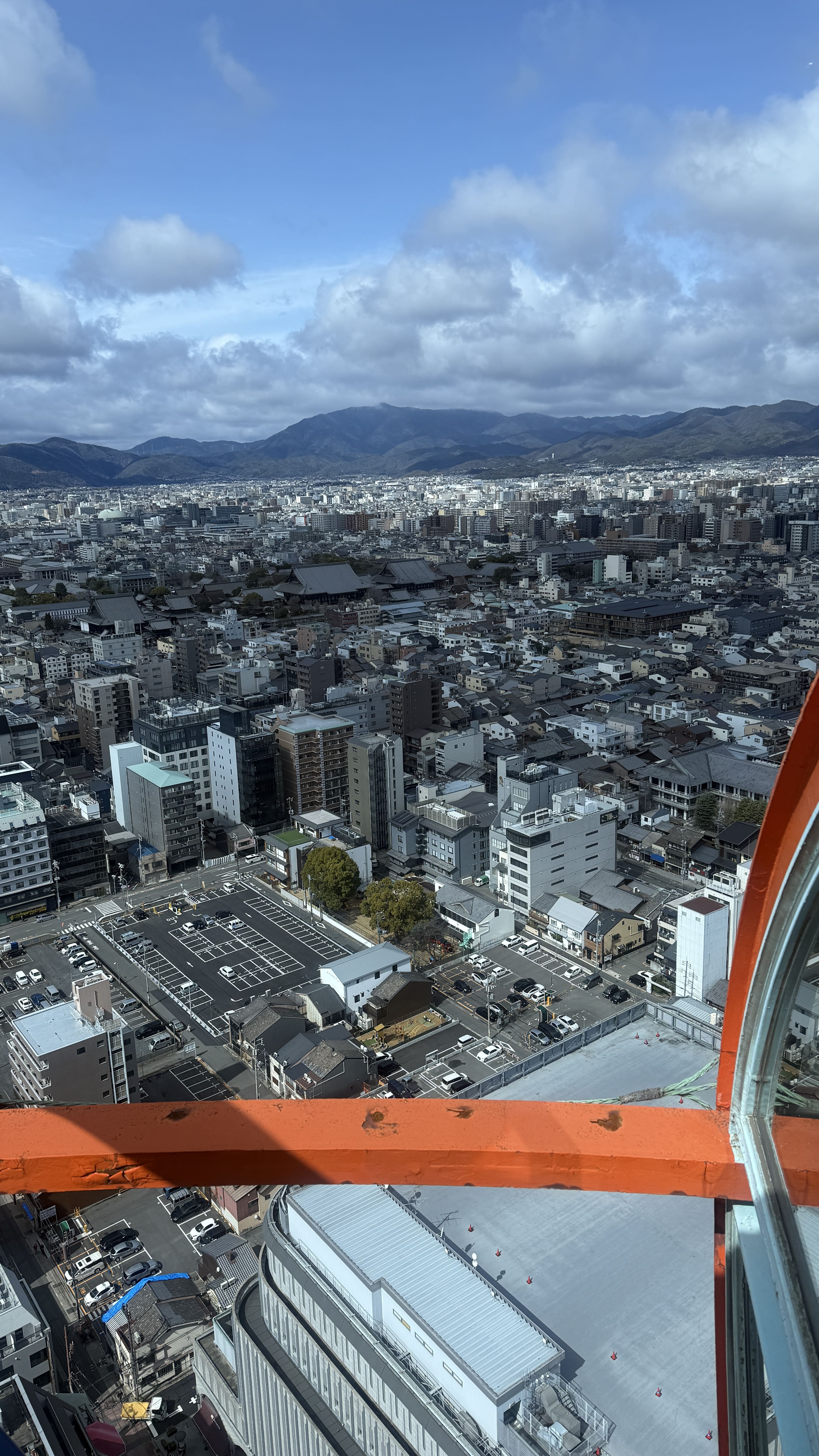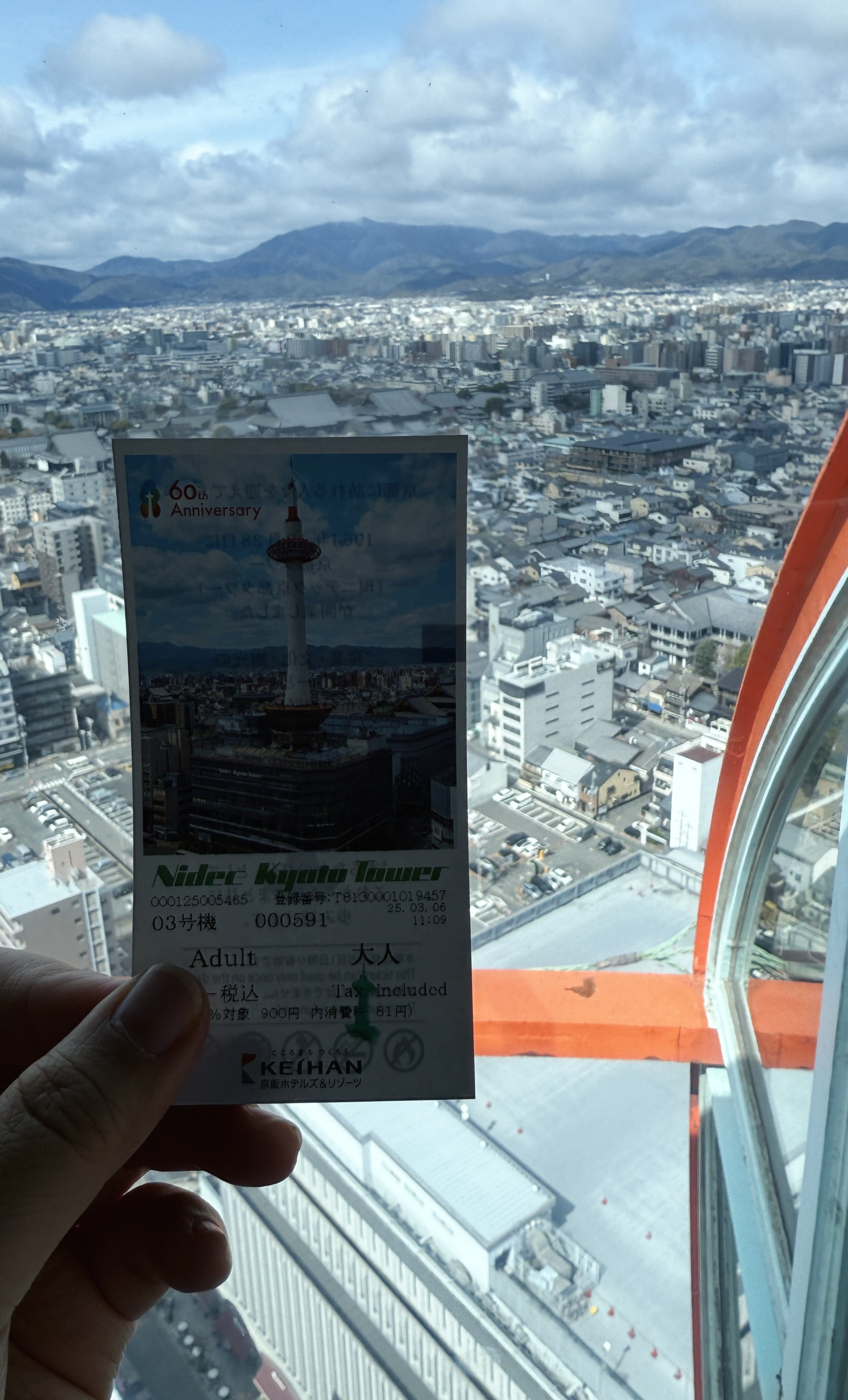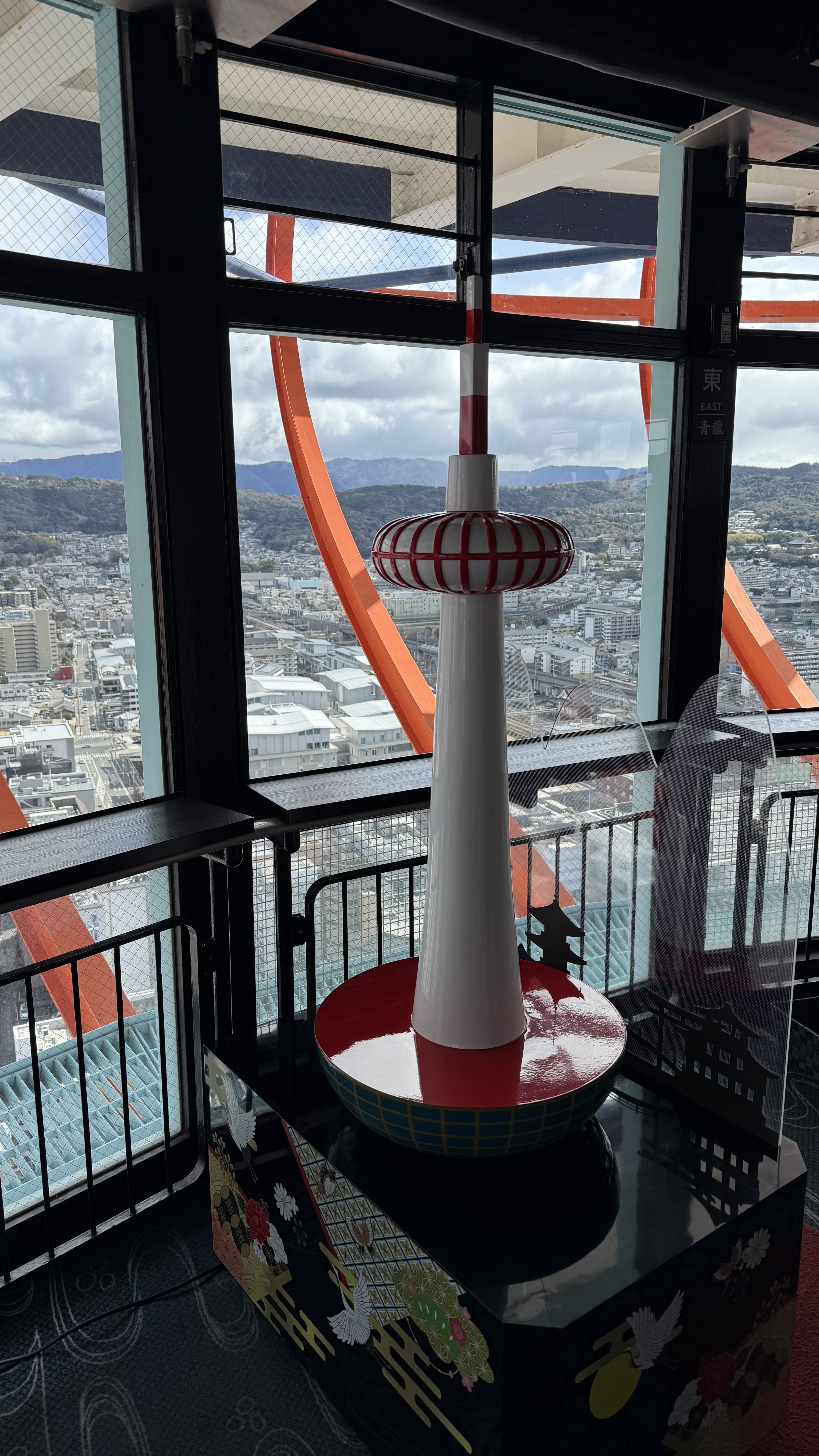 교토 타워는 높이 131m의 구조물로, 교토에서 가장 높은 전망대입니다. 전통적인 저층 건물이 많은 교토 시내에서 유일하게 스카이라인을 담당하는 구조물이죠. 저희는 한 오전 11시 30분쯤 입장했는데, 다행히 화창한 날씨 덕에 교토 시내의 기와지붕이 어우러진 풍경을 내려다보는 기분이 아주 특별했습니다. 특히 멀리 보이는 히에이잔 산, 교토역 주변의 역동적인 모습까지 한눈에 담기기 때문에, 처음 교토를 방문하신 분들께 꼭 추천드리고 싶습니다!