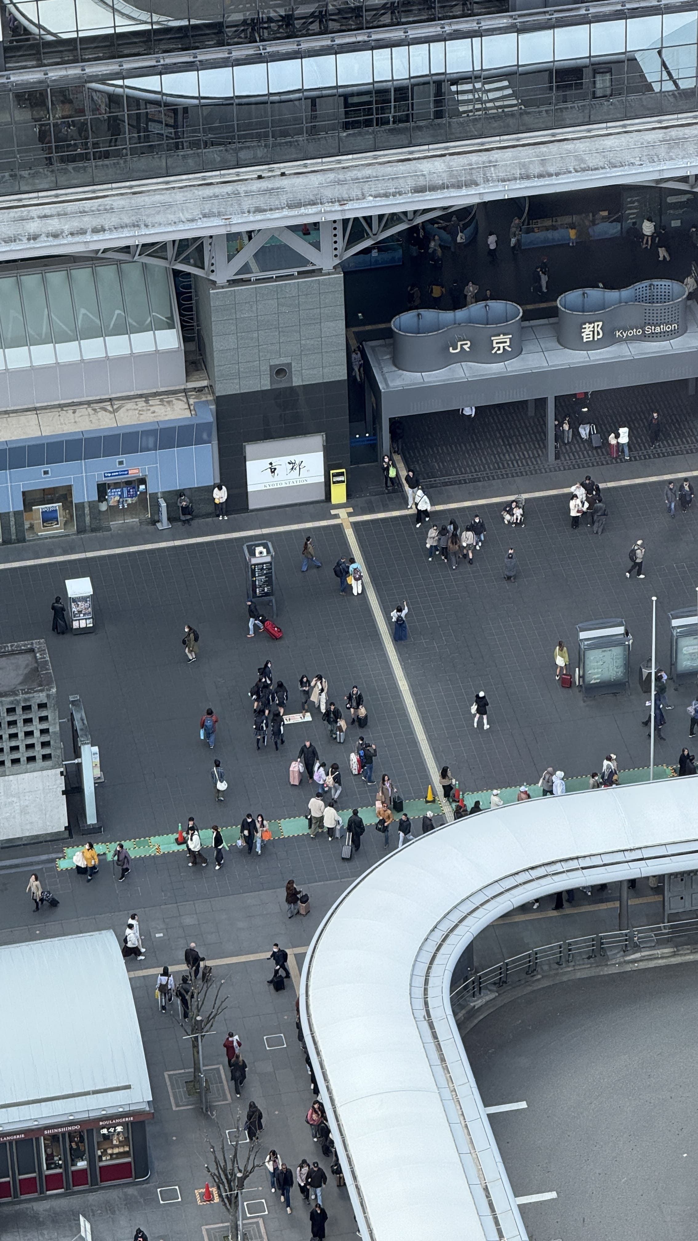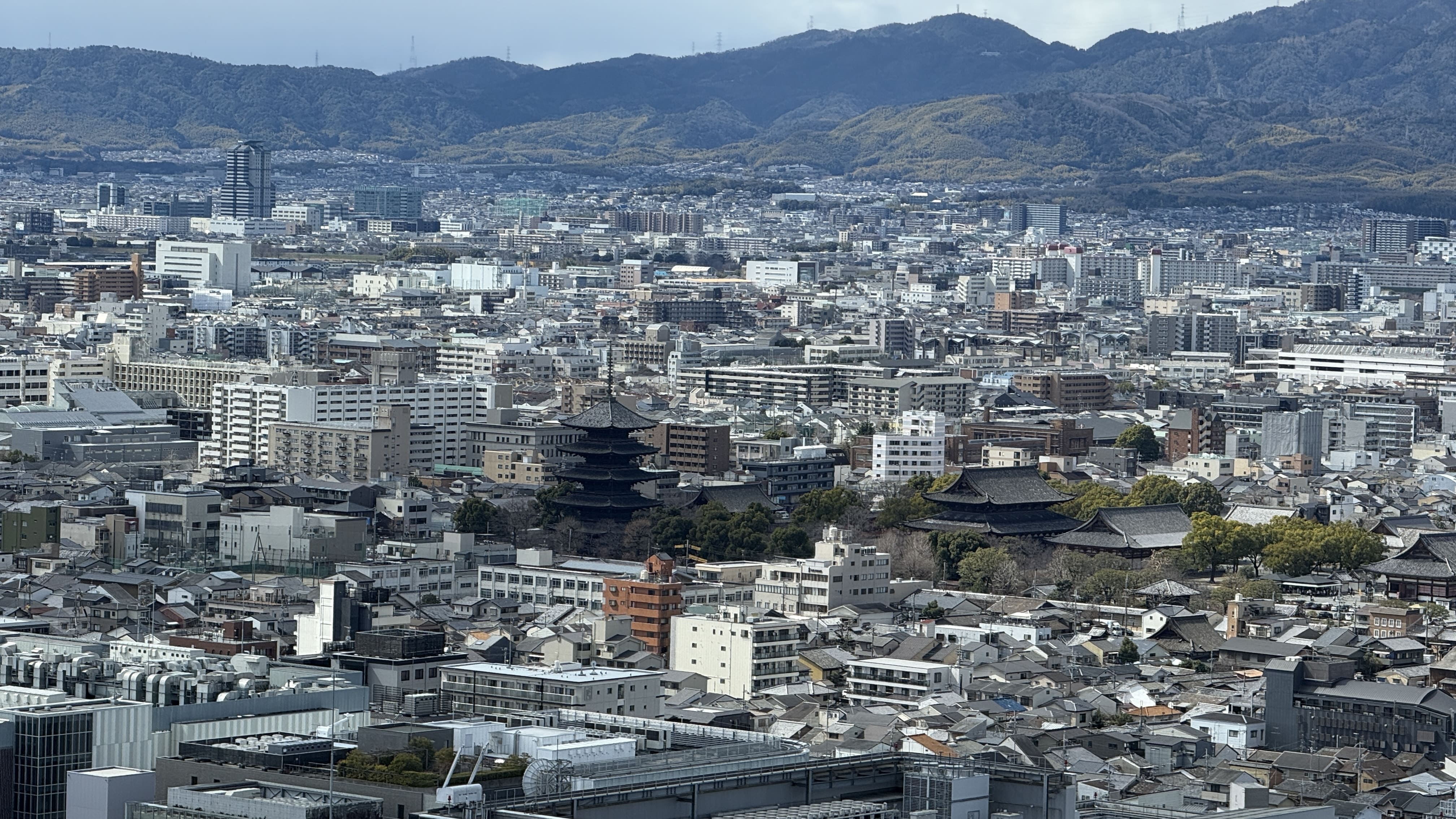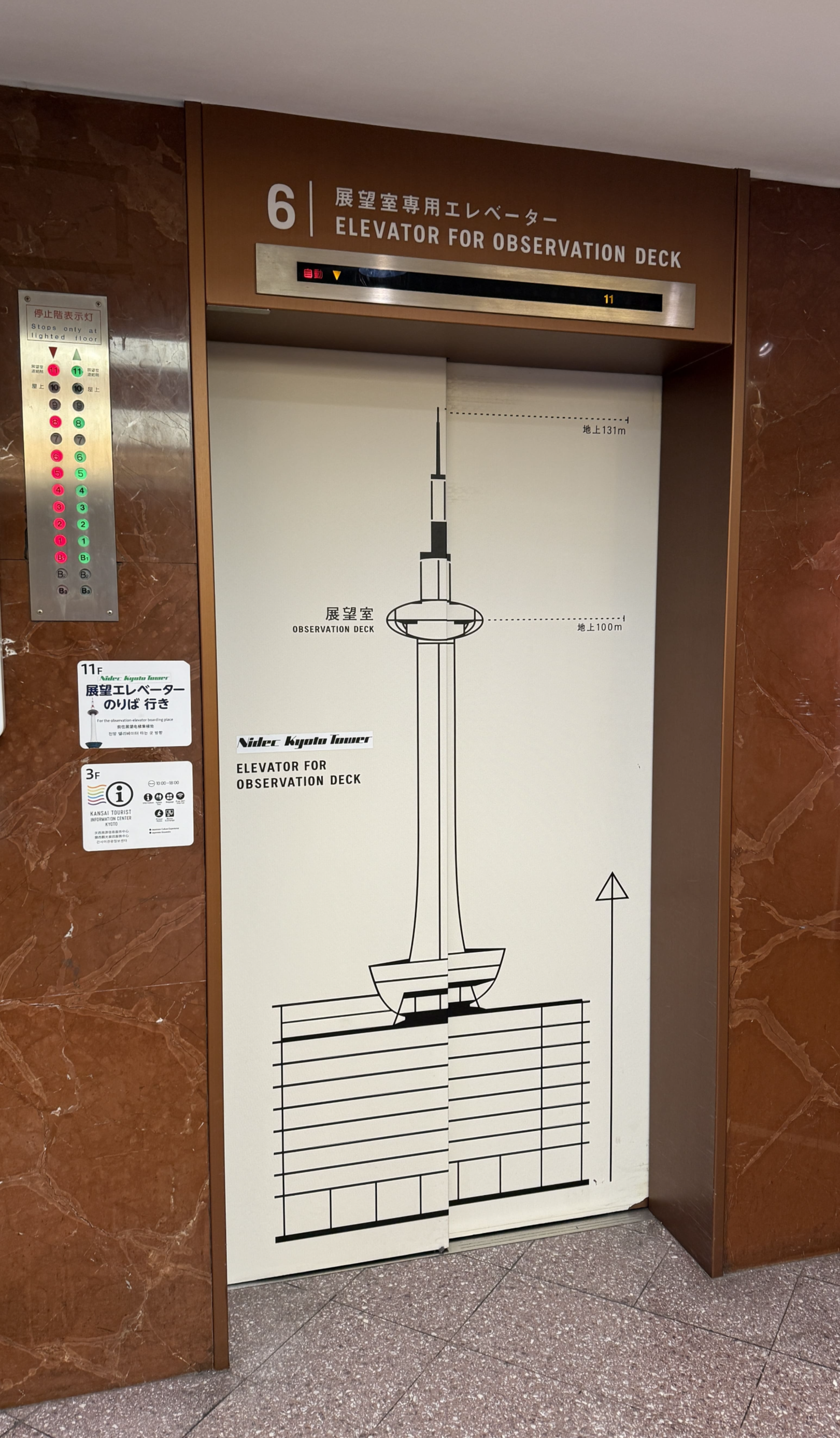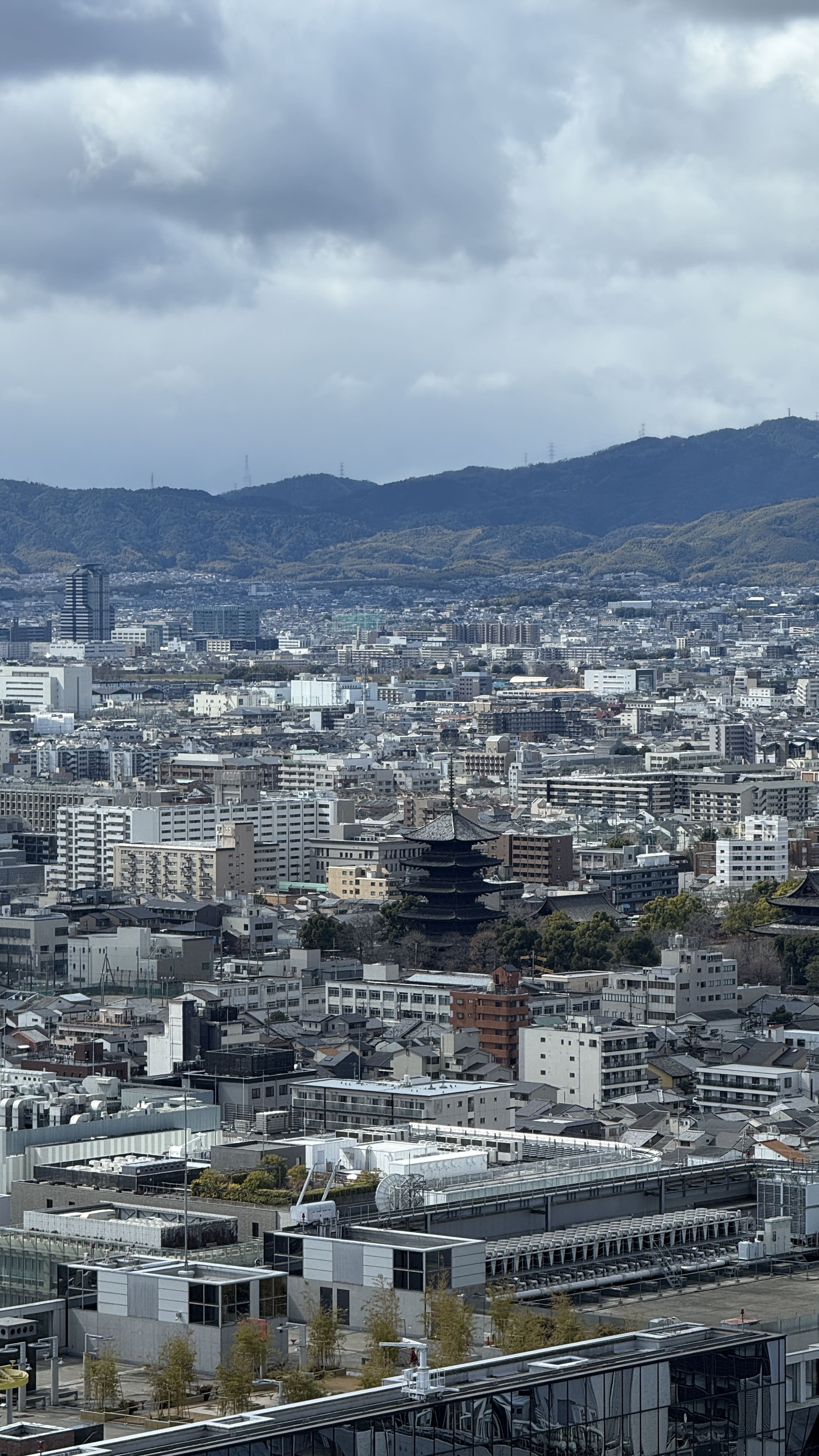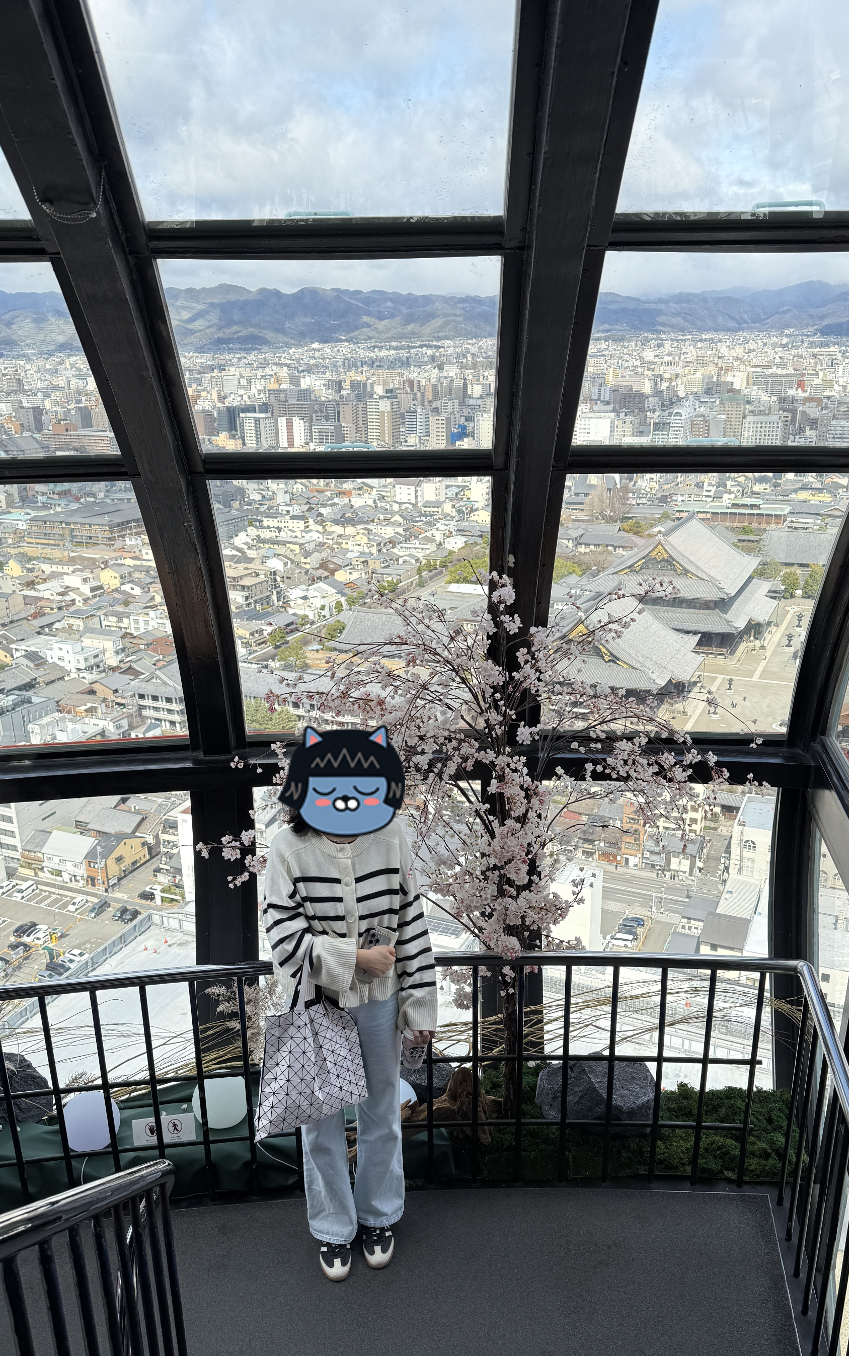 교토 타워는 높이 131m의 구조물로, 교토에서 가장 높은 전망대입니다. 전통적인 저층 건물이 많은 교토 시내에서 유일하게 스카이라인을 담당하는 구조물이죠. 저희는 한 오전 11시 30분쯤 입장했는데, 다행히 화창한 날씨 덕에 교토 시내의 기와지붕이 어우러진 풍경을 내려다보는 기분이 아주 특별했습니다. 특히 멀리 보이는 히에이잔 산, 교토역 주변의 역동적인 모습까지 한눈에 담기기 때문에, 처음 교토를 방문하신 분들께 꼭 추천드리고 싶습니다!