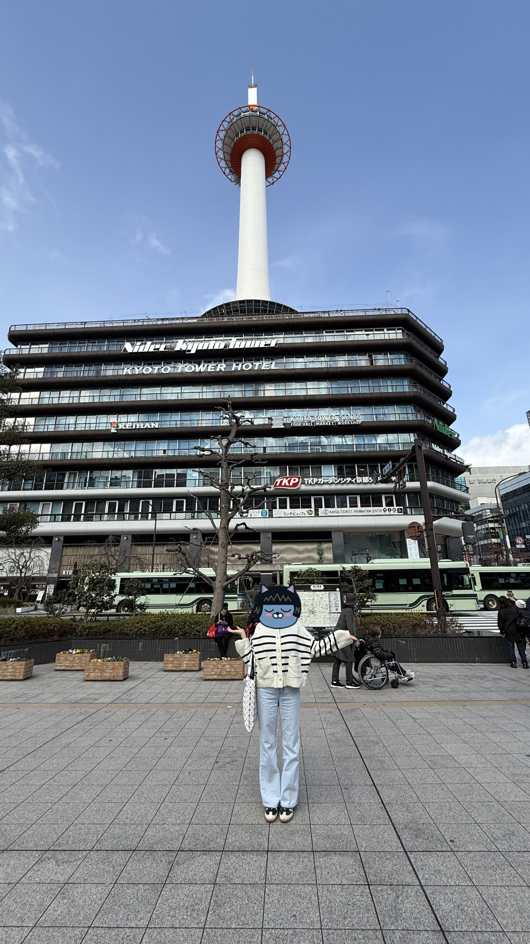 교토 여행 중 기차를 타고 교토역에 도착하면 가장 먼저 눈에 띄는 것이 바로 교토 타워(Kyoto Tower)입니다. 많은 분들이 사진만 찍고 지나치지만, 저는 이번 여행에서 교토 타워 전망대는 물론, 그 아래에 위치한 쇼핑몰 교토 타워 산도(SANDO)와 교토 타워몰까지 여유롭게 둘러보는 시간을 가졌습니다. 짧지만 알찬 코스로 구성된 이 공간에서, 쇼핑도 하고 맛있는 식사와 디저트까지 즐길 수 있었습니다. 저희는 마지막날 오사카공항으로 바로 짐을 보내는 서비스를 신청해서 마지막날까지 알차게 놀고 떠났습니다!