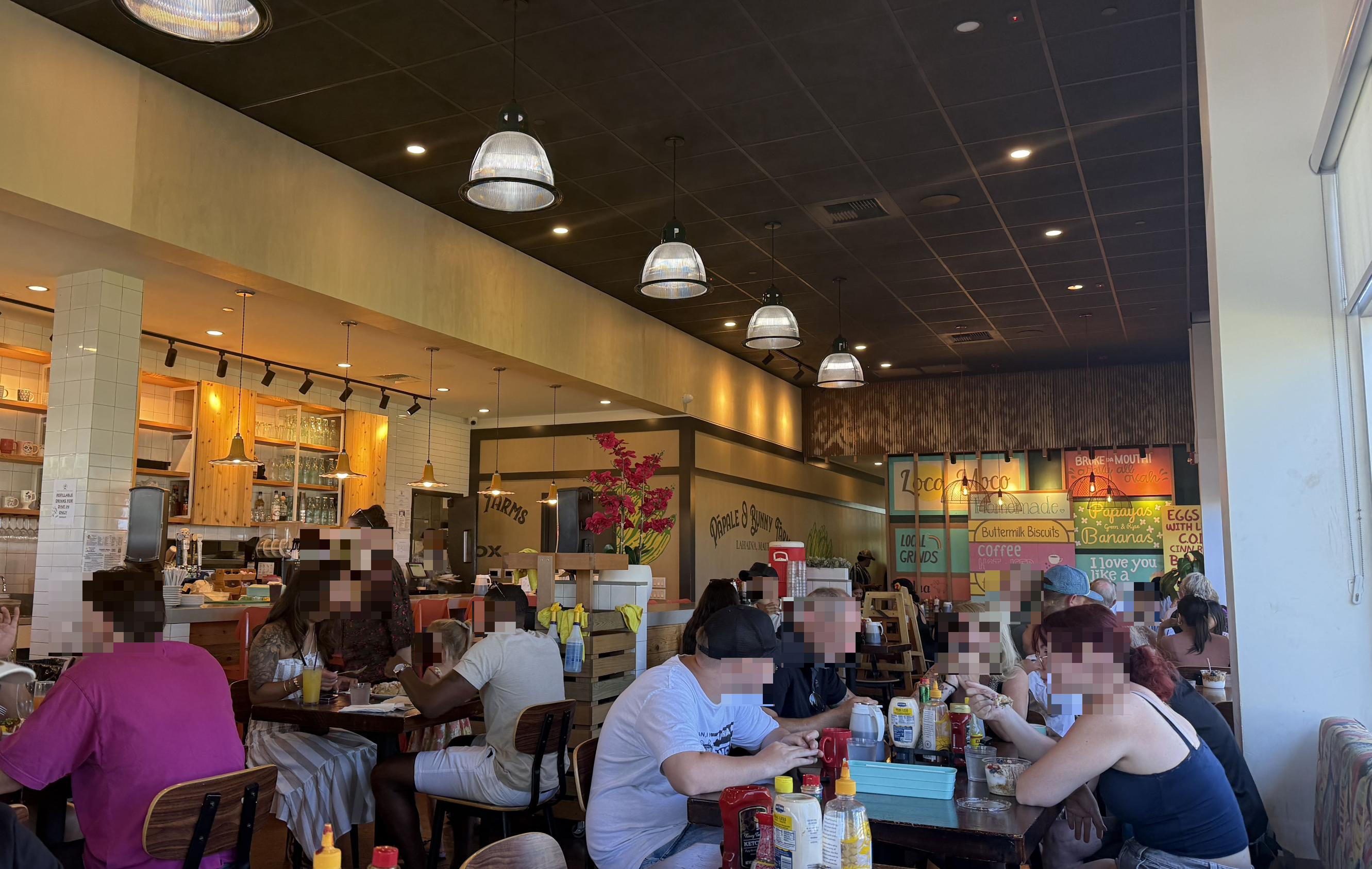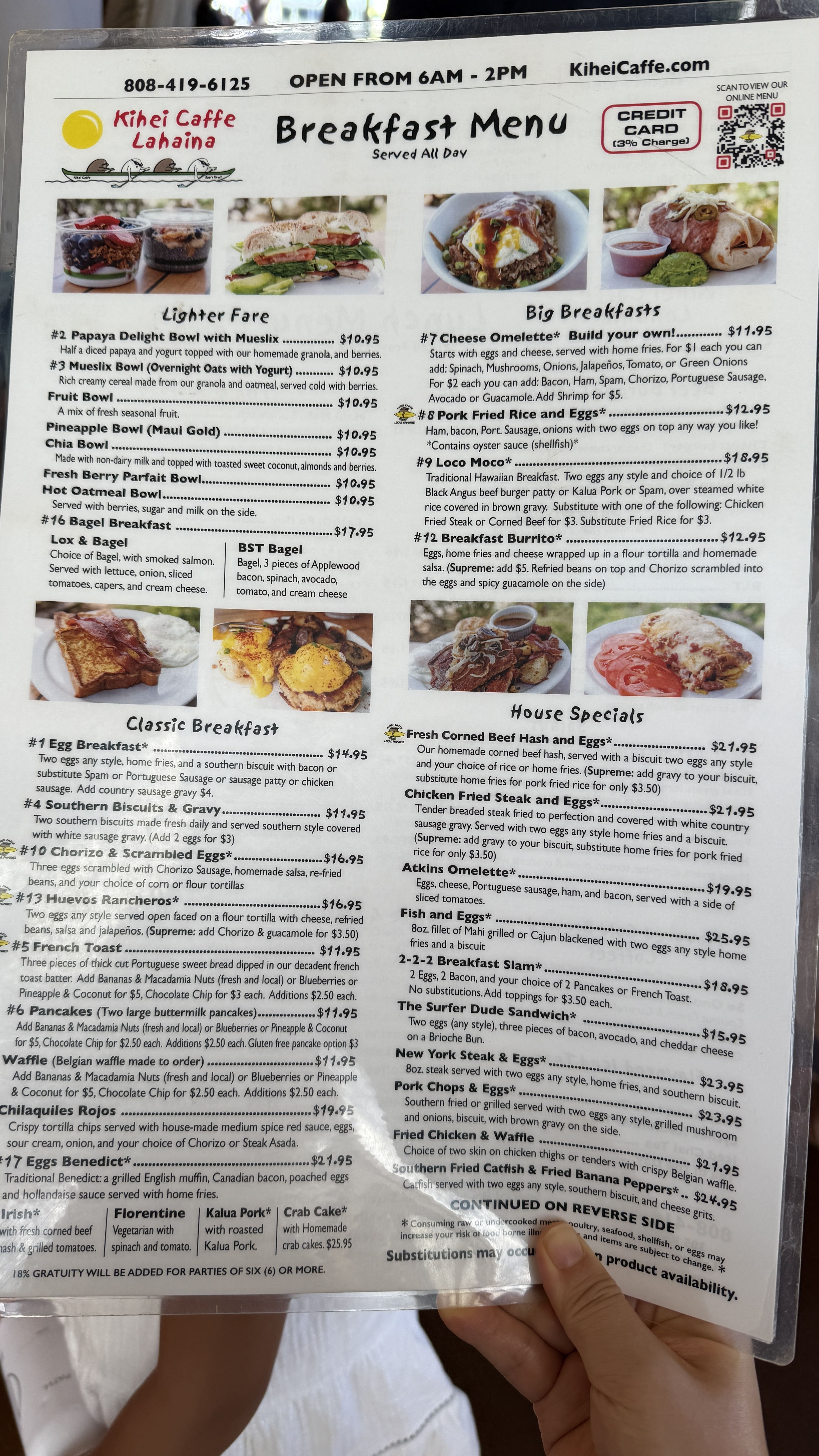키헤이 카페 라하이나(Kihei Caffe Lahaina)도 우연히 호텔과 가까워서 간 곳입니다. 화려한 관광객용 레스토랑과는 달리, 조용하고 소박한 분위기 속에서 진짜 마우이의 아침을 느낄 수 있는 곳이었어요. (호텔과 리조트 근처라 관광객 진짜 많음ㅎㅎ)