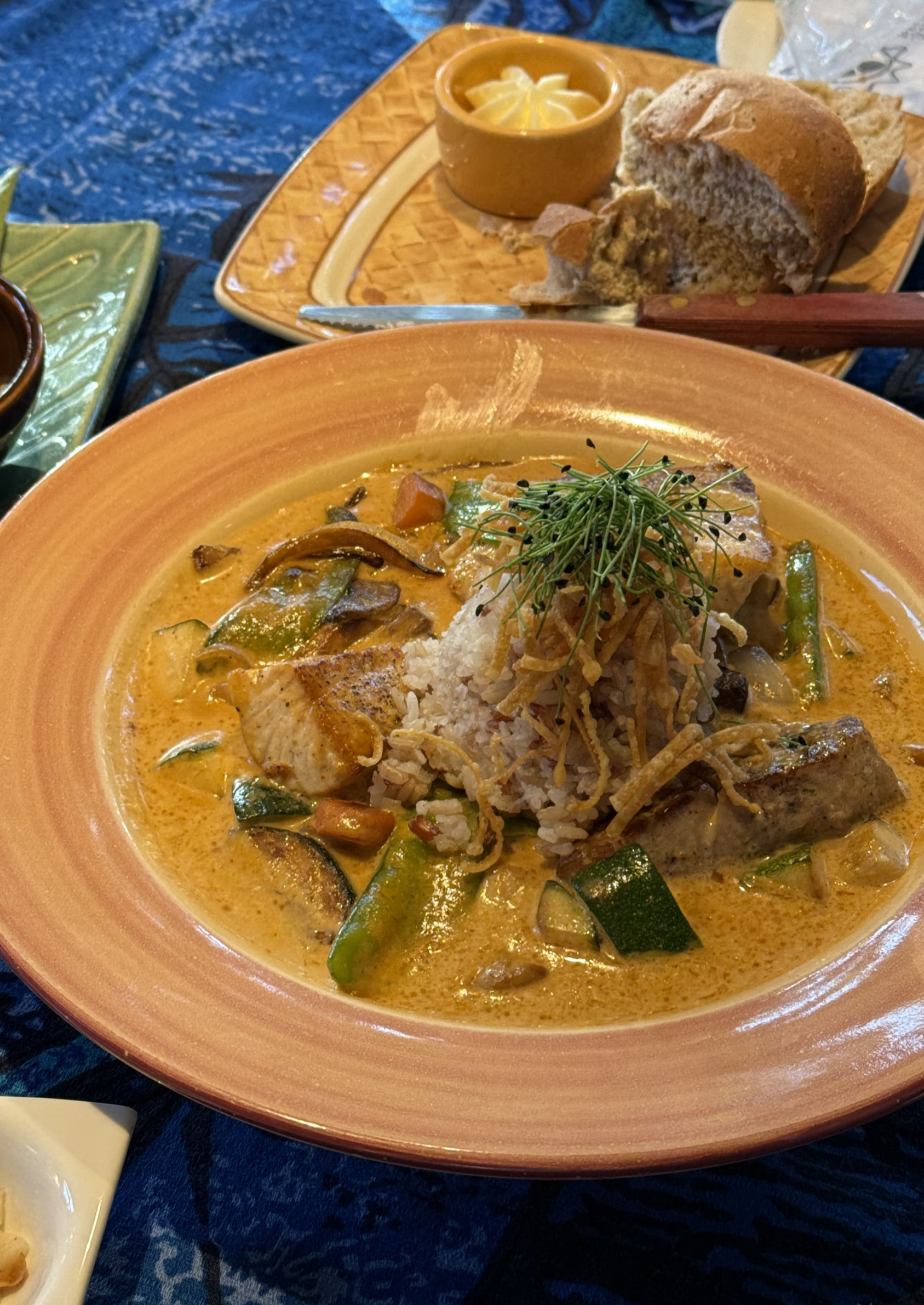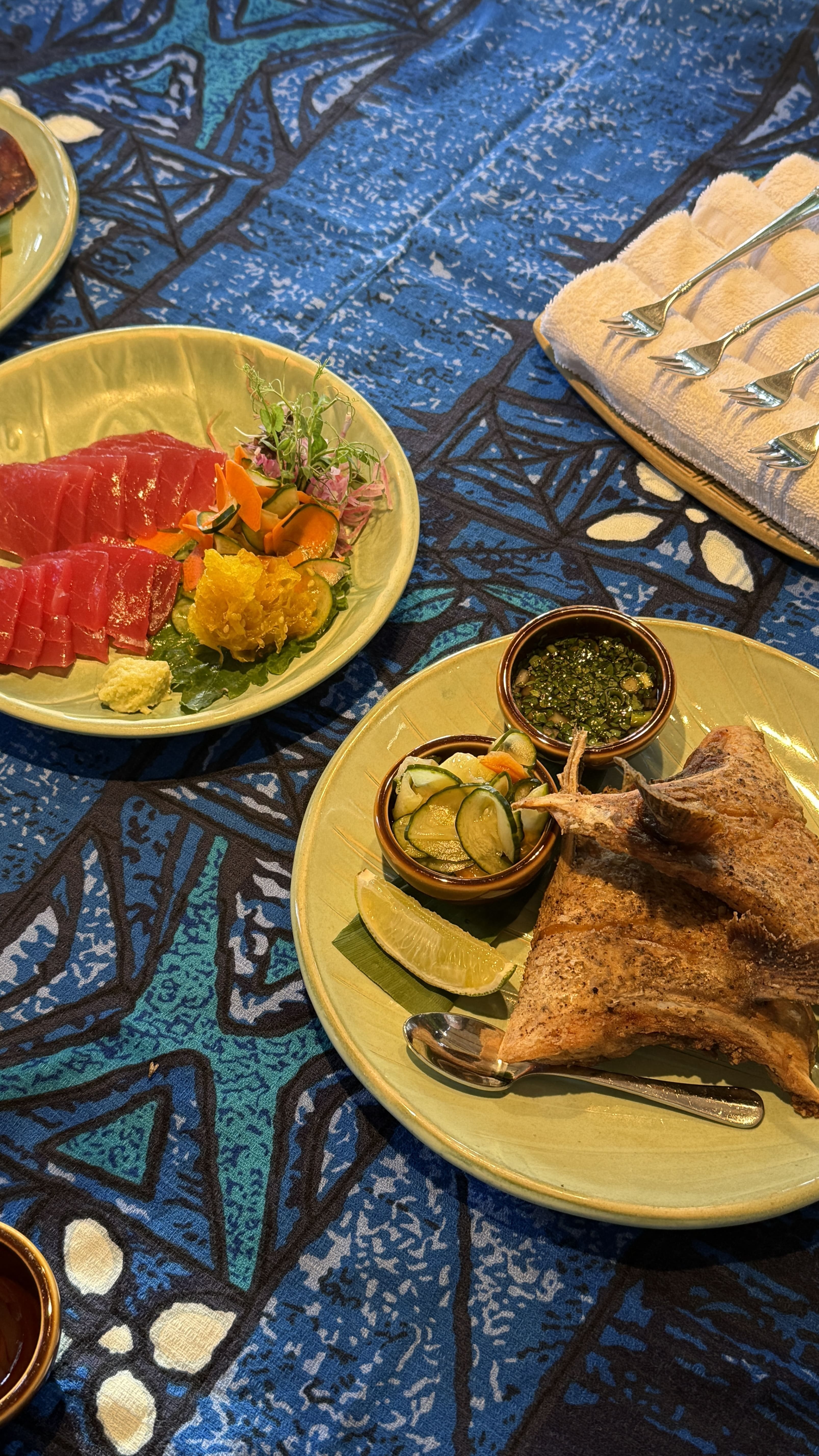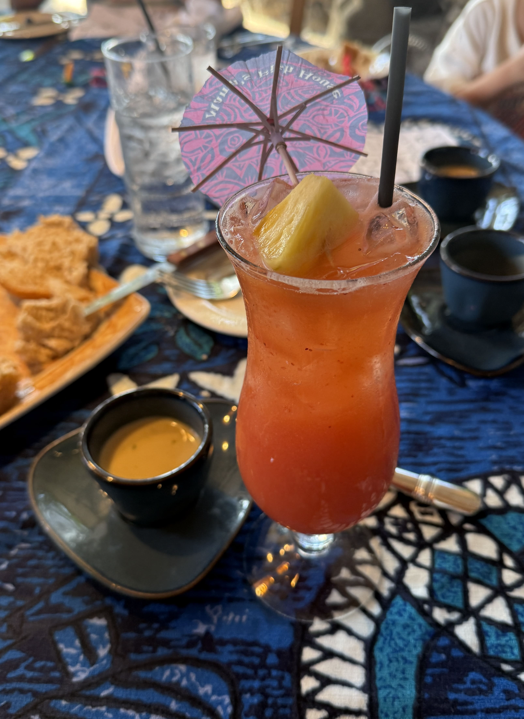 마마스 피시 하우스의 가장 큰 특징은 매일 아침 어부들이 직접 잡아 올린 신선한 생선으로 요리를 한다는 점이에요. 메뉴판에 오늘의 생선과 잡은 어부의 이름이 함께 적혀 있어 더욱 특별하게 느껴졌습니다. 저희는 싱싱한 참치회 카레, 그리고 바삭하게 튀겨낸 생선 요리를 주문했어요. 참치회는 입에서 살살 녹았고, 카레는 부드러운 생선살과 향긋한 소스가 어우러져 정말 맛있었죠. 자스민 라이스랑 같이 시켰는데, 향긋하고 맛있었습니다. 예쁜 칵테일도 함께 시켜 즐기니 더할 나위 없이 완벽한 저녁 식사였습니다.