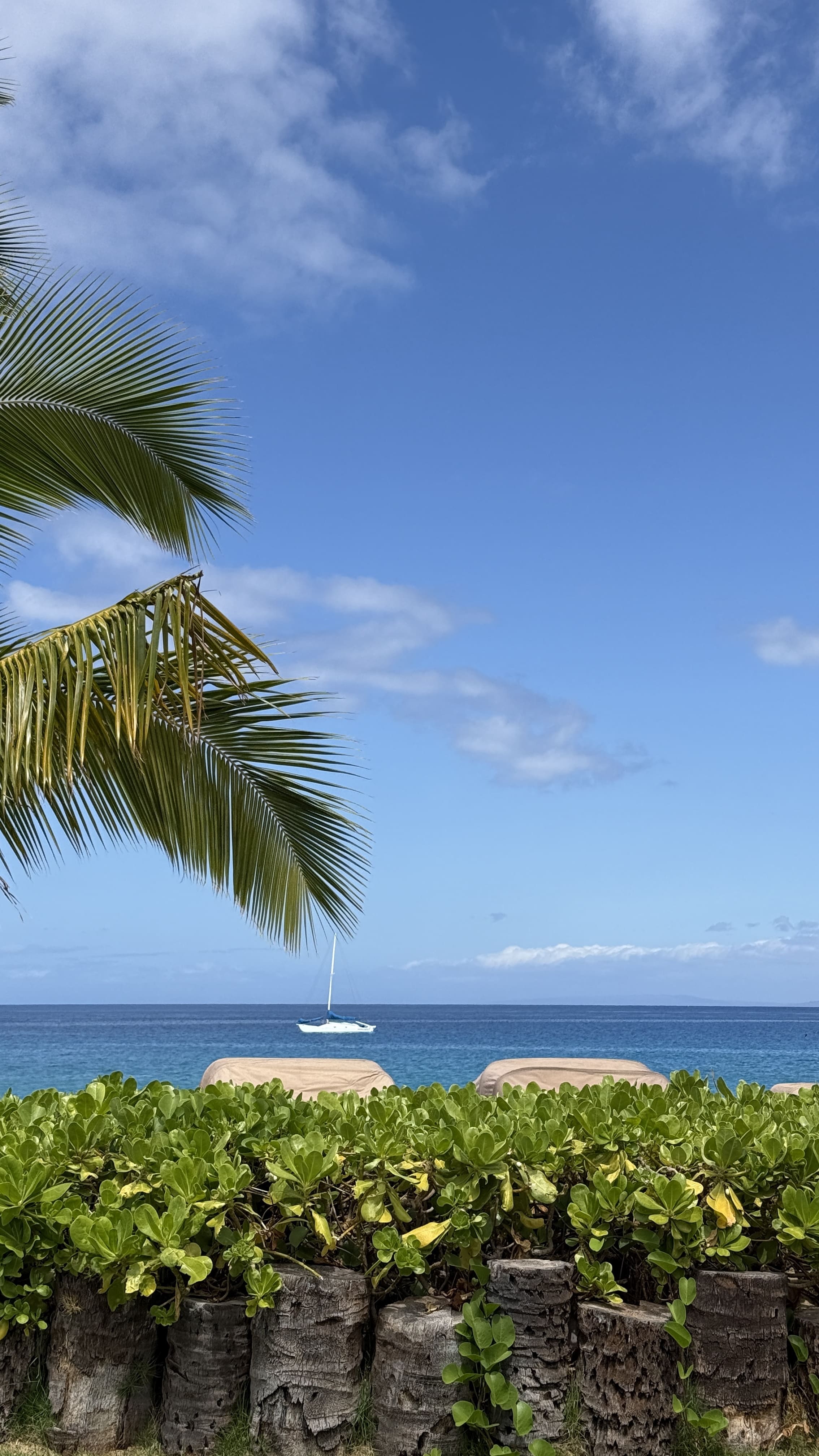 이곳은 정말 그림 같은 풍경을 자랑합니다. 와이키키보다 훨씬 한적하고 여유로운 카아나팔리 해변을 바로 앞에서 바라보며 식사를 할 수 있었어요. 푸른 바다와 파란 하늘, 시원하게 불어오는 바람, 그리고 야자수 그늘 아래서 커피를 마시니 '이게 바로 하와이 여행이구나'라는 생각이 절로 들었죠. 주차는 Maui Kaanabali Villas 호텔에서 패스를 받으면 됩니다! (주차 무료)
