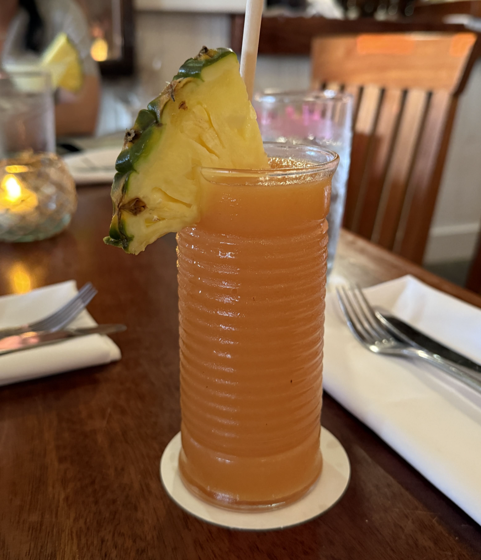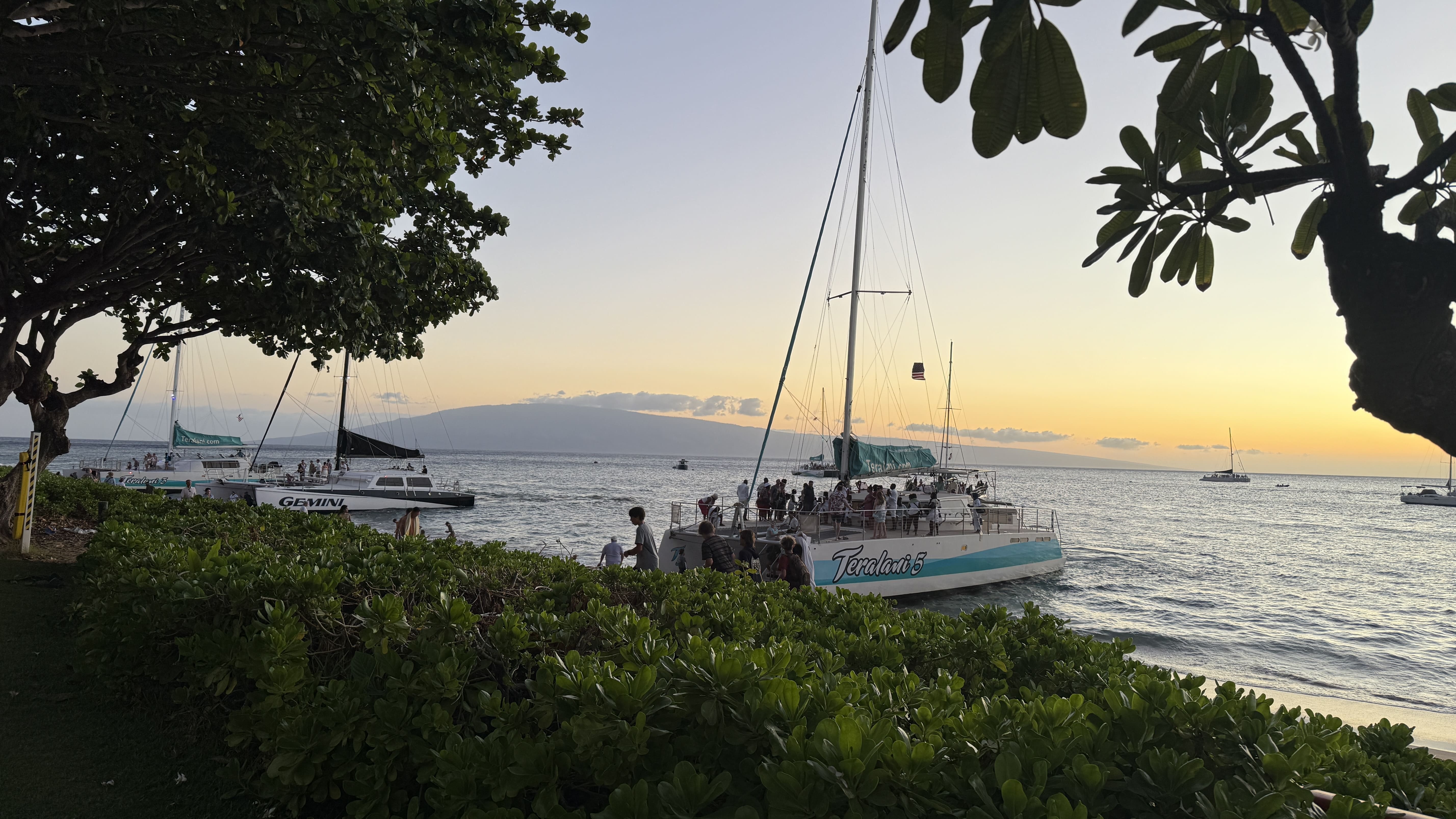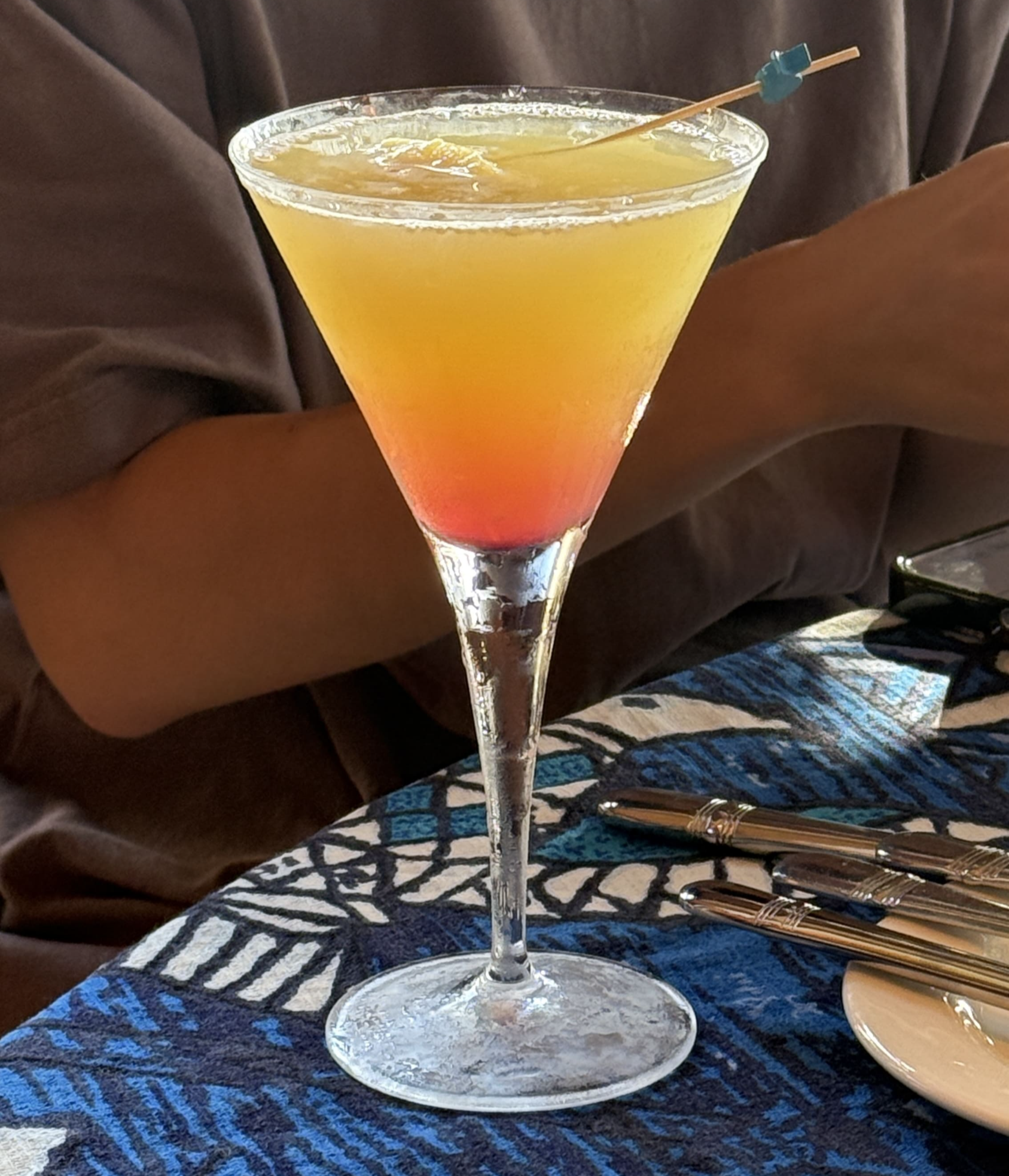 레스토랑은 카아나팔리 해변 바로 앞에 자리하고 있어, 식사 내내 붉게 물들어가는 마우이의 하늘을 마음껏 감상할 수 있었습니다. 저희 테이블에서는 저 멀리 바다에 떠 있는 배들과 함께 멋진 노을을 배경으로 인생 사진도 많이 남겼어요. 신선한 파인애플이 꽂힌 상큼한 칵테일 한 잔과 함께 노을을 바라보니 정말 낭만적이었습니다.