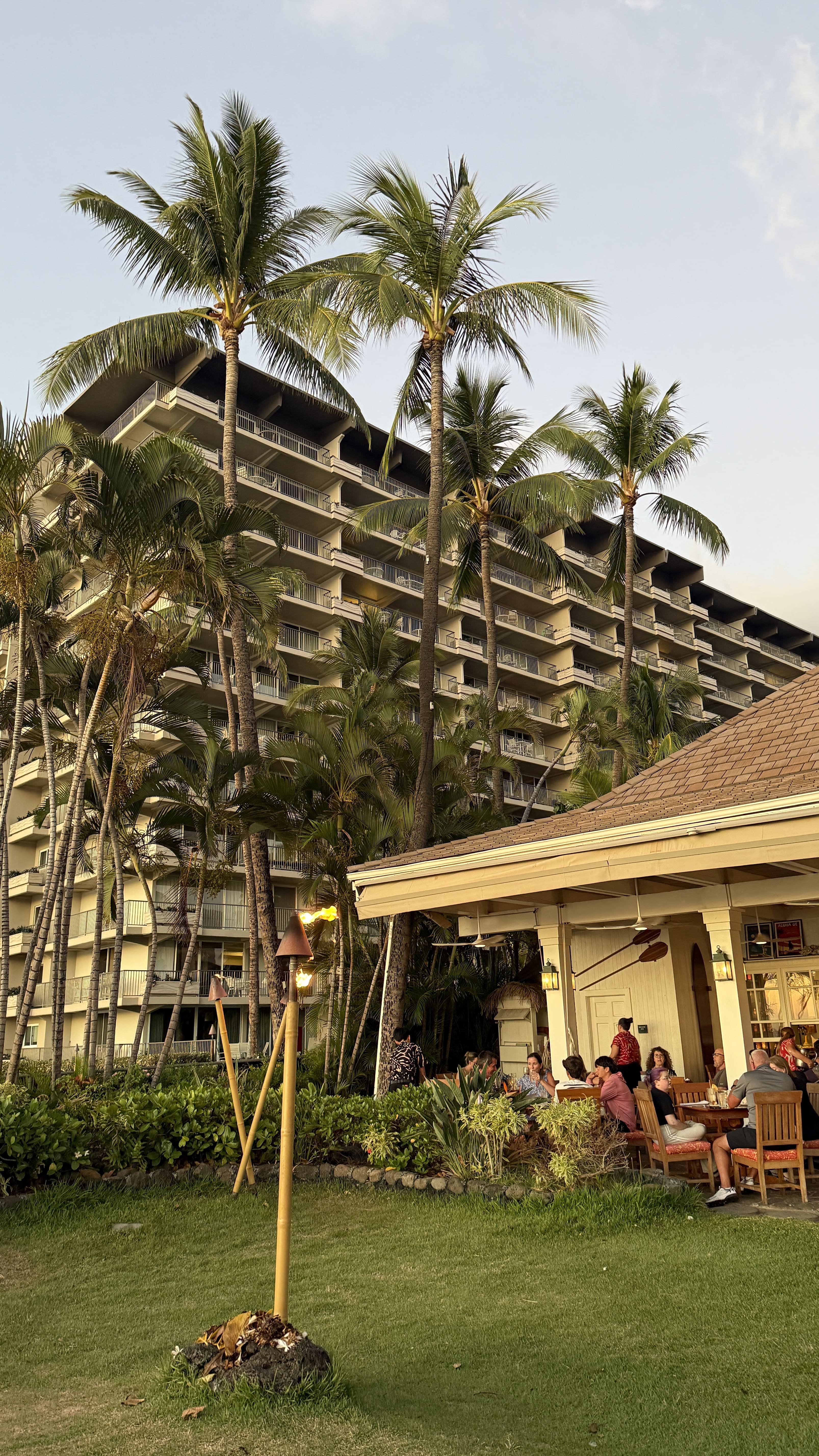마우이 여행의 특별한 저녁을 위해 방문한 곳은 바로 훌라 그릴(Hula Grill)입니다. 이곳은 아름다운 해변과 완벽한 노을 풍경으로 유명한 곳이에요. 특히 노을이 지는 시간에 맞춰 예약(오후 6:30 예약)을 하고 갔는데, 관광객으로 가득해서 놀랐습니다. 조금 더 이른 시간으로 예약 추천드립니다.