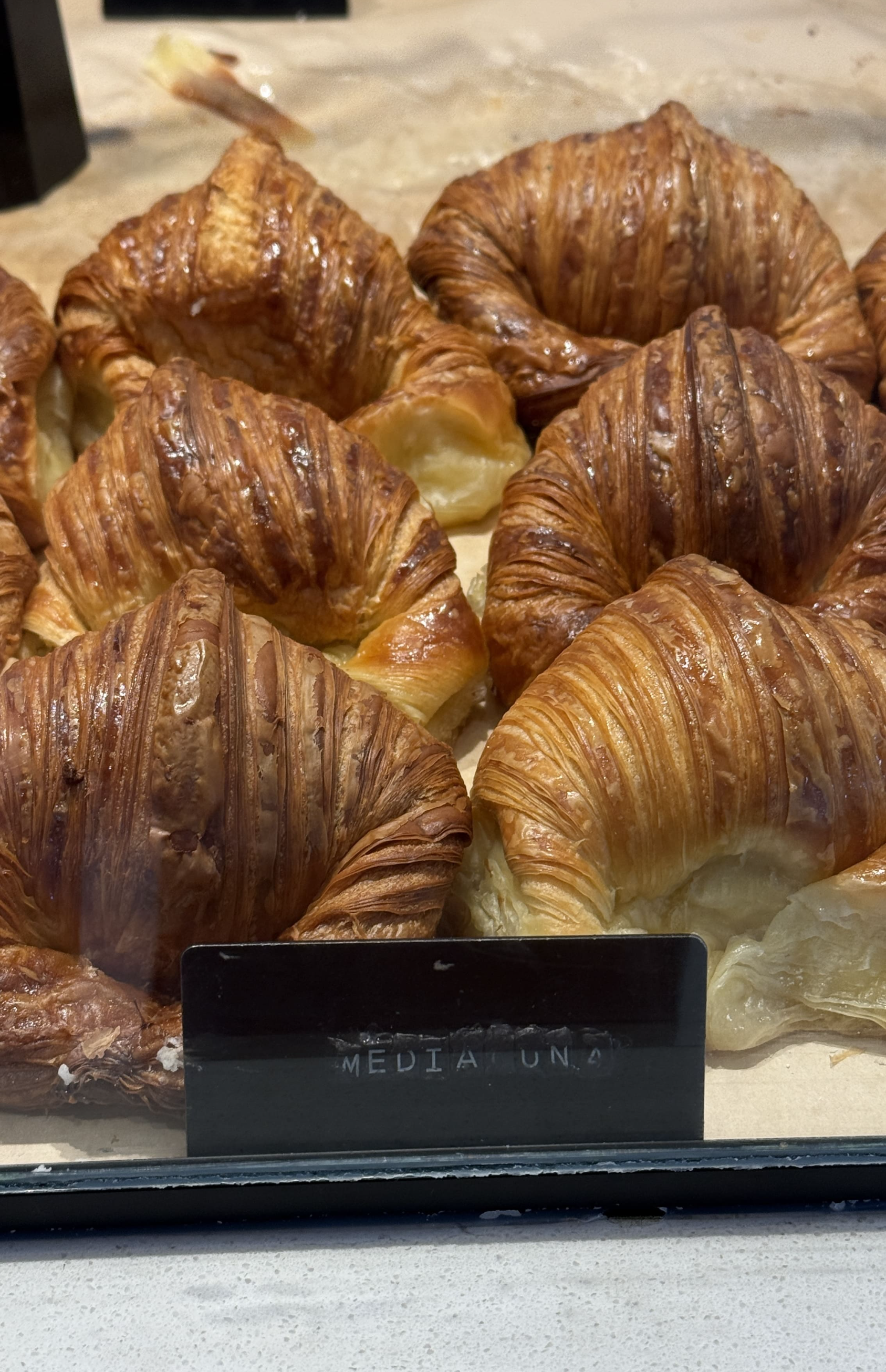 가장 먼저 주문한 건 시원한 아이스 라떼 & 아메리카노였어요. 가격은 캘리포니아랑 비슷한 느낌! 부드러운 맛이 좋았고, 특히 함께 시킨 메디아루나(Medialuna)가 정말 맛있었습니다. 주문할 때 추천해 주어서 먹었는데 맛있었습니다. 크루아상보다는 조금 달고, 겉은 바삭하면서 속은 촉촉하고 쫀득한 식감이 맛있었습니다.