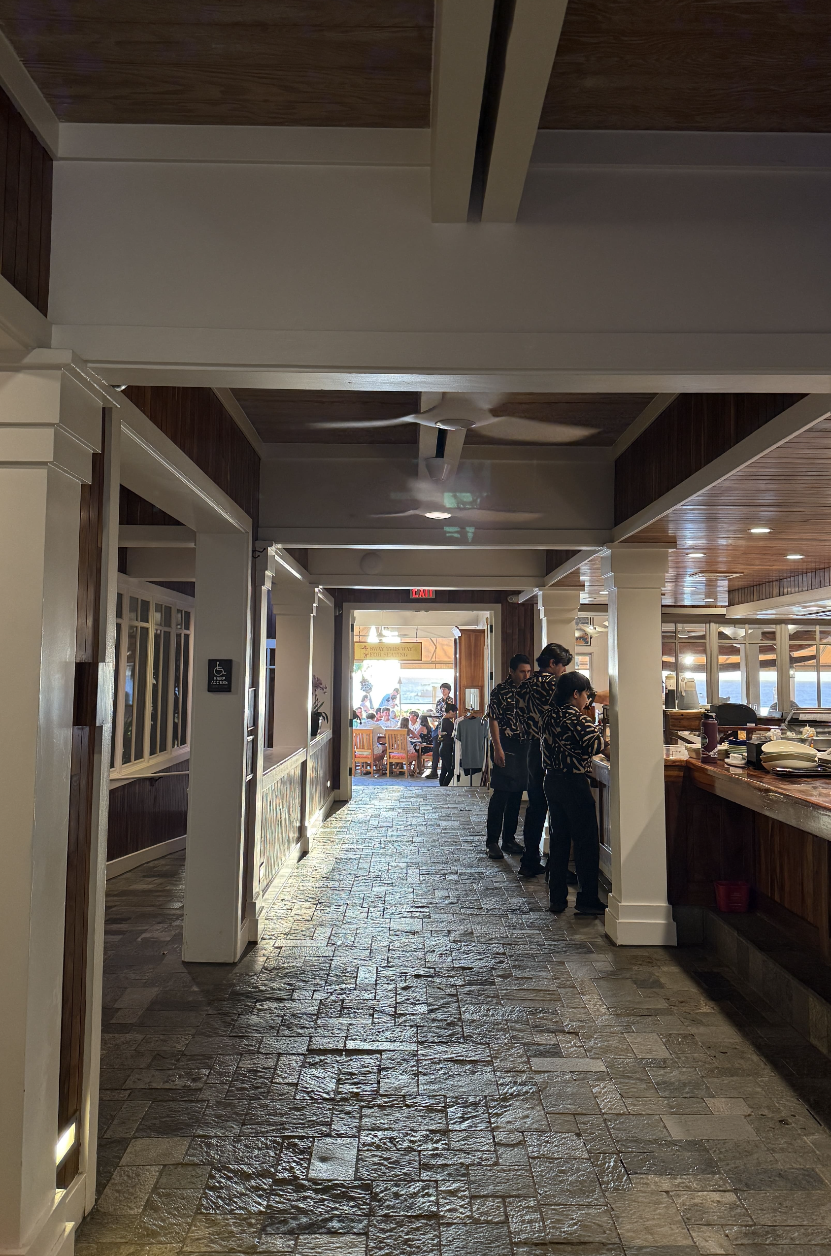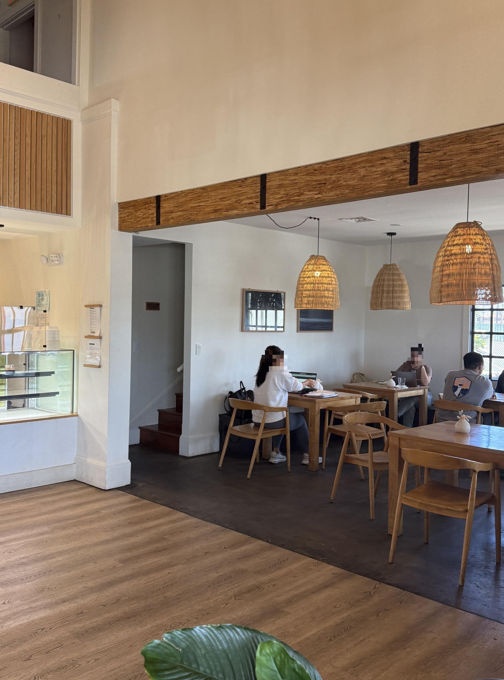 높은 천장과 라탄 조명, 감각적인 따듯한 분위기였습니다. 깔끔한 분위기 덕분에 비행의 피로가 싹 가시는 느낌이었죠. 하와이 느낌 물씬!