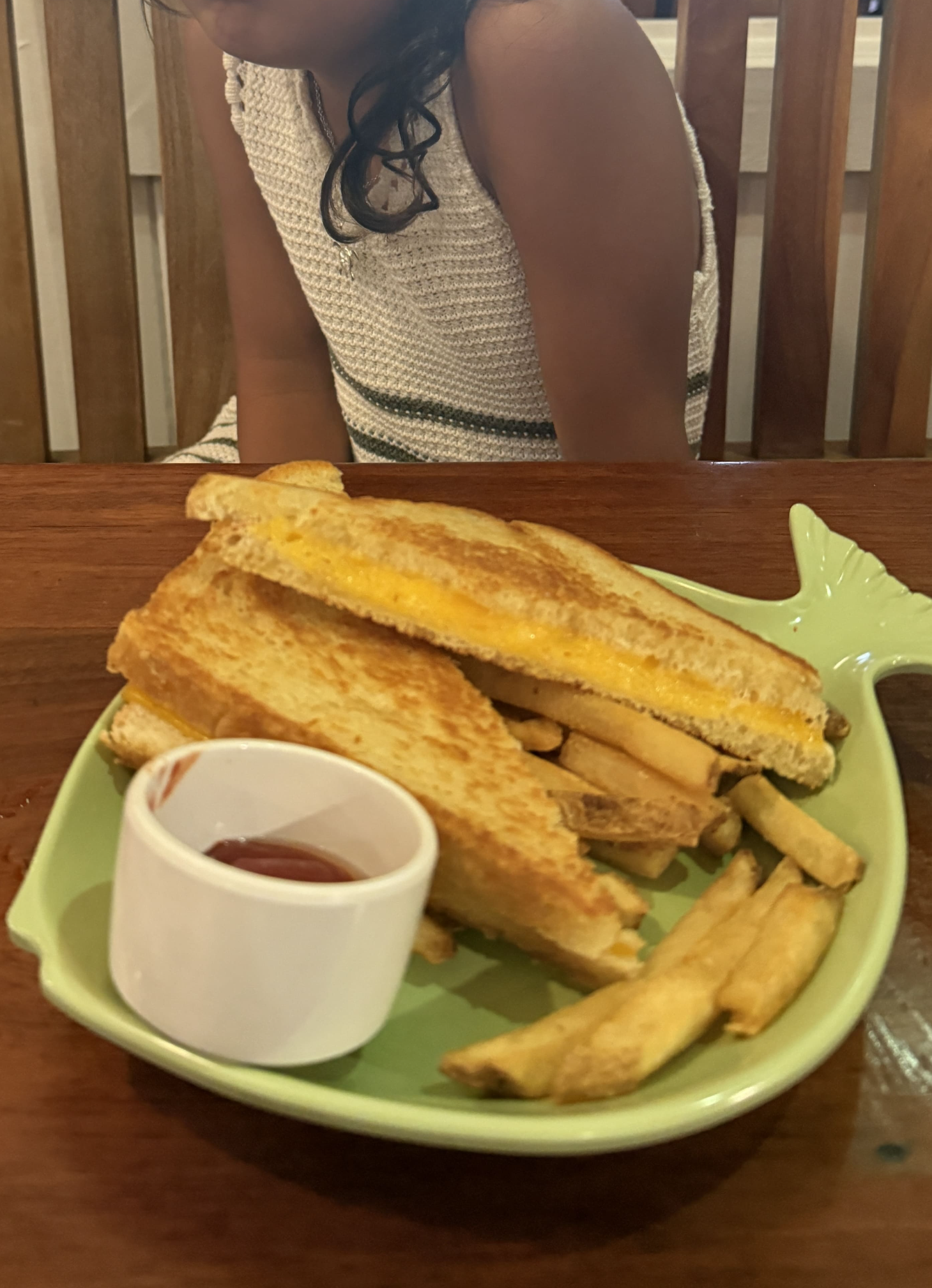 이곳은 신선한 해산물 요리가 유명하다고 해서, 저는 아히 튜나 요리와 생선 요리를 주문했습니다. 겉만 살짝 익혀 부드러운 아히 튜나와 고소한 생선 요리 모두 정말 맛있었어요. 아이들을 위한 메뉴도 따로 있었는데, 저희 아이들은 큼지막한 그릴드 치즈 샌드위치와 감자튀김을 맛있게 먹었어요.