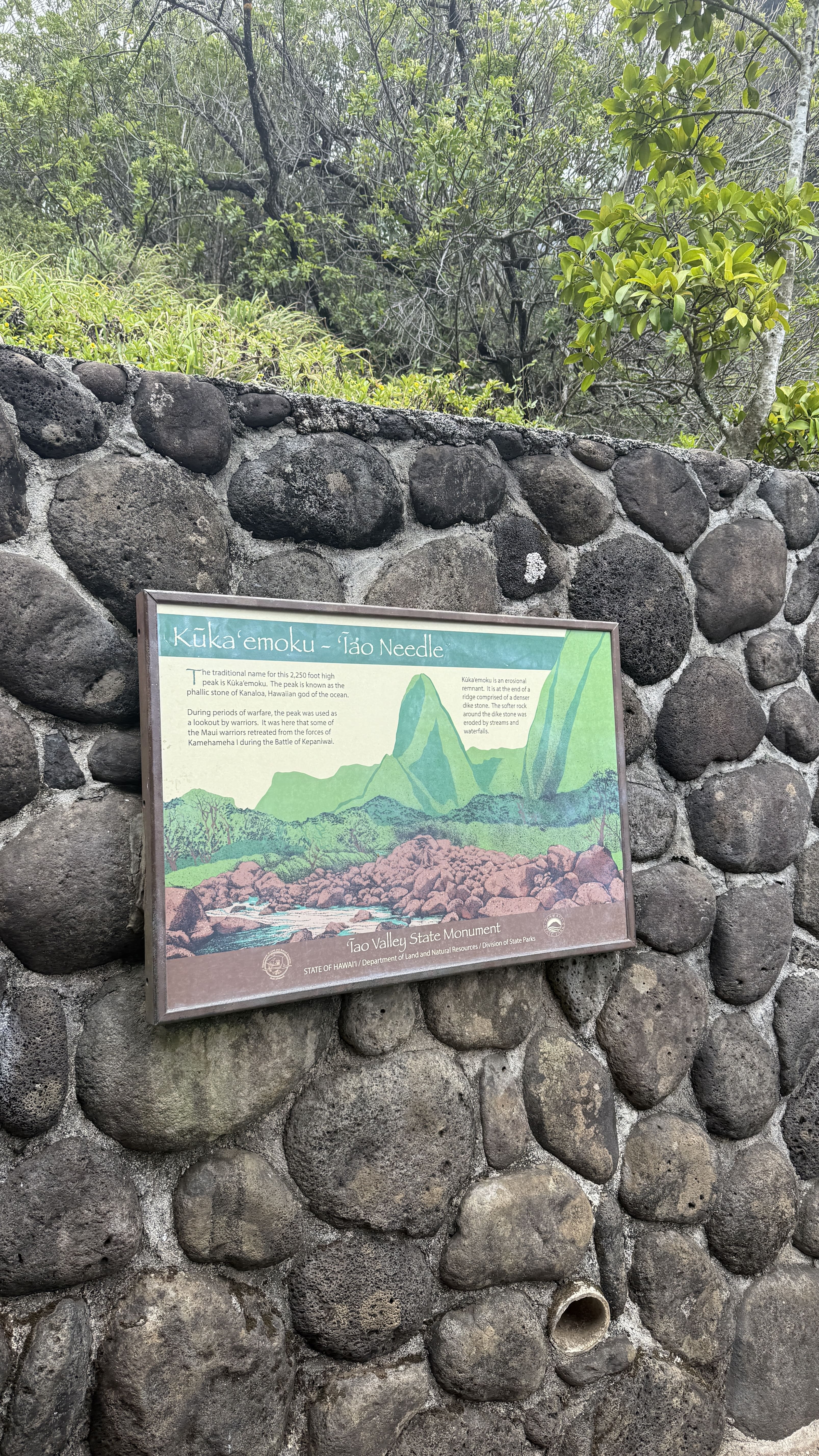 와일루쿠 서쪽에 자리한 이아오 밸리 주립공원은 울창한 열대우림 속에 펼쳐진 마우이의 대표 명소입니다. 공원의 상징이자 하이라이트는 바로 ʻĪao Needle (이아오 니들, Kūkaʻemoku)이라는 뾰족한 녹색 봉우리인데요. 이 바위 봉우리는 멀리서도 압도적인 존재감을 자랑합니다. 주차장에서 전망대까지는 잘 정비된 보행로가 이어져 있어 누구나 쉽게 감상할 수 있습니다. 또한 이 계곡은 단순히 아름다운 자연경관만이 아니라 하와이 역사에서 중요한 장소이기도 합니다.