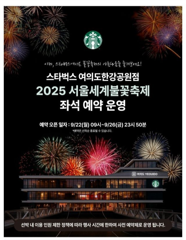서울세계불꽃축제 2025, 스타벅스 한강공원 좌석 예약