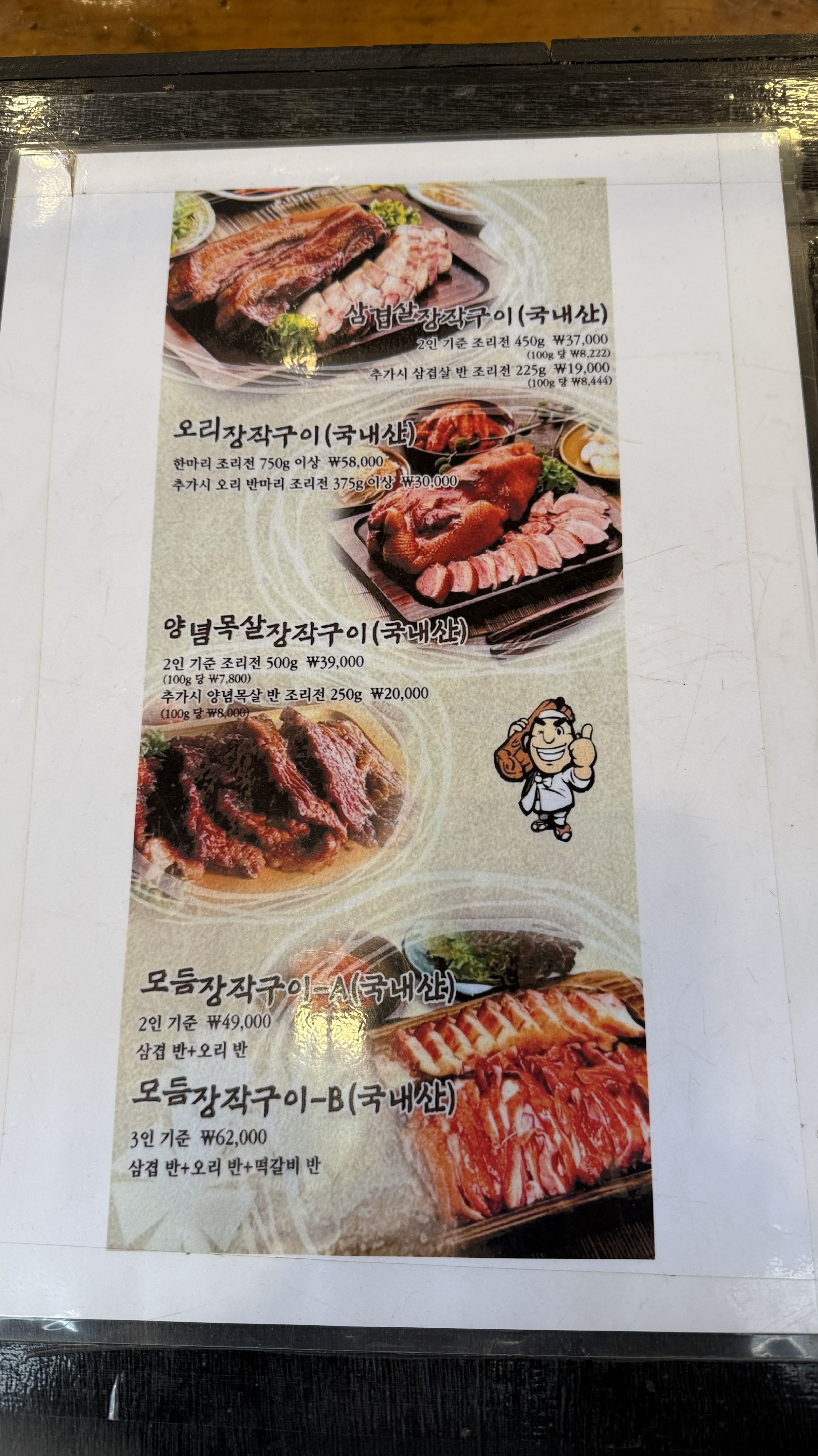 - 오리 장작구이 (750g 이상, 국내산) – 58,000원