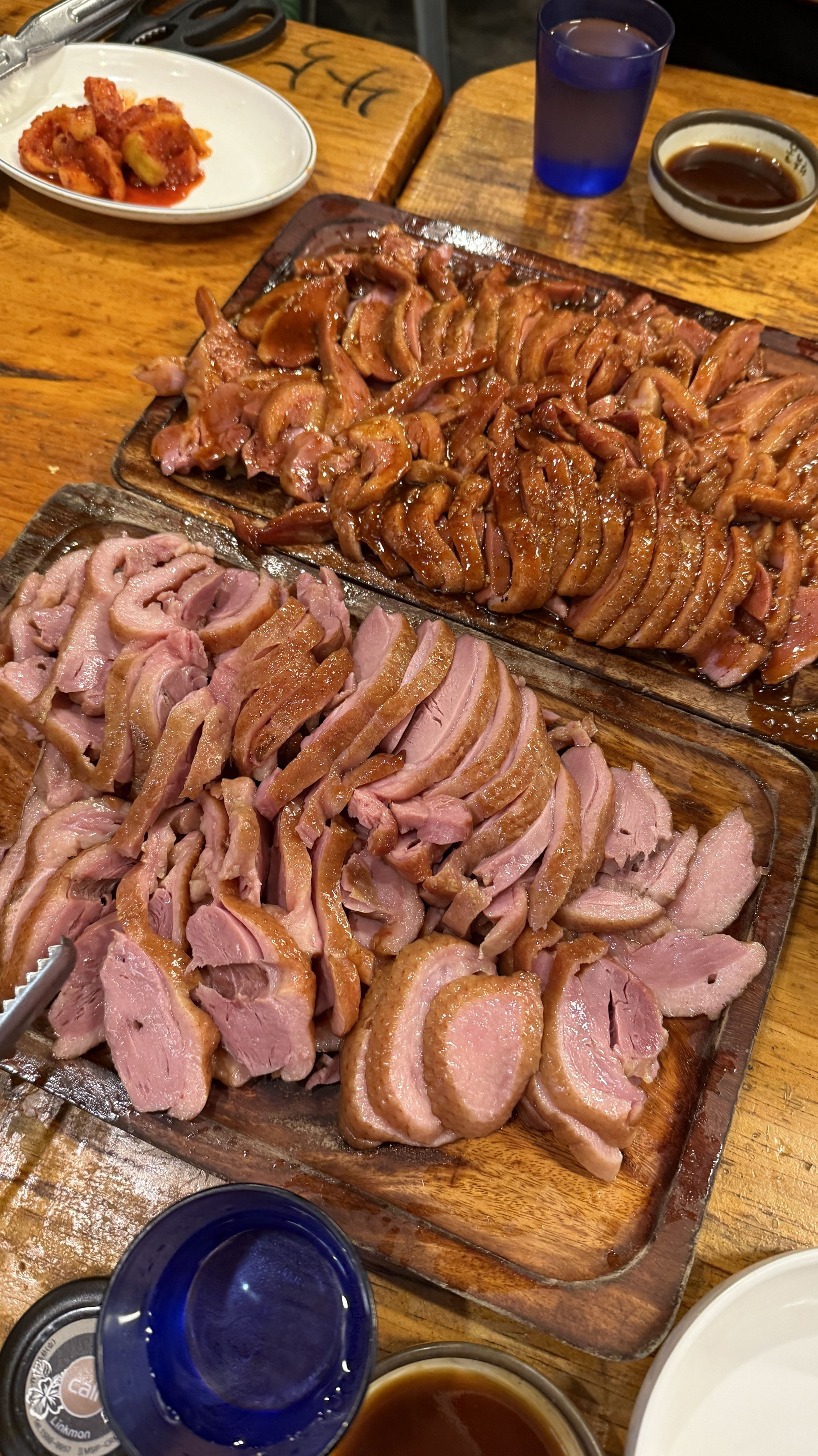 - 오리지널 오리 장작구이: 참나무 장작 향이 은은하게 배어 있어 풍미가 깊고, 껍질은 바삭하면서 속살은 촉촉했습니다. 기름기가 적당히 배어나와 담백하면서도 고소했어요.