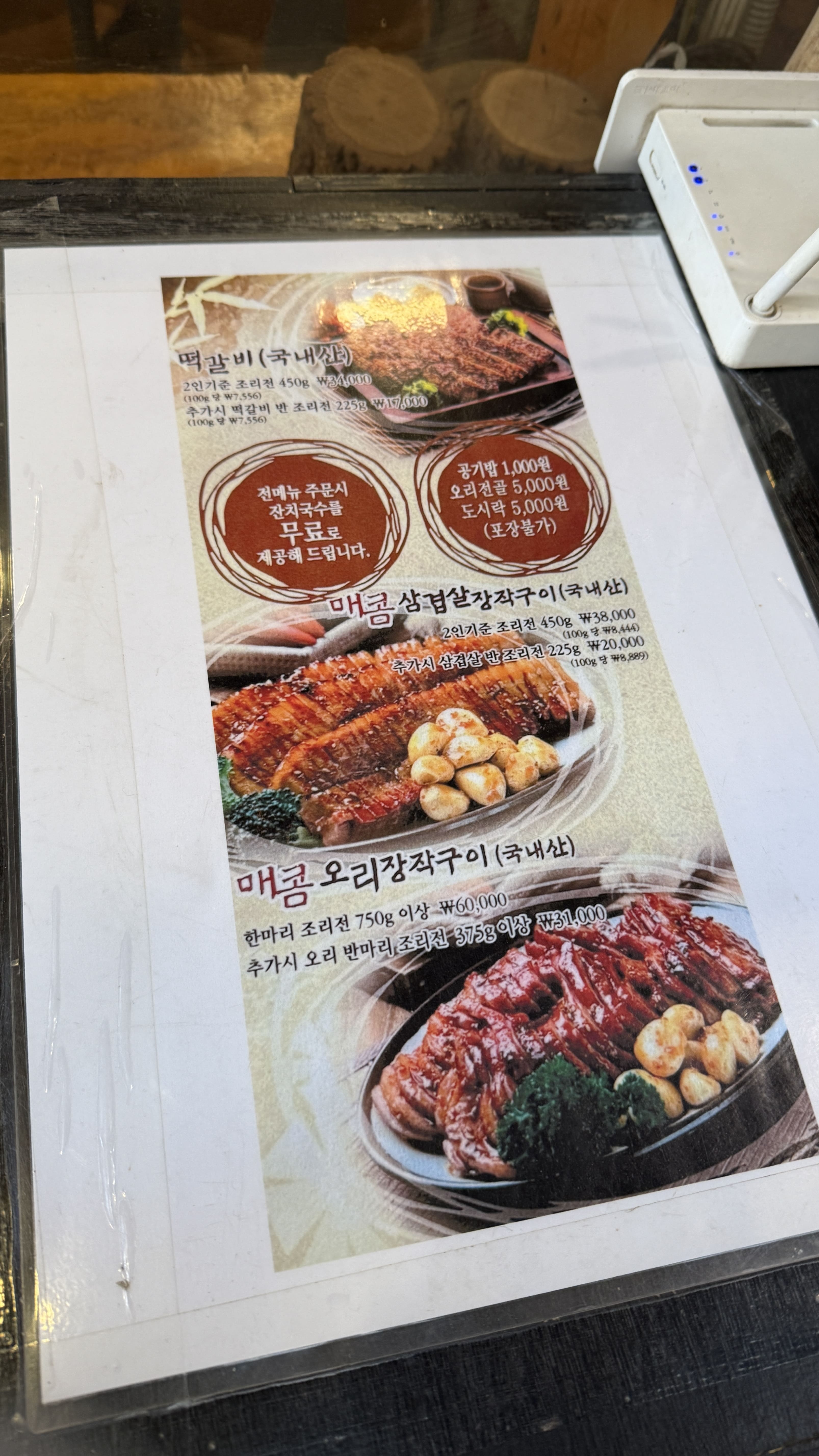 - 오리 장작구이 (750g 이상, 국내산) – 58,000원
