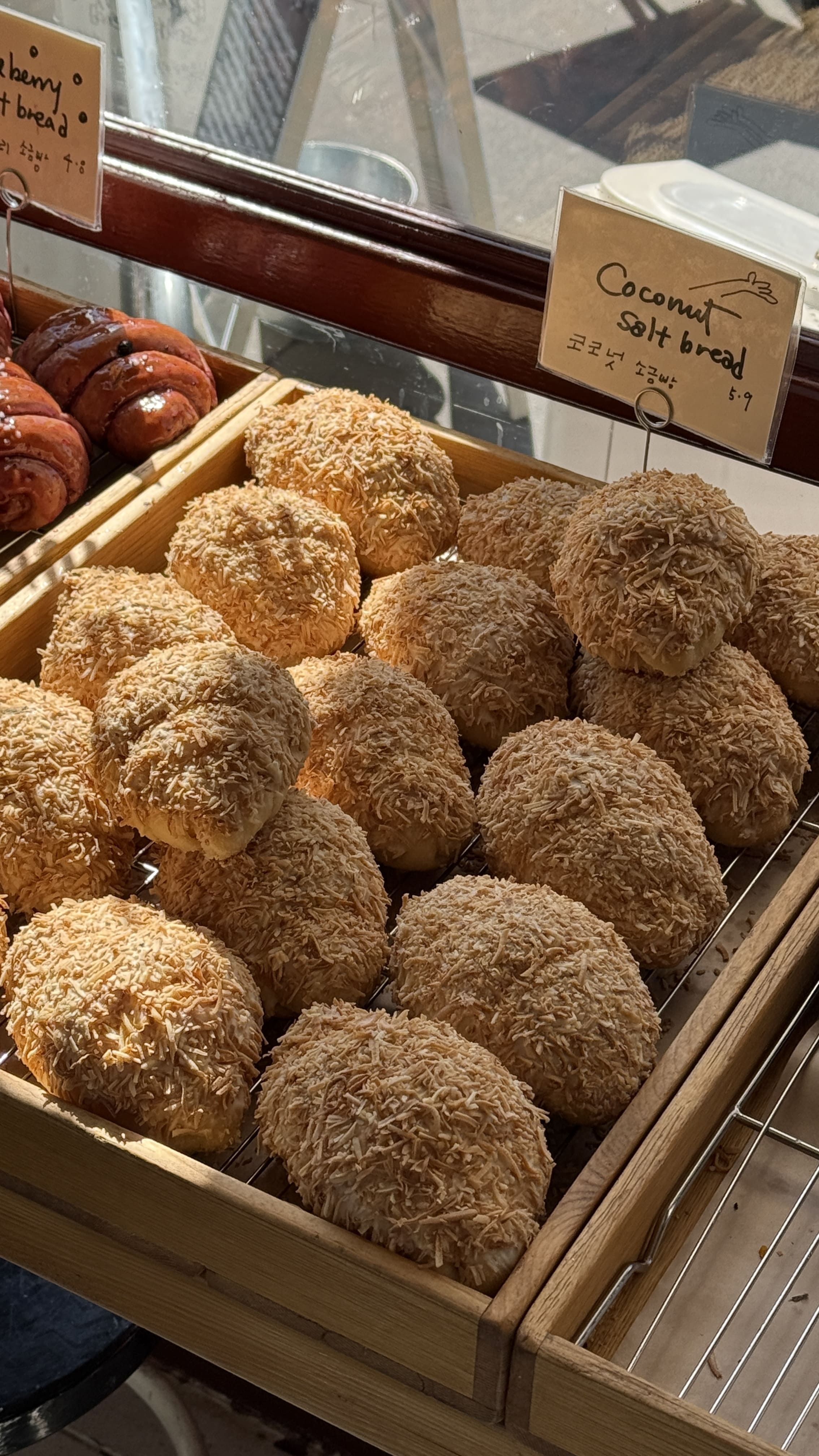 - 코코넛 소금빵: 바삭한 식감과 달콤한 코코넛 향이 매력적! 박명수 유튜브에서도 추천한 인기 메뉴.