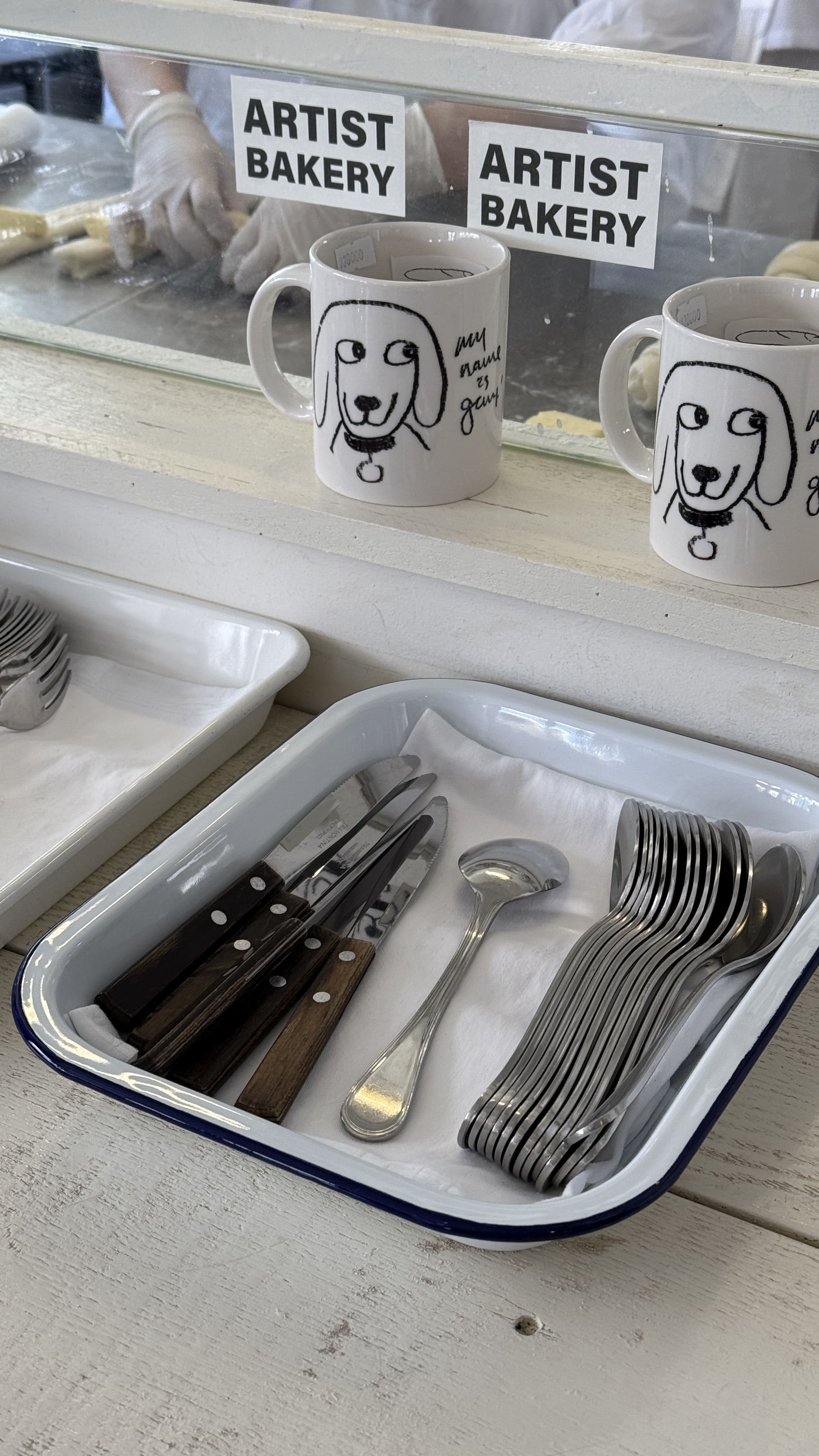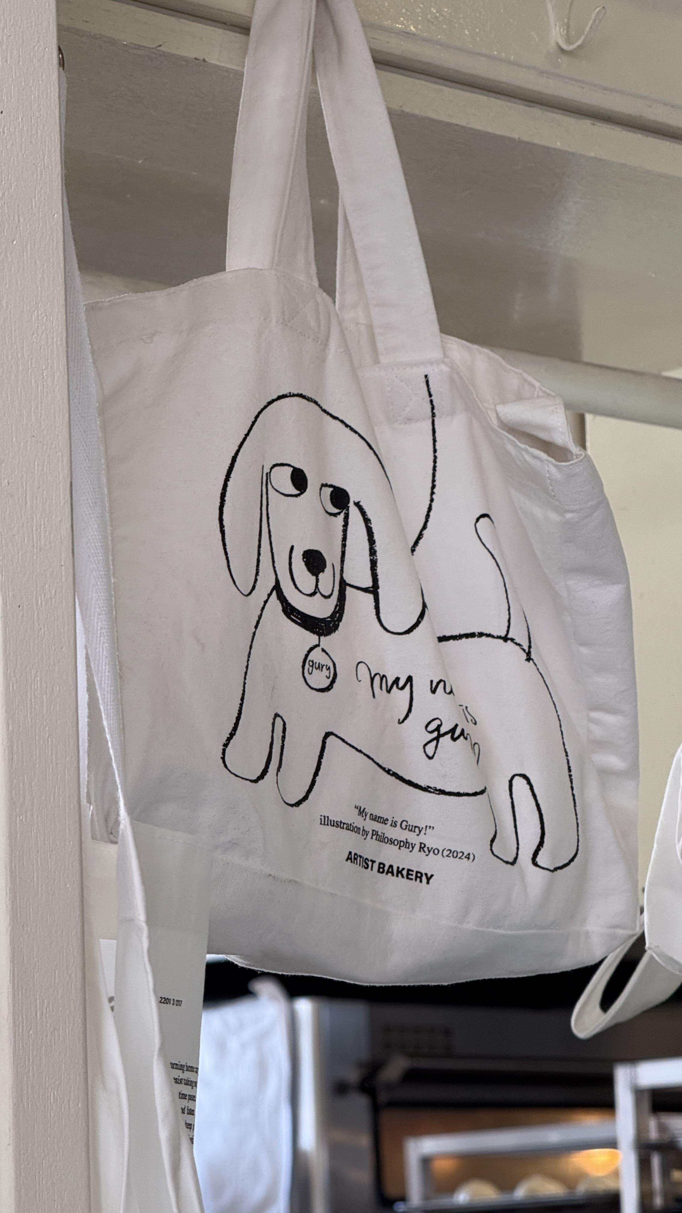 매장 한쪽에는 감성적인 일러스트가 담긴 머그컵, 텀블러, 에코백, 티셔츠 등 굿즈도 다양하게 판매되고 있었어요. 특히 강아지 캐릭터가 그려진 굿즈는 이미 몇 가지는 ‘Sold Out’ 되어 있을 정도로 인기였습니다. 감성 굿즈를 좋아하시는 분이라면 꼭 구경해 보세요!