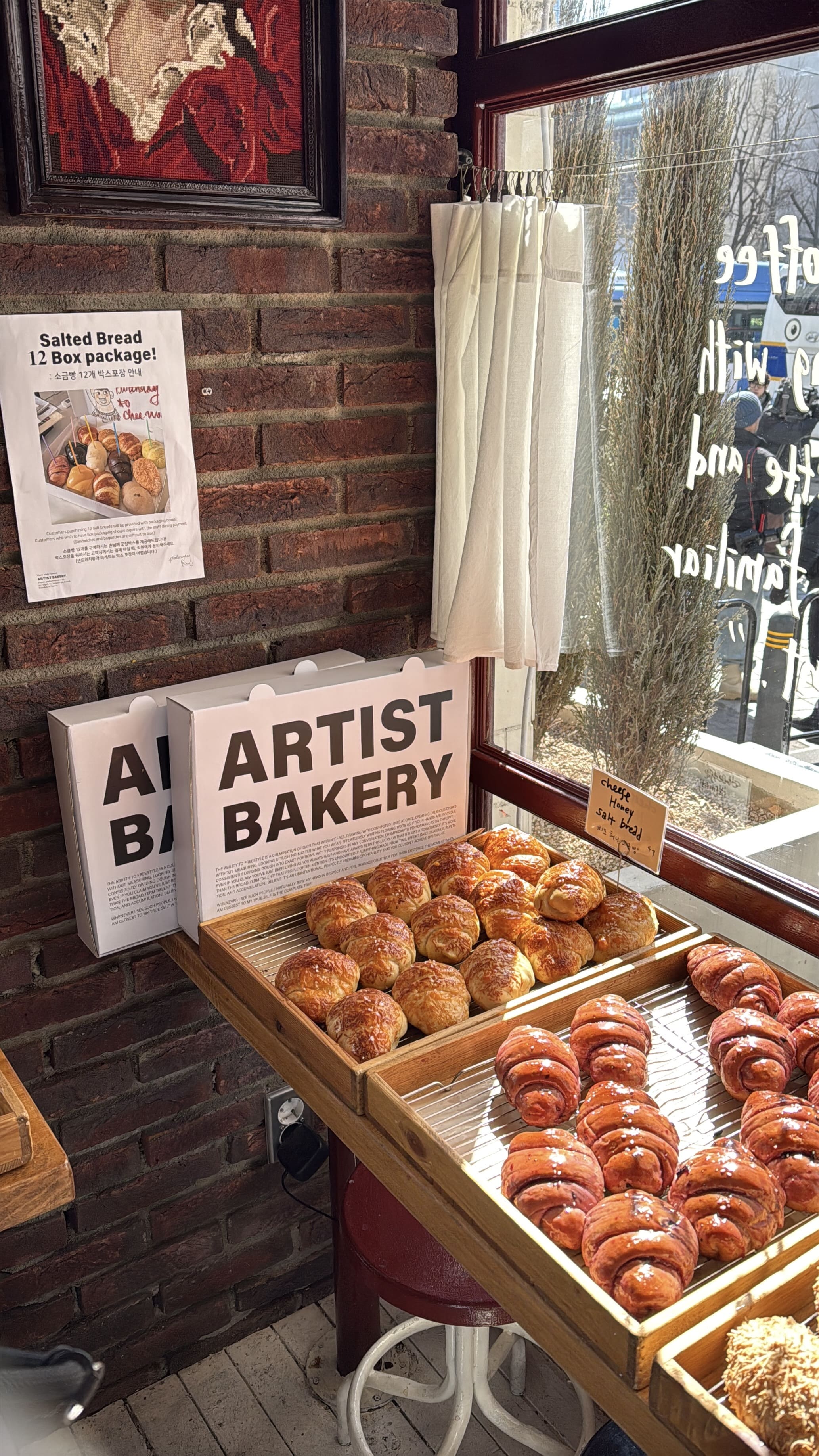 방금 나온 소금빵과 바게트 그리고 따뜻한 수프가 기다리는 아티스트 베이커리
