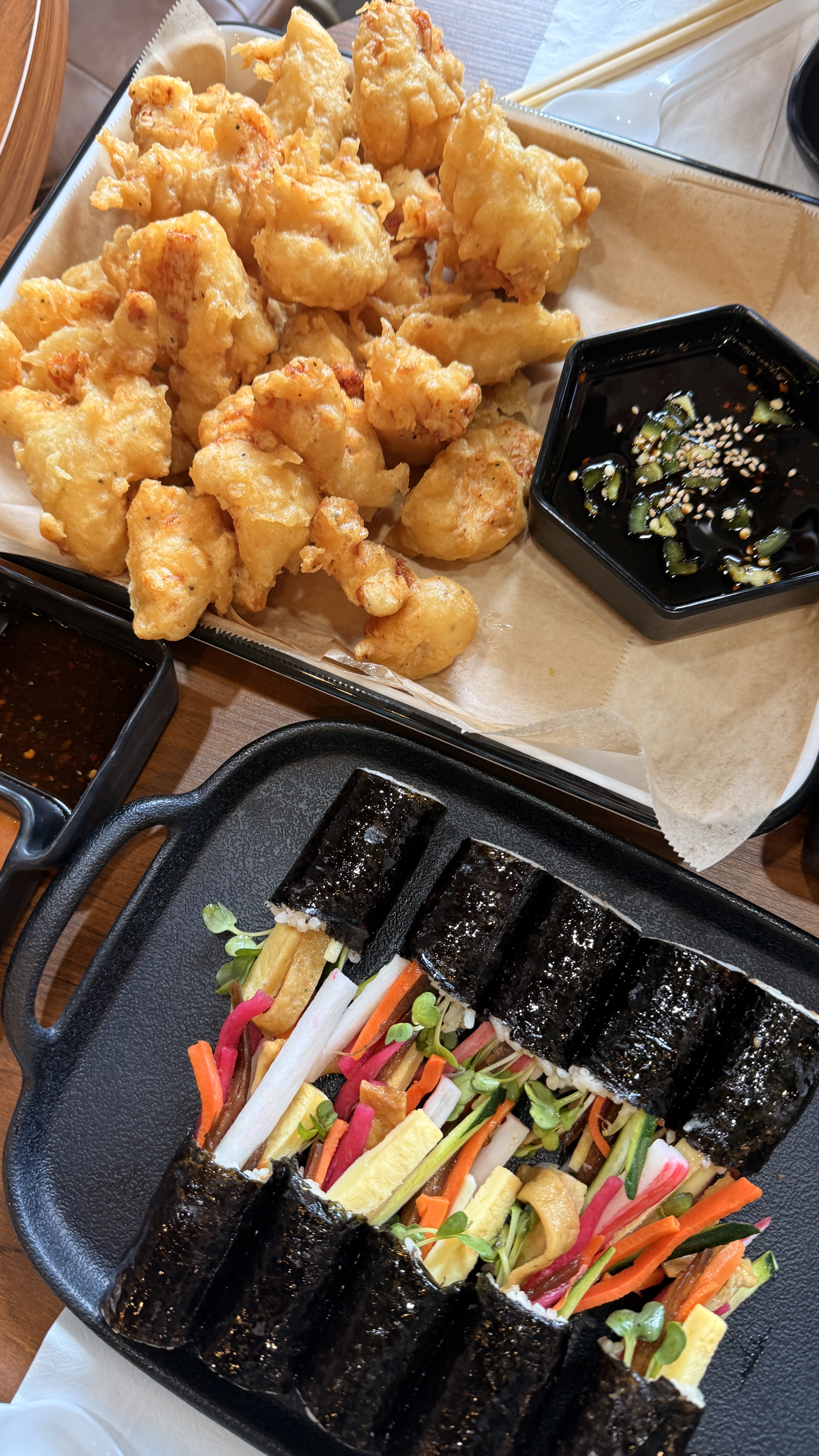 속이 꽉 찬 김밥은 신선한 채소와 특제 재료가 조화를 이루며, 일반 김밥보다 훨씬 고급스럽고 건강한 맛을 느낄 수 있습니다. 치킨은 바삭한 튀김옷과 촉촉한 속살의 조화가 완벽하며, 간장·스위트갈릭·허니 등 다양한 소스 선택이 가능합니다. 떡볶이도 시켰는데, 양이 많아서 다 포장 해왔습니다! 트렌디한 공간에서 정통 K-분식을 맛보고 싶다면 어바인의 찬찬을 꼭 추천드립니다! 김밥 진짜 맛있습니다!