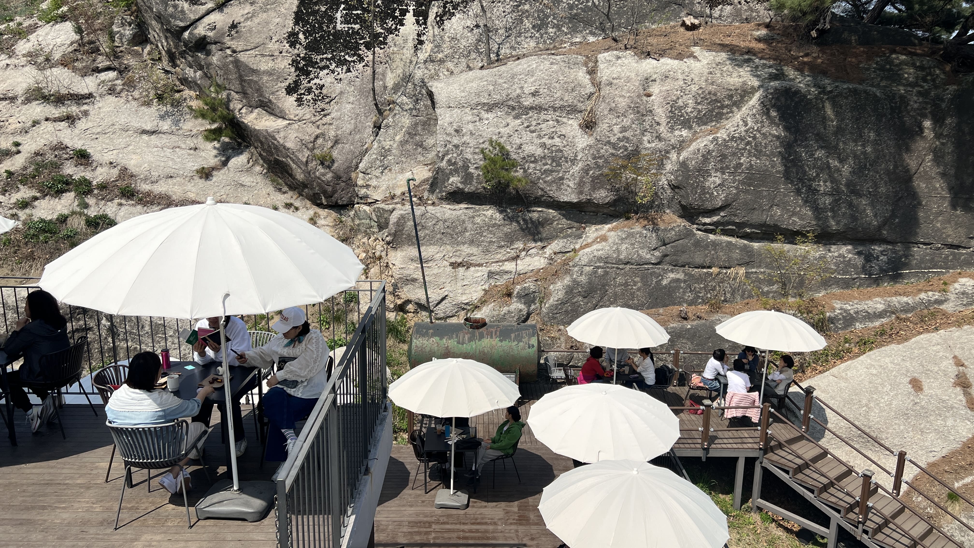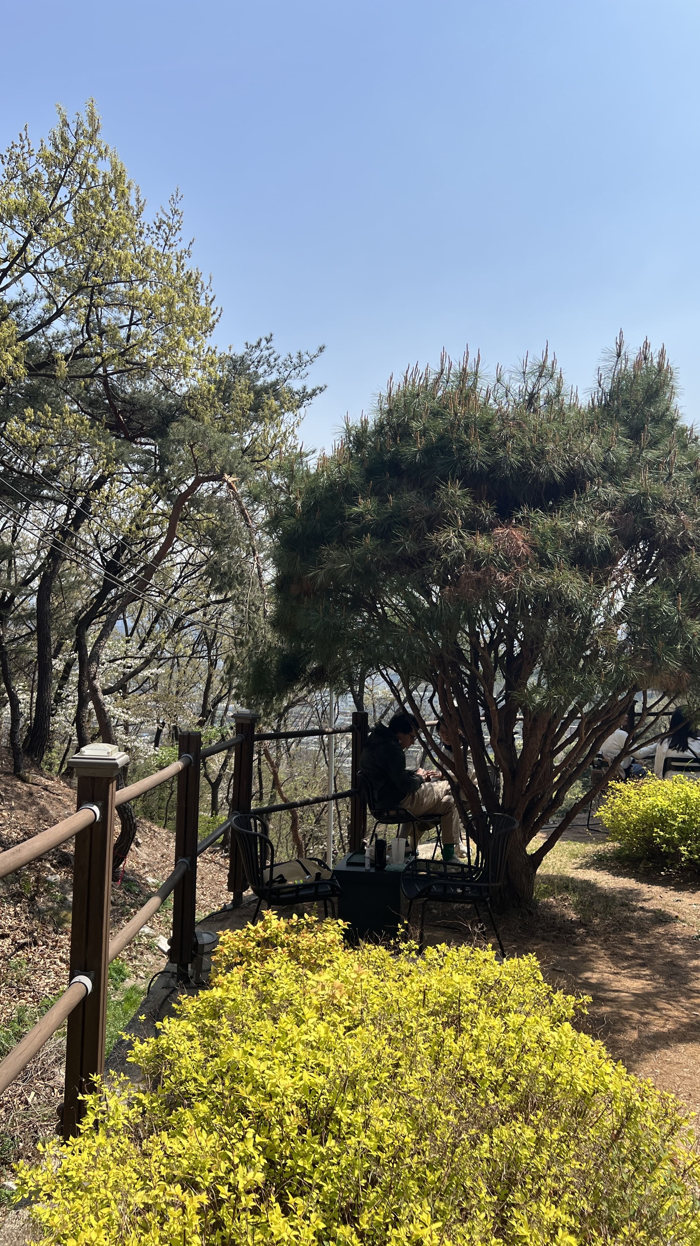 인왕산 초소책방은 원래 군사 초소였던 공간을 개조해 만든 복합 문화공간이라고 합니디. 위치가 조금은 언덕 위라서 그런지 탁 트인 전망이 일품이에요. 책방 앞 테라스에서는 인왕산과 서울 시내가 한눈에 내려다보이고, 봄이 되면 이 풍경 사이사이로 벚꽃이 만개해요. 우리가 도착했을 때 책방 주변 벚나무는 이미 흐드러지게 피어 있었고, 흩날리는 꽃잎이 진짜 그림 같았어요. 여유롭게 걷기 딱 좋은 산책로도 옆에 있어서, 책방을 들렀다가 근처 벚꽃길을 따라 천천히 걸어보는 것도 정말 추천드려요. 소란스럽지 않고, 도심 속인데도 마음이 고요해지는 그런 장소였어요. 특히 창가 자리에 앉으면, 책을 펼쳐놓고 창밖의 봄 풍경을 바라보는 그 순간이 정말 특별하게 느껴졌어요. 벚꽃도 보고, 서울의 전망도 보고, 책도 자유롭게 볼 수 있는 곳으로 날씨 좋은 날 꼭 가보시길 추천합니다!