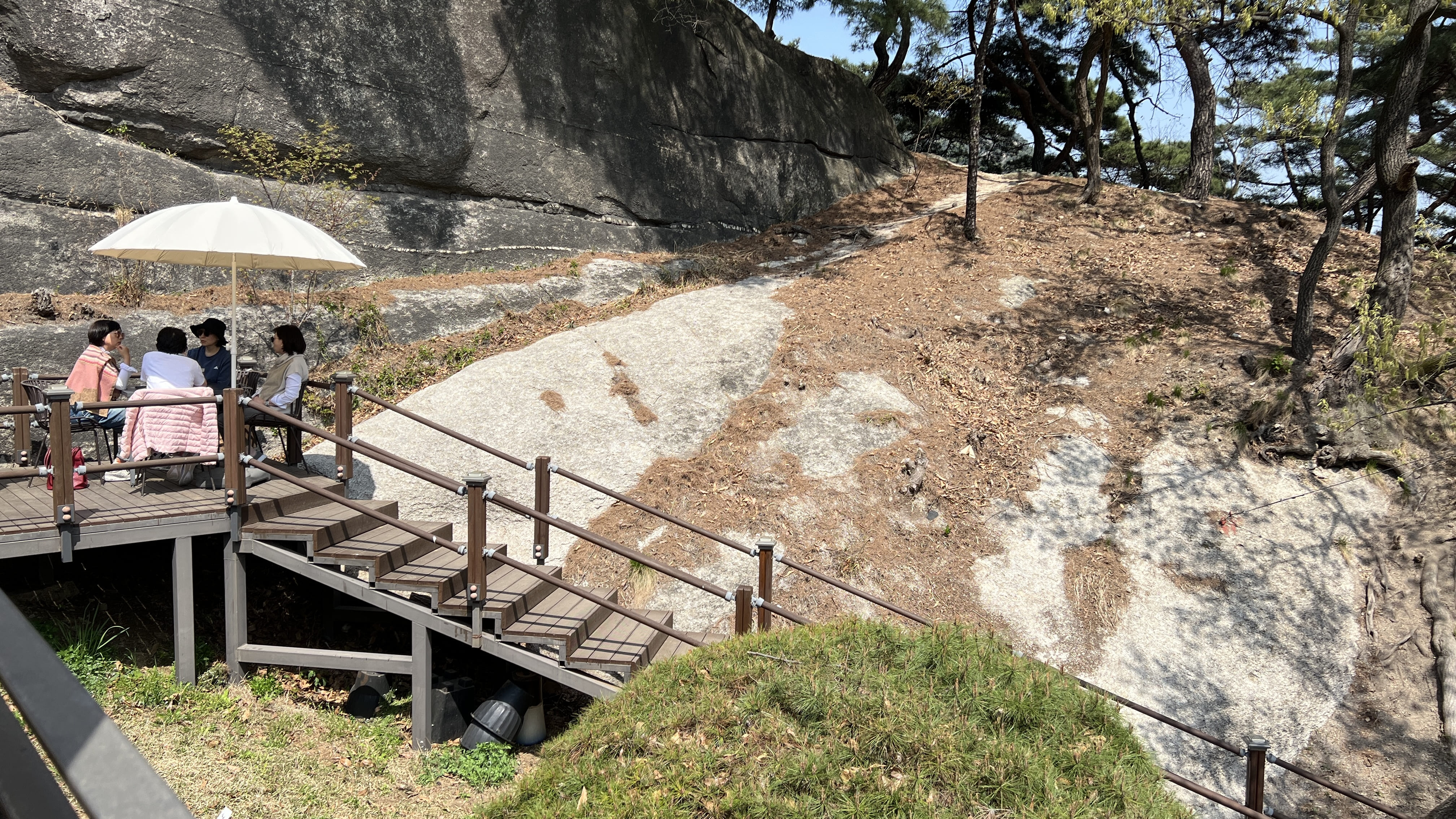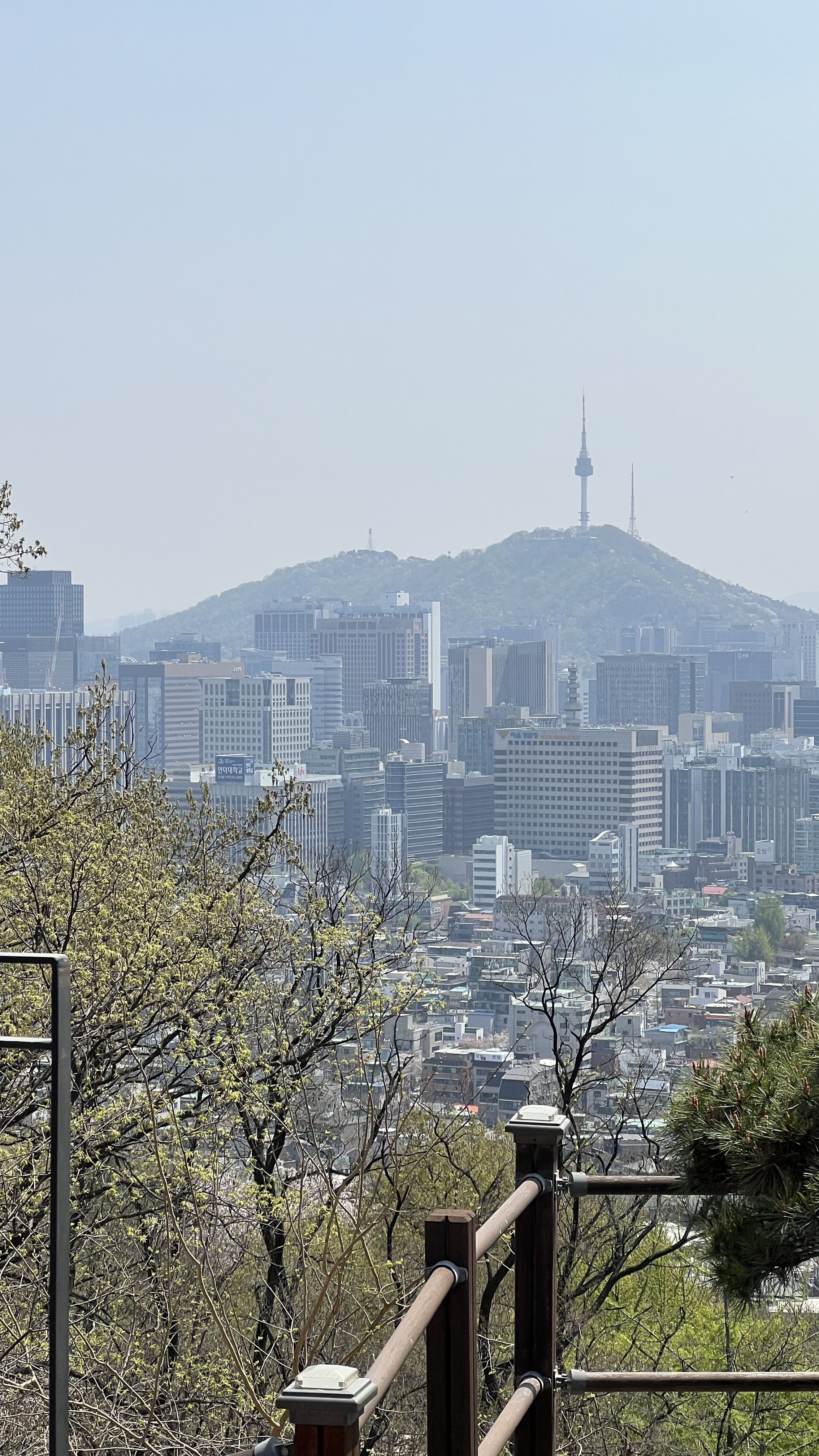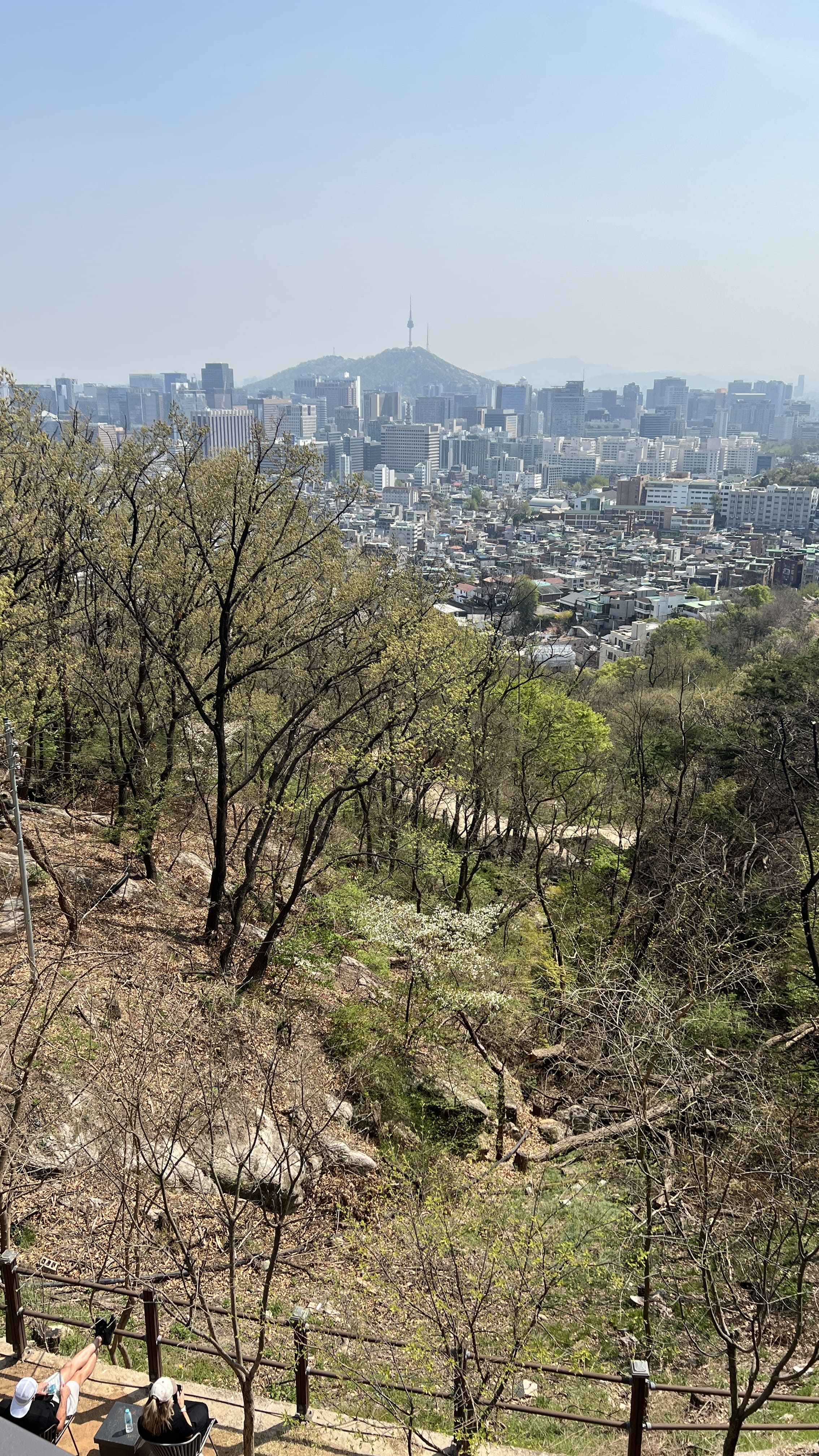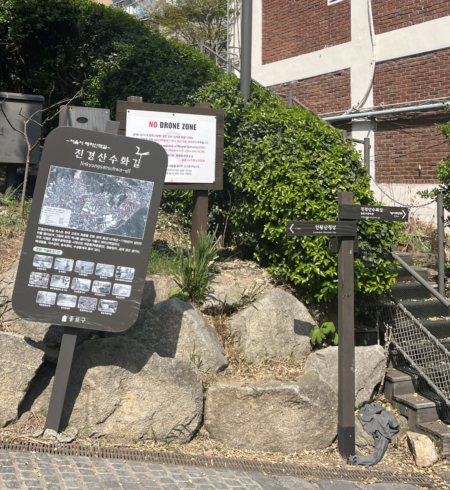 인왕산은 서울 종로구에 있는 해발 338미터 정도의 낮은 산인데요, 서울 도심 한가운데 있어서 그런지 생각보다 전망이 정말 좋았습니다. 정상에 오르면 남산부터 한강, 경복궁, 청와대까지 한눈에 볼 수 있었습니다. 산세가 험하지 않아서 등산이라기보다는 가볍게 산책하듯 걷기 좋은 코스로 많이 추천된다고 합니다. 특히 인왕산 성곽길은 조선시대 한양도성의 흔적이 그대로 남아 있어서 역사 산책을 즐기기에 딱 좋은 곳이라고 하고요. 경사가 완만해서 등산에 익숙하지 않은 사람들도 편하게 다녀올 수 있었습니다. 이곳은 예술가들이 자주 찾았던 곳이기도 해서 문화적인 분위기도 느껴지는데요, 겸재 정선이 ‘인왕제색도’를 그린 장소로 알려져 있고, 산 아래에는 윤동주문학관, 서촌 골목, 통인시장 같은 공간들이 모여 있어서 함께 들러보면 좋다고 해요. 서울에서 복잡한 도심을 잠시 벗어나 조용히 걷고 싶을 때, 인왕산은 그야말로 딱 맞는 장소라고 합니다. 봄에는 벚꽃도 피고 날씨도 좋아서 초소책방이랑 묶어서 코스를 짜보면 더 풍성하게 하루를 보낼 수 있다고 하네요. 저희는 어쩌다 보니 거꾸로 내려오게 되었는데 ㅎㅎ 혹시 올라가기 힘드신 분은 저희처럼 서촌에서 택시 타시고 내려오면서 구경하시는 것도 좋은 거 같습니다!