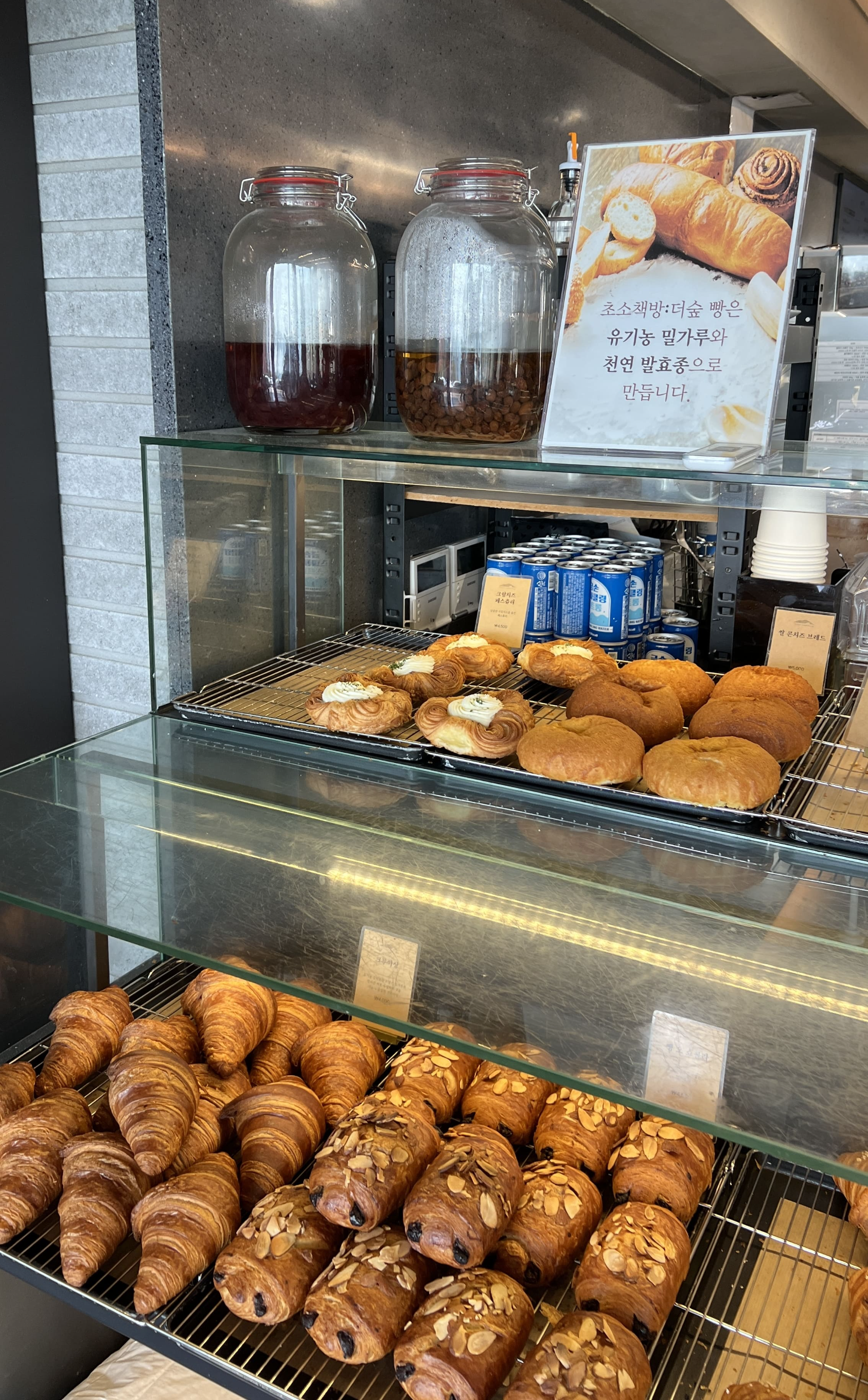 초소책방은 그 이름처럼 단순한 책방이 아니에요. 커피와 베이커리가 함께하는 복합 공간인데, 의외로 커피가 굉장히 맛있습니다. 저는 핸드드립 커피를 주문했고, 친구는 라떼를 골랐는데 둘 다 향이 좋고 깊이가 느껴졌어요. 커피 외에도 바삭한 크루아상, 미니 바게트, 그리고 시그니처 스콘까지 빵 종류도 제법 다양해서 간단한 브런치나 디저트로도 훌륭했어요. 무엇보다 좋았던 건, 이 공간 안에서 자유롭게 책을 읽을 수 있다는 점이에요. 문학책부터 독립출판물, 사진집, 시집까지 분야도 정말 다양하더라고요. 책은 진열된 걸 그냥 꺼내어 읽어도 되고, 마음에 드는 건 바로 구매도 가능해요. 조용히 책에 집중할 수 있는 분위기라 혼자서도 부담 없이 오래 머물 수 있어요. 사진을 찍는 사람들도 많지만, 다른 사람을 방해하지 않고 조용히 머무는 문화가 잘 자리 잡혀 있어서 무척 좋았습니다. 고요함 속에서 나만의 시간을 갖고 싶은 분께 정말 추천드려요