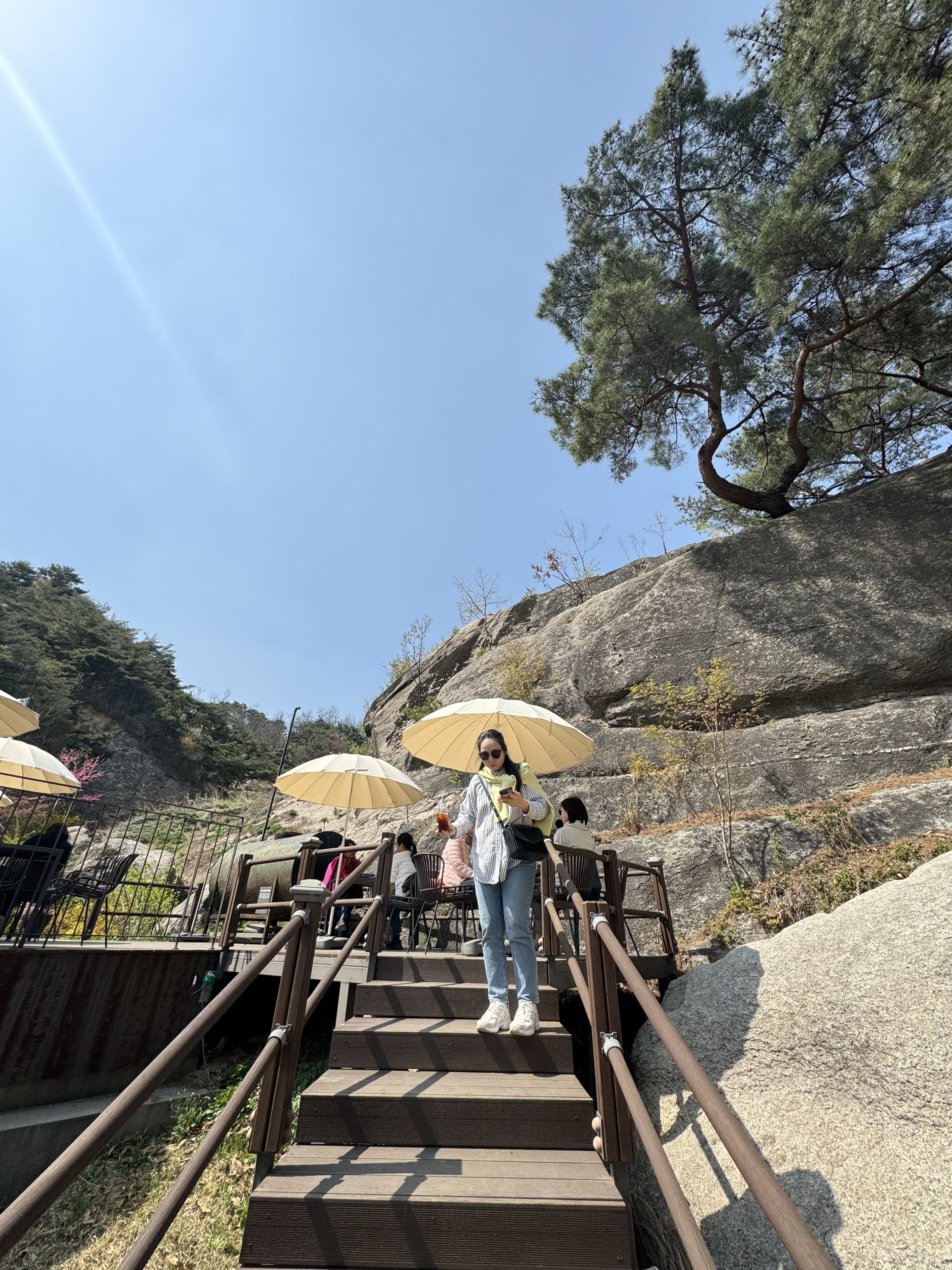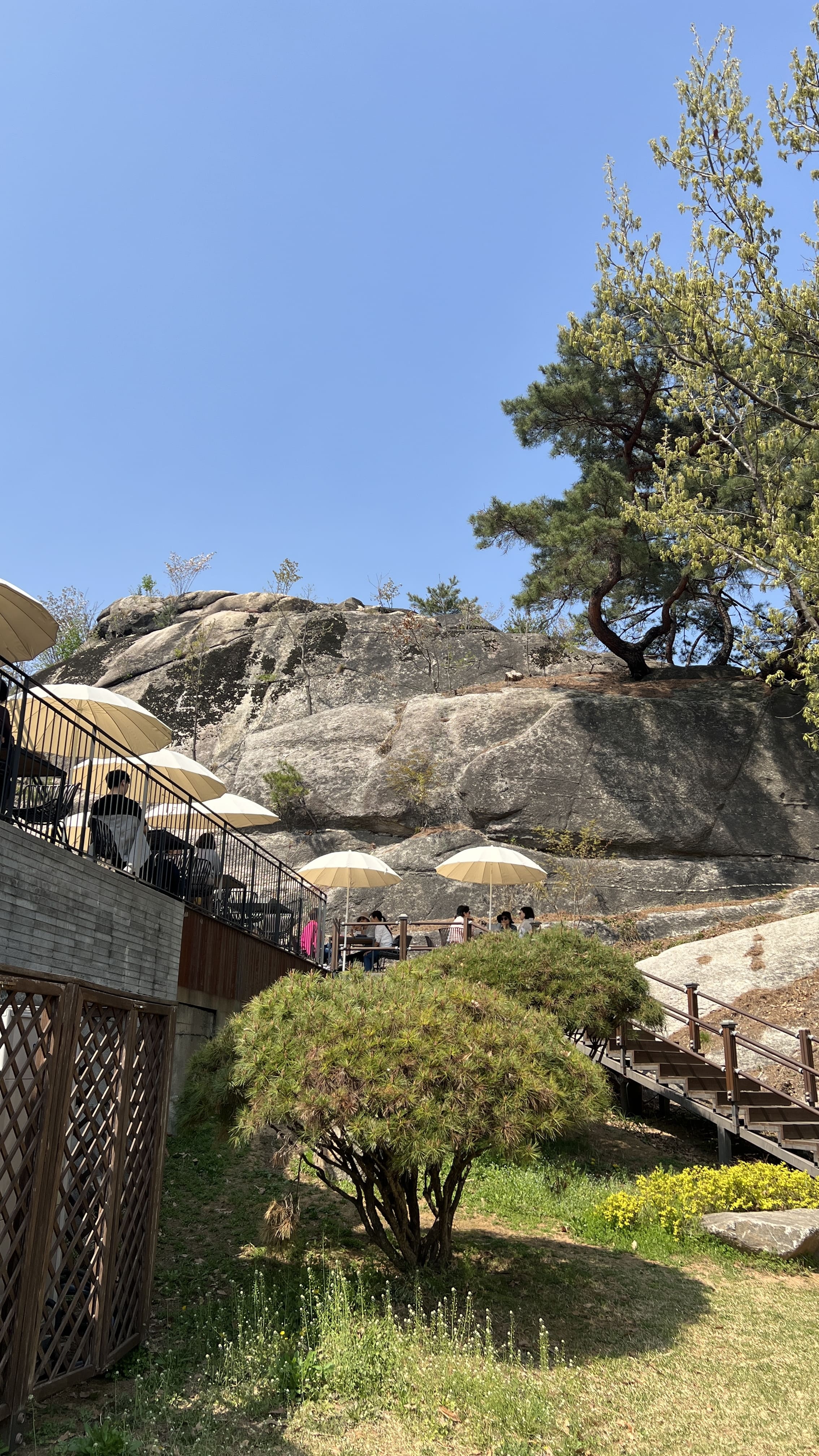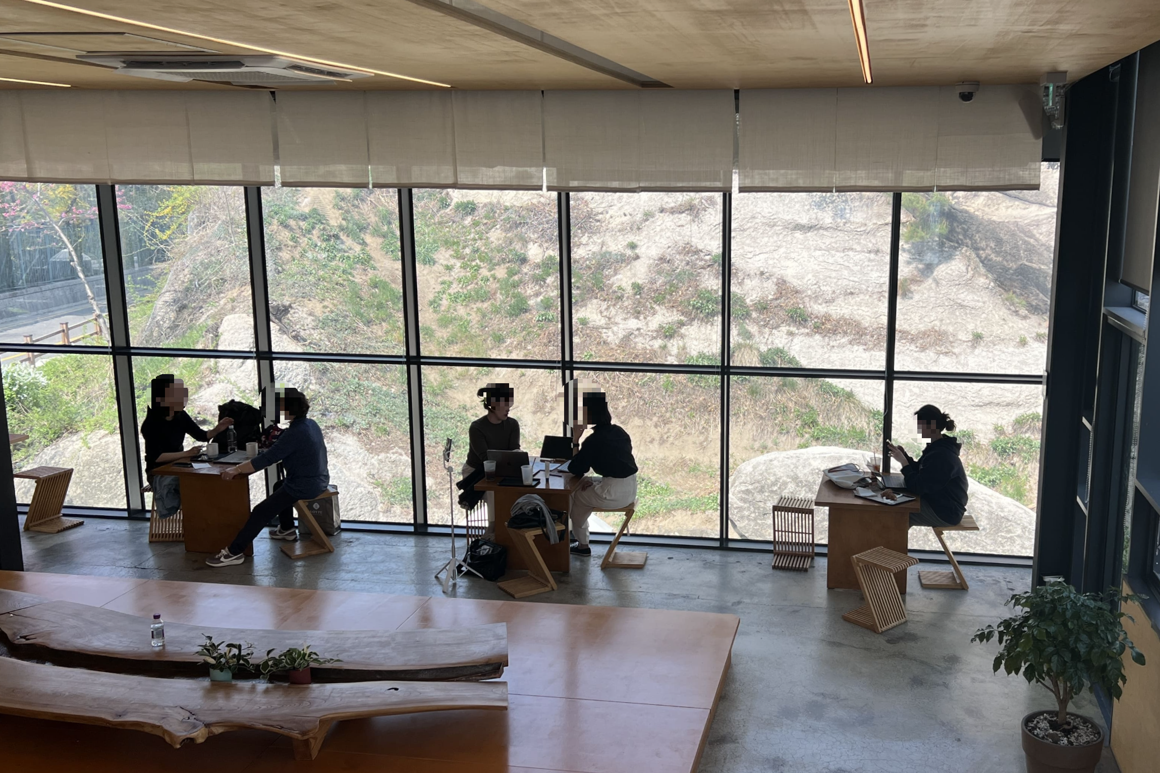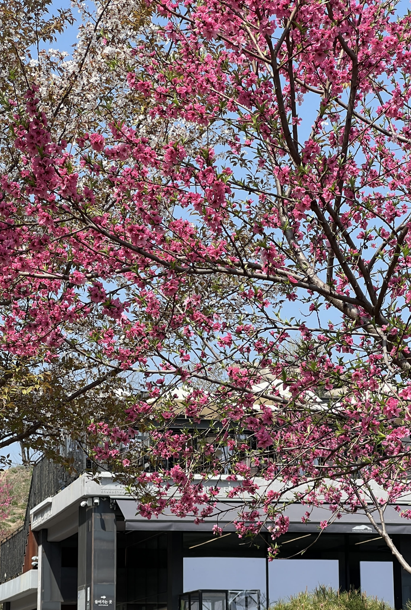 인왕산 초소책방은 원래 군사 초소였던 공간을 개조해 만든 복합 문화공간이라고 합니디. 위치가 조금은 언덕 위라서 그런지 탁 트인 전망이 일품이에요. 책방 앞 테라스에서는 인왕산과 서울 시내가 한눈에 내려다보이고, 봄이 되면 이 풍경 사이사이로 벚꽃이 만개해요. 우리가 도착했을 때 책방 주변 벚나무는 이미 흐드러지게 피어 있었고, 흩날리는 꽃잎이 진짜 그림 같았어요. 여유롭게 걷기 딱 좋은 산책로도 옆에 있어서, 책방을 들렀다가 근처 벚꽃길을 따라 천천히 걸어보는 것도 정말 추천드려요. 소란스럽지 않고, 도심 속인데도 마음이 고요해지는 그런 장소였어요. 특히 창가 자리에 앉으면, 책을 펼쳐놓고 창밖의 봄 풍경을 바라보는 그 순간이 정말 특별하게 느껴졌어요. 벚꽃도 보고, 서울의 전망도 보고, 책도 자유롭게 볼 수 있는 곳으로 날씨 좋은 날 꼭 가보시길 추천합니다!
