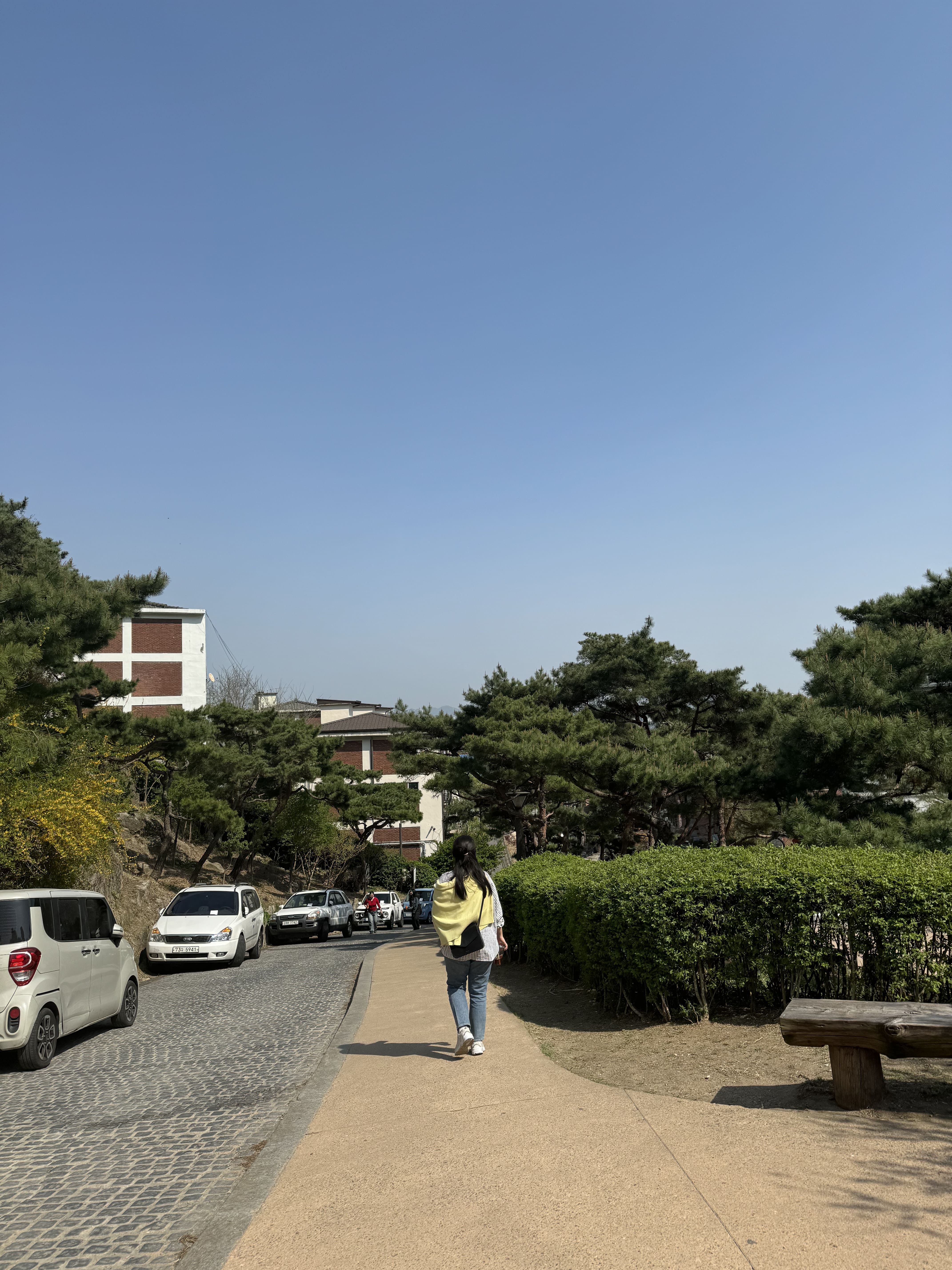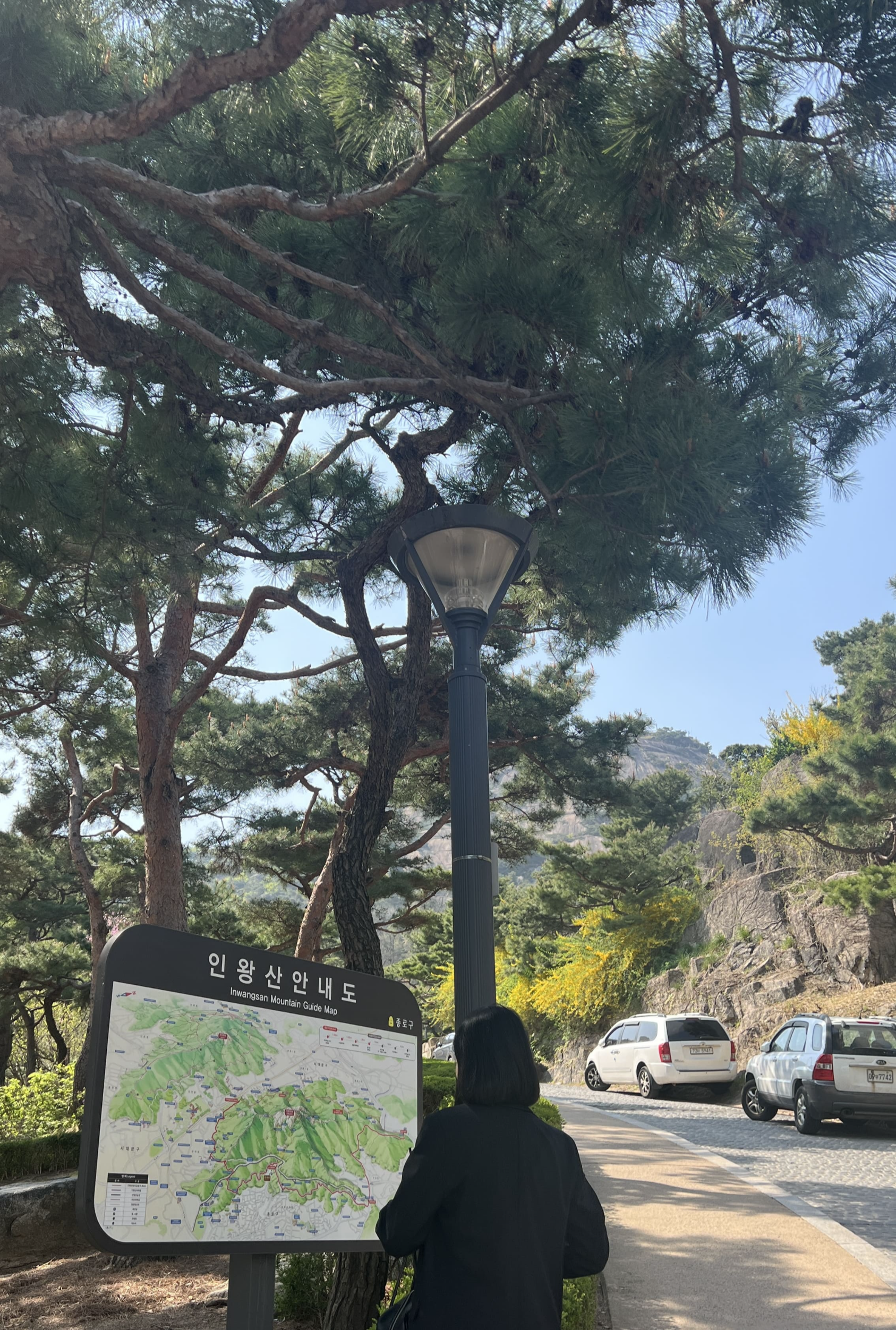인왕산 초소책방은 차량 진입이 가능하긴 하지만, 주차 공간이 매우 협소해서 주말은 물론이고 평일에도 거의 만차예요. 실제로 저희가 평일 오후에 방문했을 때도 주차장은 이미 차들로 꽉 차 있어서 차를 가져왔더라면 꽤나 곤란했을 것 같았어요. 우리는 경복궁역 근처에서 택시를 탔고, 약 5~7분 정도 소요되어 금방 도착했어요. 혹시 대중교통을 이용하실 경우, 경복궁역 3번 출구로 나와서 마을버스 9번을 타면 ‘윤동주문학관’ 정류장에서 내리면 됩니다. 거기서 도보 3분 정도만 오르면 책방에 도착해요. 책방을 둘러보고 나오는 길에는 인왕산 성곽길을 따라 천천히 내려왔는데요, 성곽길 자체도 풍경이 너무 좋고, 중간중간 쉼터와 사진 찍기 좋은 뷰 포인트가 많아서 여유롭게 걸어가기 딱 좋아요. 내려오다 보면 다시 서촌 골목이나 경복궁역으로 자연스럽게 연결되기 때문에, 한나절 코스로도 무척 만족스러웠습니다.