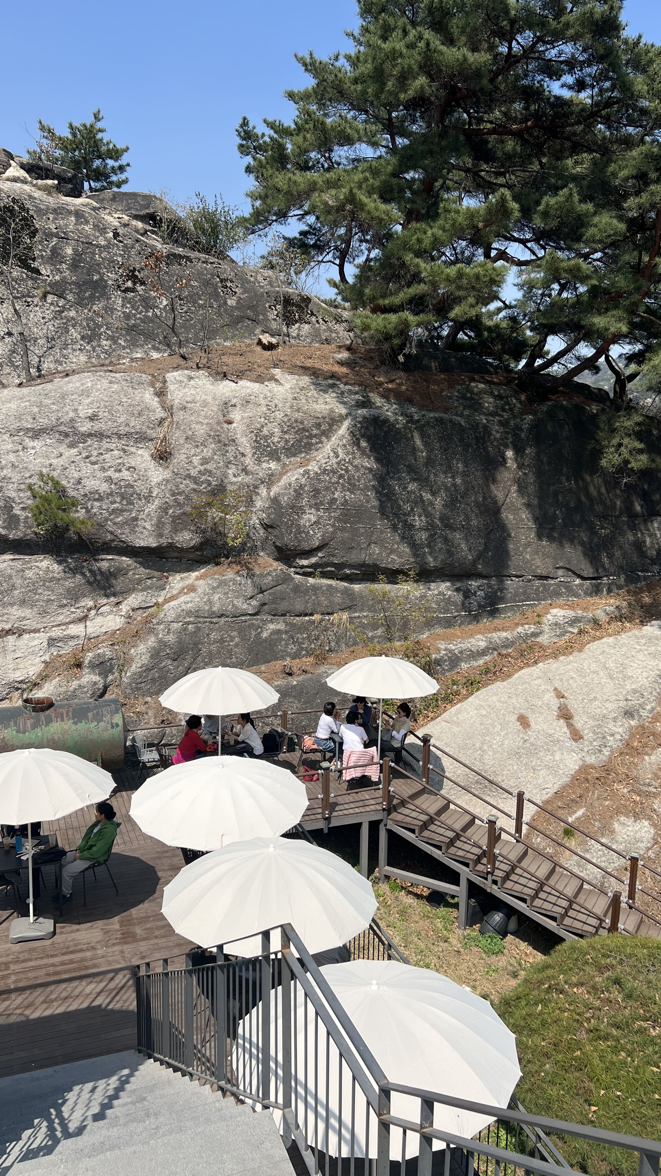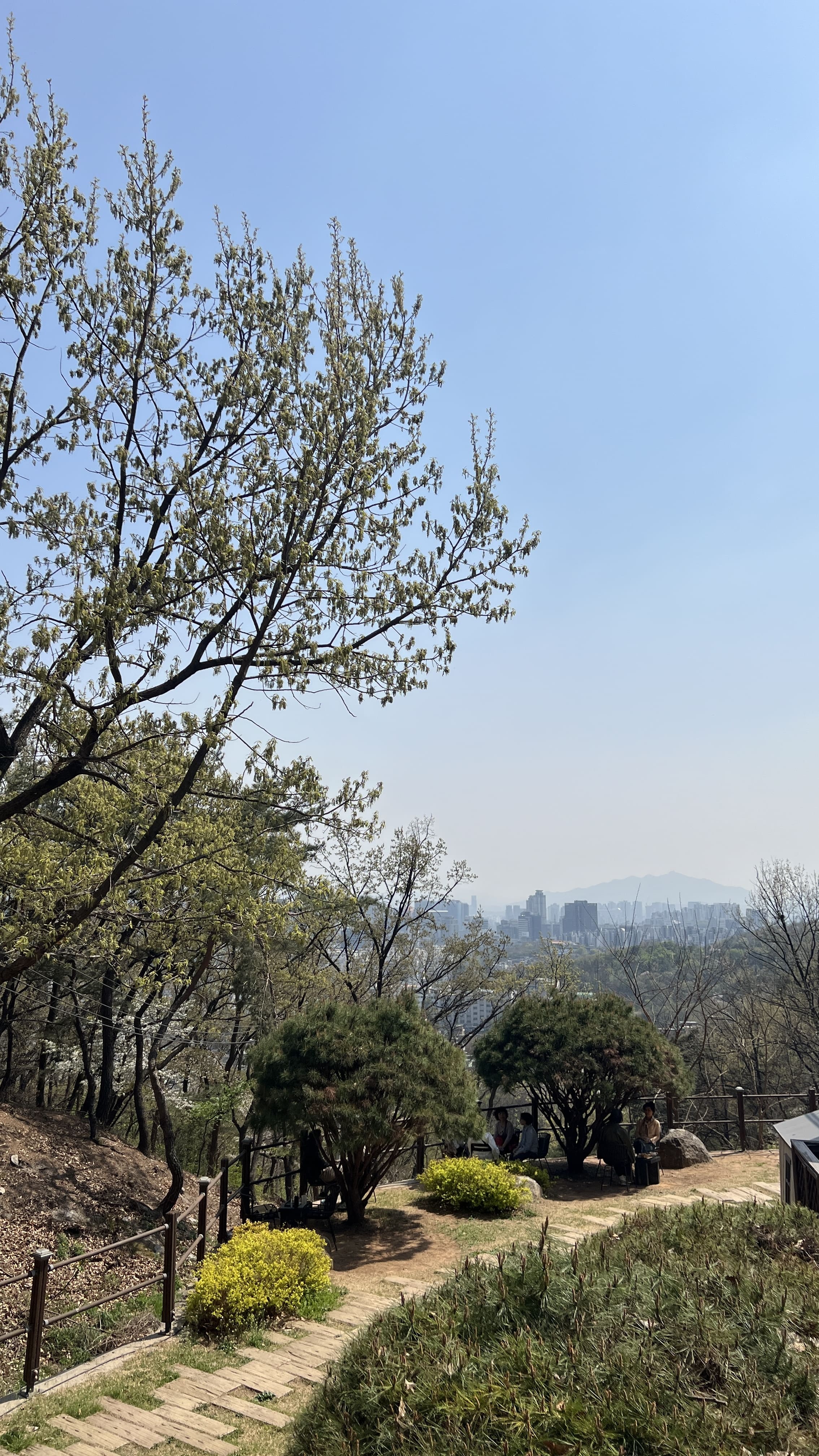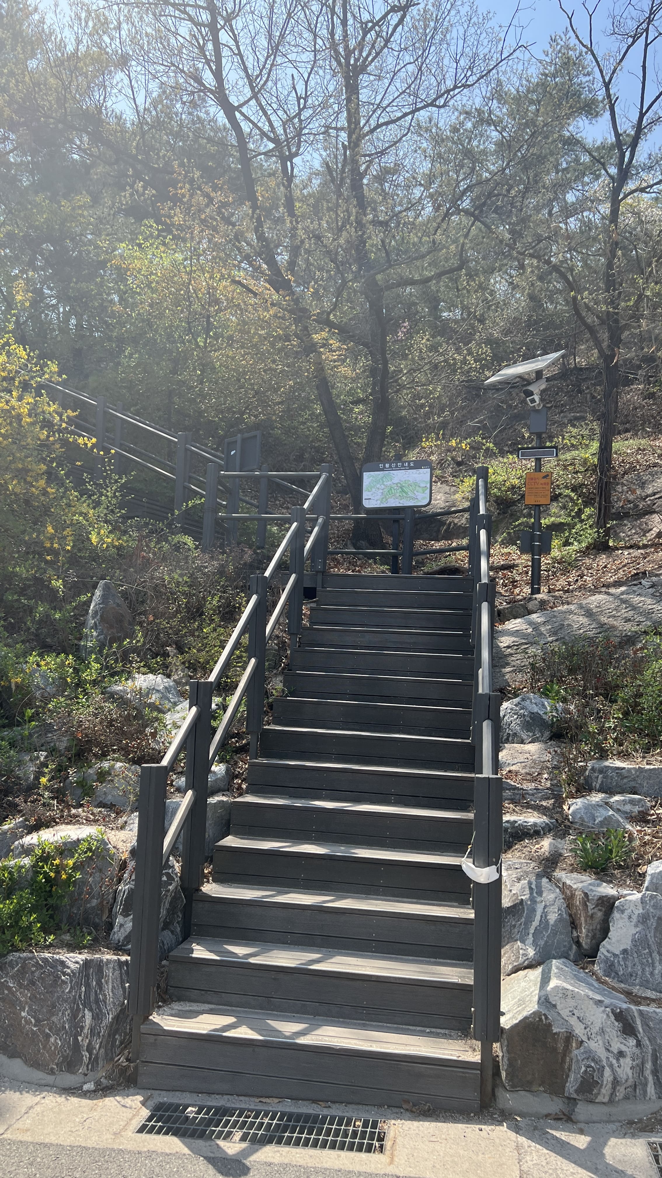 인왕산은 서울 종로구에 있는 해발 338미터 정도의 낮은 산인데요, 서울 도심 한가운데 있어서 그런지 생각보다 전망이 정말 좋았습니다. 정상에 오르면 남산부터 한강, 경복궁, 청와대까지 한눈에 볼 수 있었습니다. 산세가 험하지 않아서 등산이라기보다는 가볍게 산책하듯 걷기 좋은 코스로 많이 추천된다고 합니다. 특히 인왕산 성곽길은 조선시대 한양도성의 흔적이 그대로 남아 있어서 역사 산책을 즐기기에 딱 좋은 곳이라고 하고요. 경사가 완만해서 등산에 익숙하지 않은 사람들도 편하게 다녀올 수 있었습니다. 이곳은 예술가들이 자주 찾았던 곳이기도 해서 문화적인 분위기도 느껴지는데요, 겸재 정선이 ‘인왕제색도’를 그린 장소로 알려져 있고, 산 아래에는 윤동주문학관, 서촌 골목, 통인시장 같은 공간들이 모여 있어서 함께 들러보면 좋다고 해요. 서울에서 복잡한 도심을 잠시 벗어나 조용히 걷고 싶을 때, 인왕산은 그야말로 딱 맞는 장소라고 합니다. 봄에는 벚꽃도 피고 날씨도 좋아서 초소책방이랑 묶어서 코스를 짜보면 더 풍성하게 하루를 보낼 수 있다고 하네요. 저희는 어쩌다 보니 거꾸로 내려오게 되었는데 ㅎㅎ 혹시 올라가기 힘드신 분은 저희처럼 서촌에서 택시 타시고 내려오면서 구경하시는 것도 좋은 거 같습니다!