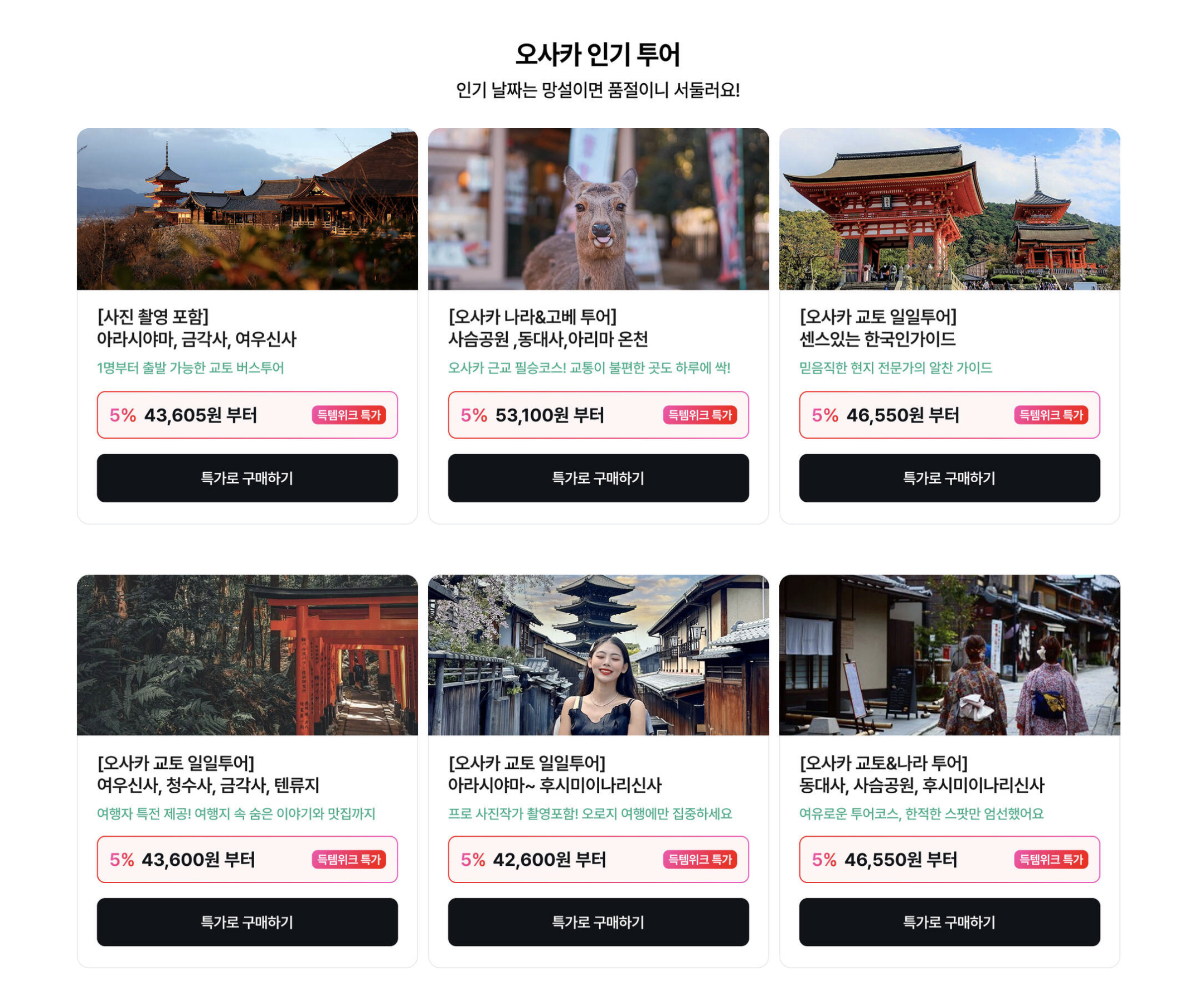 교토 단풍 투어, 나라 사슴 공원 투어, 고베 야경 투어 등 인기 있는 일정들이 많아서 일본 초행자분들께 특히 추천드리고 싶습니다.
