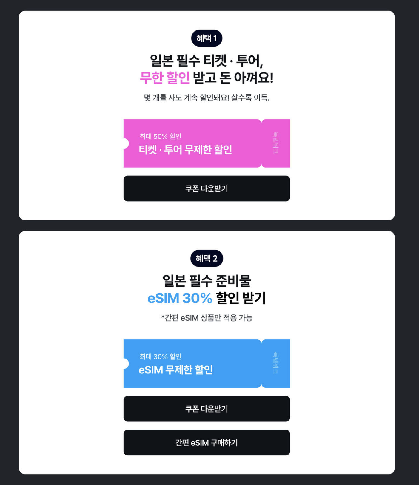 - 간편 eSIM 상품 최대 30% 할인 쿠폰 제공