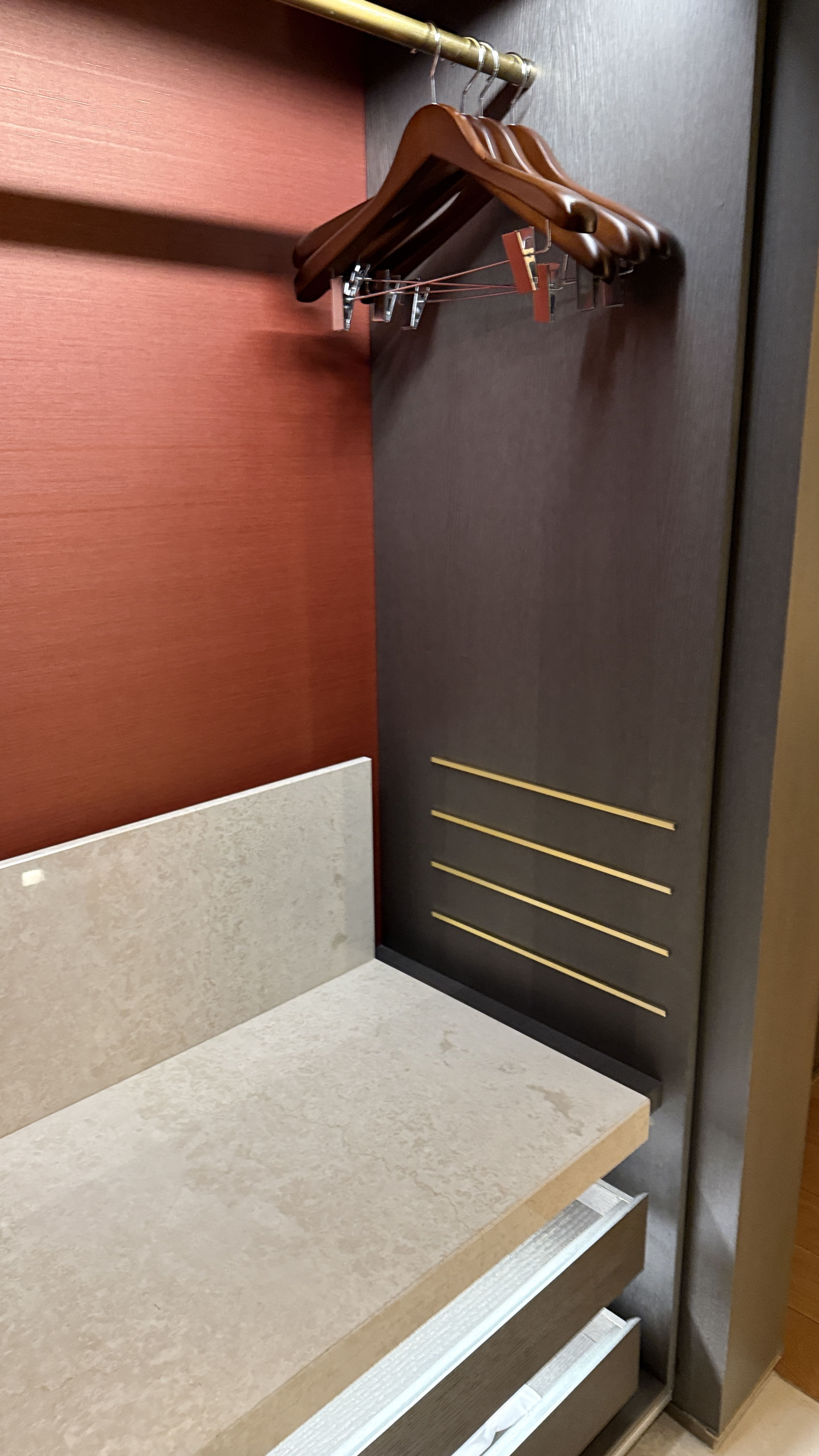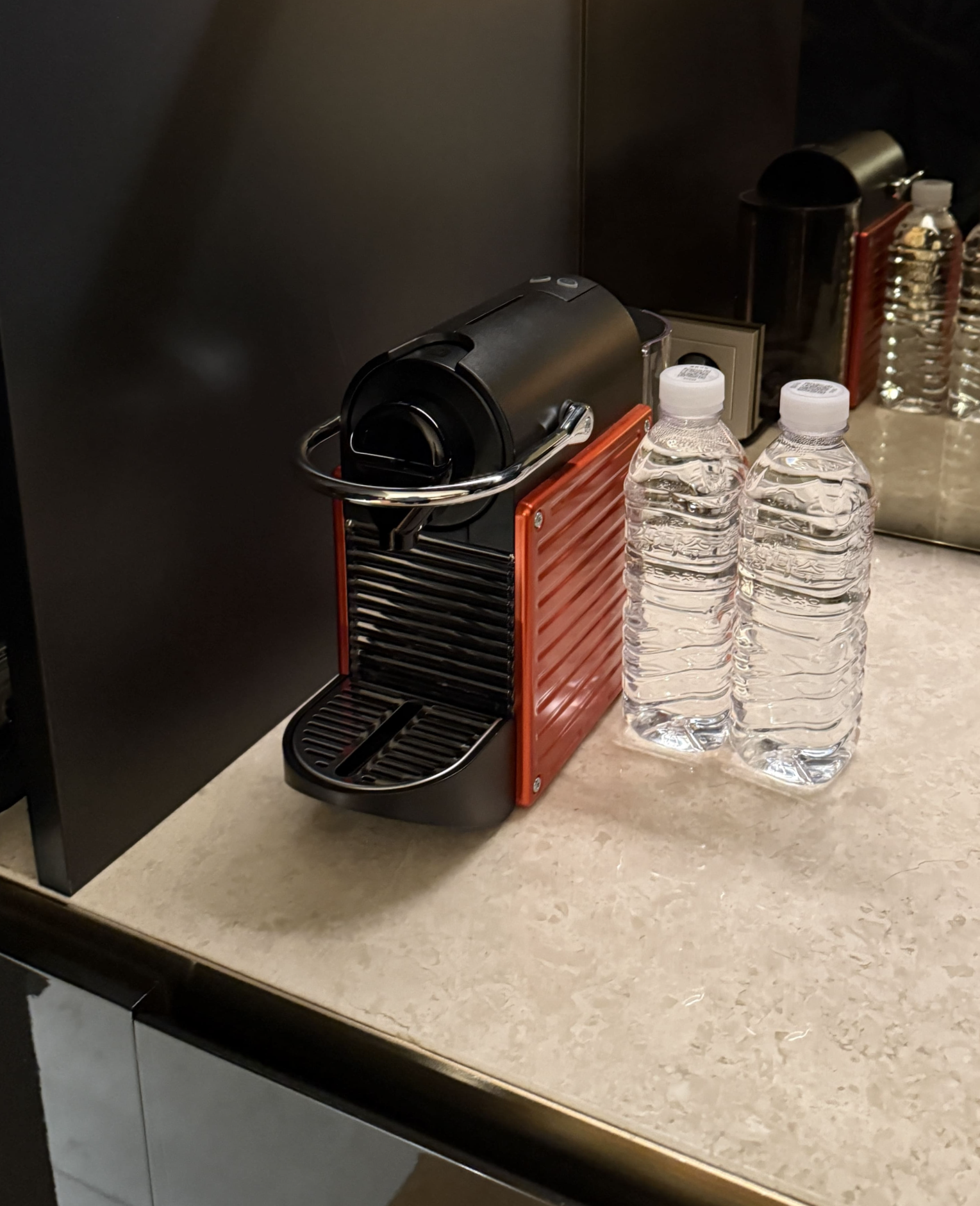 침대는 킹보다 넓은 XL 트윈 침대 2개가 놓여 있었고, 침구는 부드럽고 고급스러웠습니다. 욕실은 더블 세면대, 대리석 욕조, 레인 샤워 부스, 발망 어메니티까지 완벽 그 자체였고요. 특히 처음 방에 들어갔을 때 놓여 있던 웰컴 초콜릿은 작지만 큰 감동을 주었습니다. 네스프레소 머신과 JBL 블루투스 스피커도 이용하면서, 방 안에서 보내는 시간이 참 여유롭고 만족스러웠습니다.