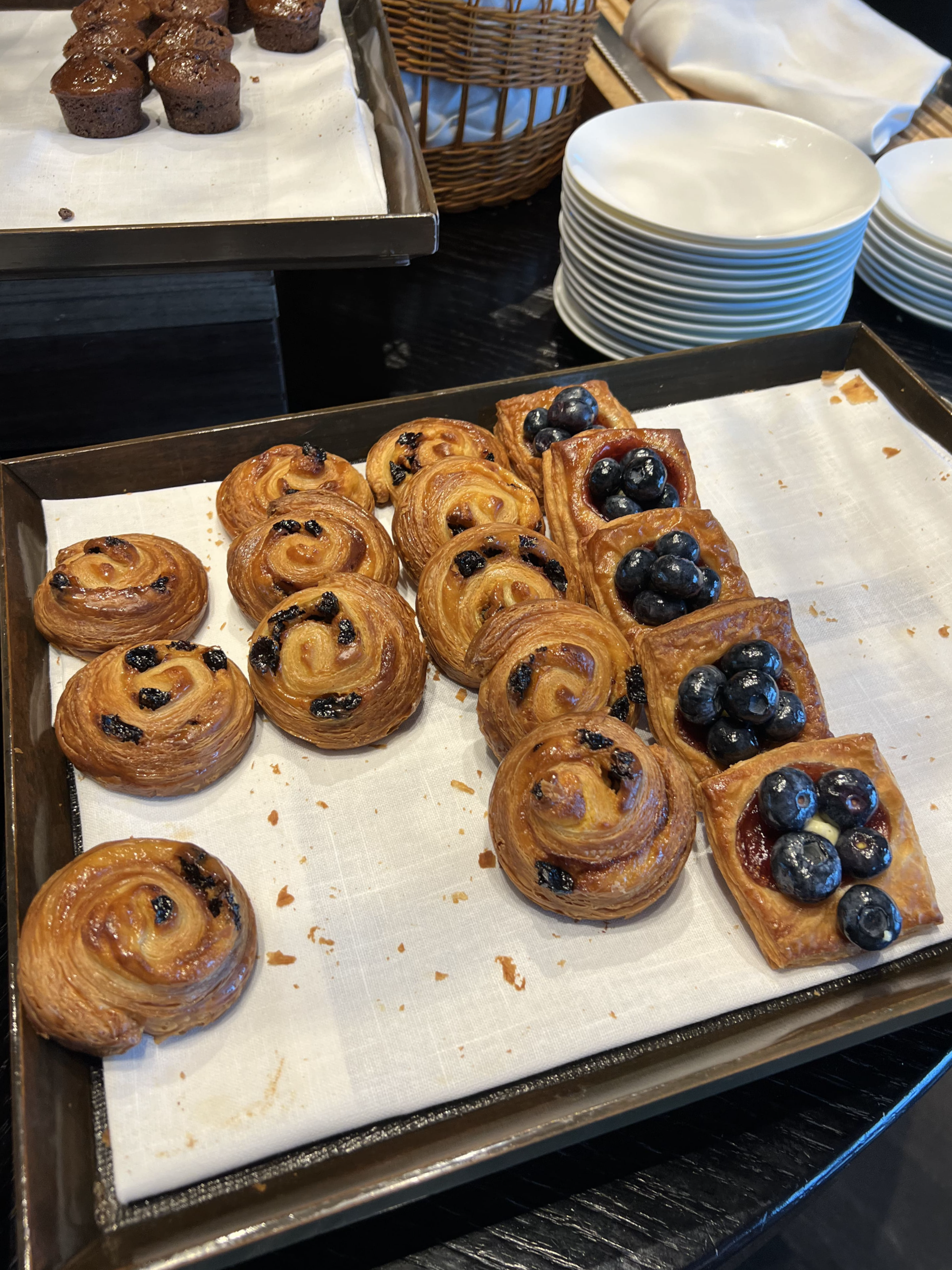 오후 2시 30분부터 4시 30분까지는 티타임이 제공되며, 간단한 디저트와 티, 커피를 마시며 휴식을 취할 수 있었어요. 저희는 주로 밖에 있다가 들어와서 잠깐 쉬거나 노트북 켜두고 일할 때 간식 겸 이용했어요.